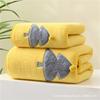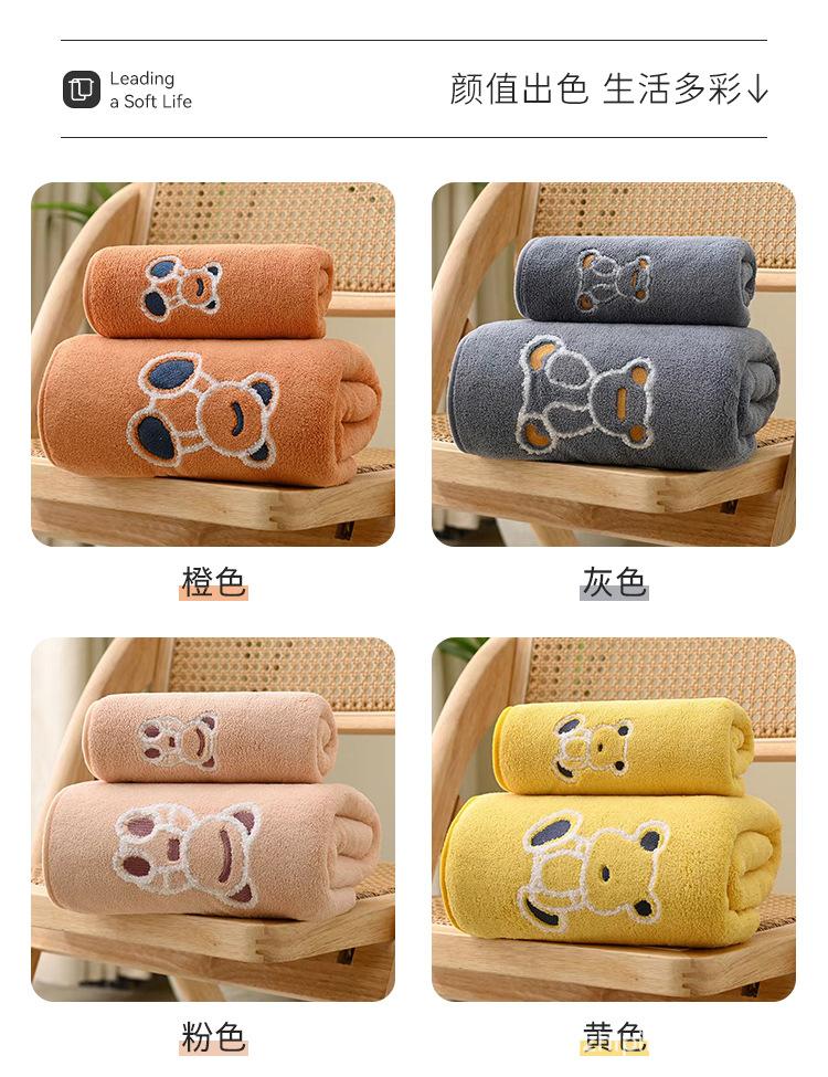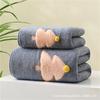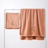 Toalla de Baño de Terciopelo Coral Set Bordado Hogar Absorbente Transpirable Envoltura de Baño Toalla Cuadrada Set de Dos Piezas Familia Dibujos Animados