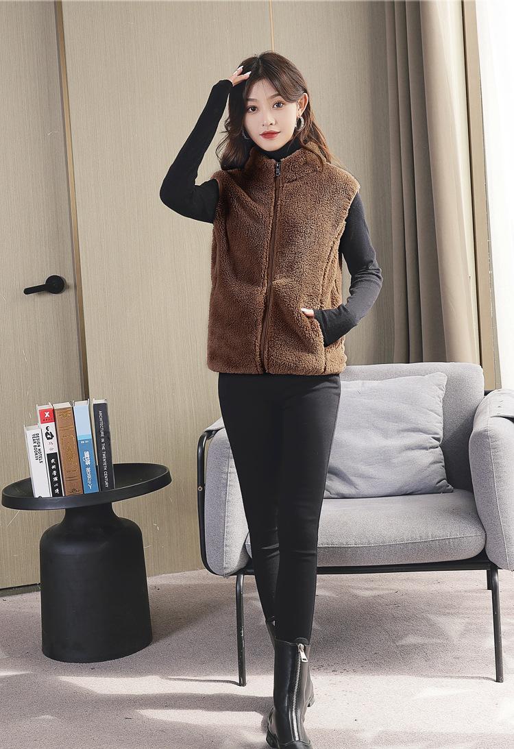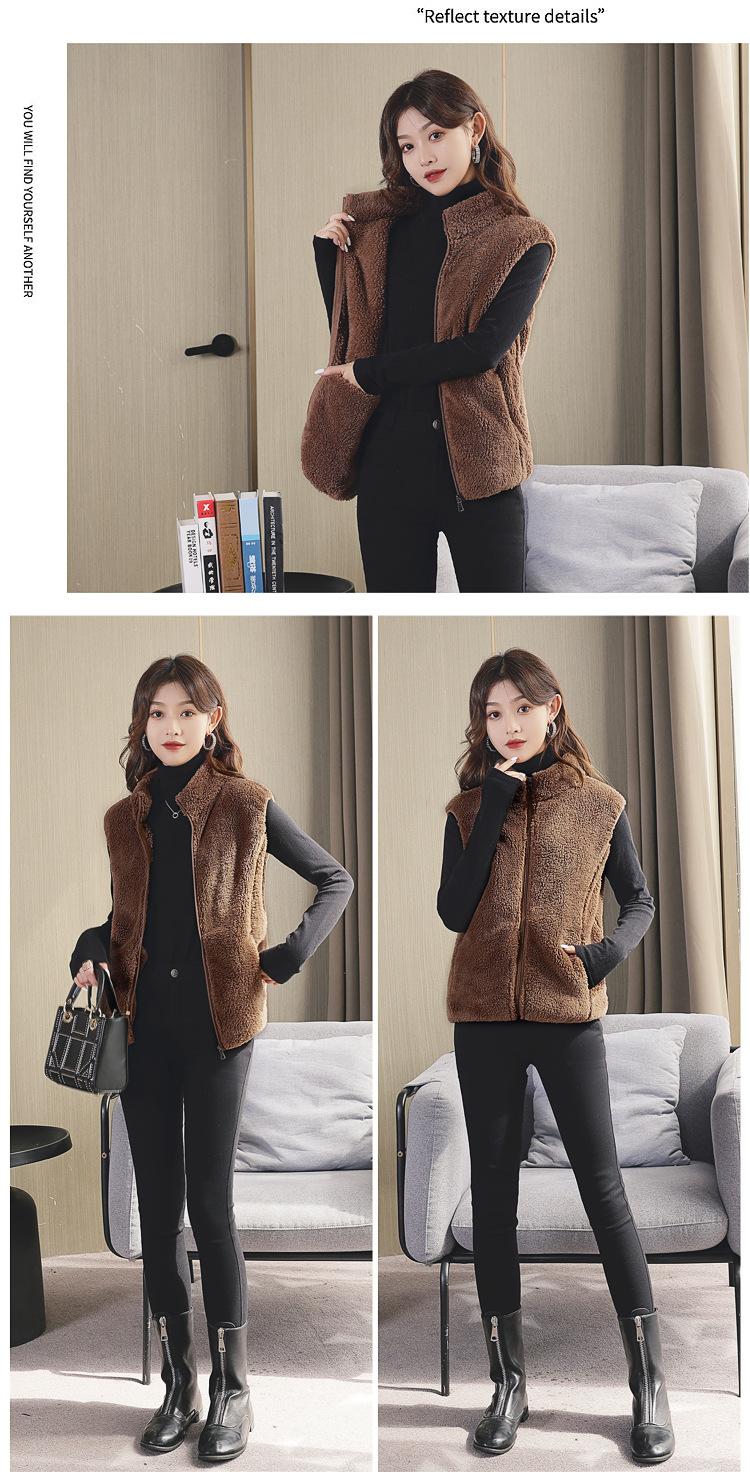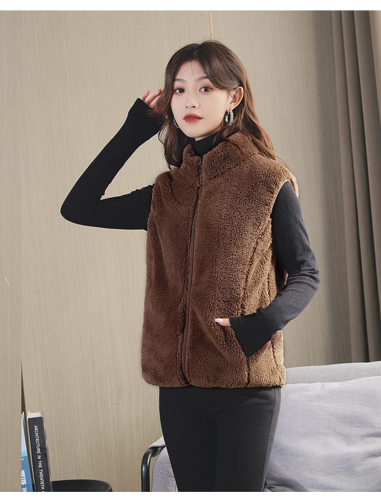 Chaleco polar para mujer chaleco otoño e invierno con forro polar cálido polar de doble cara chaleco con cuello de polar coral