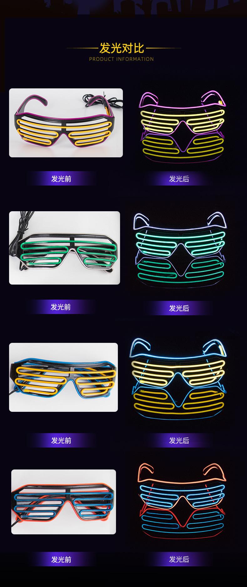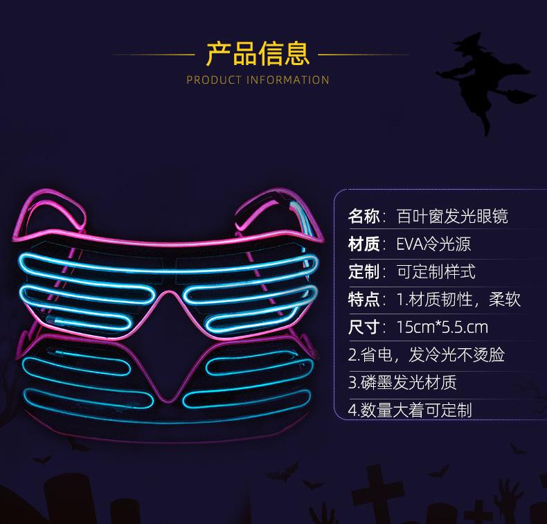 Gafas luminosas LED de fábrica, persianas bicolor, productos luminosos para fiestas, gafas con luz fría y destellos, disponibles en stock.