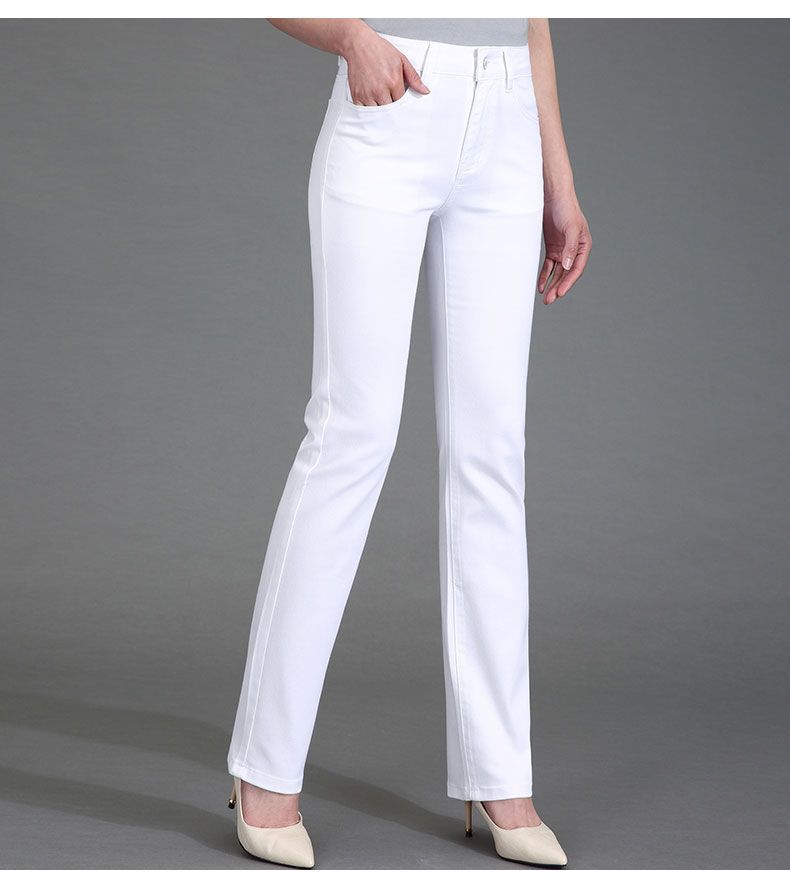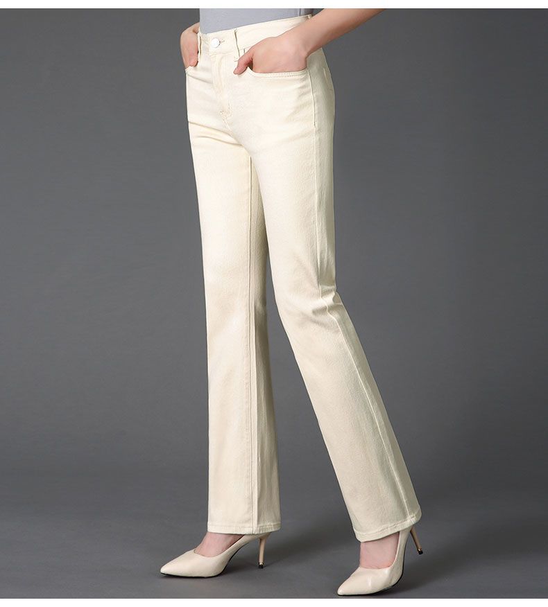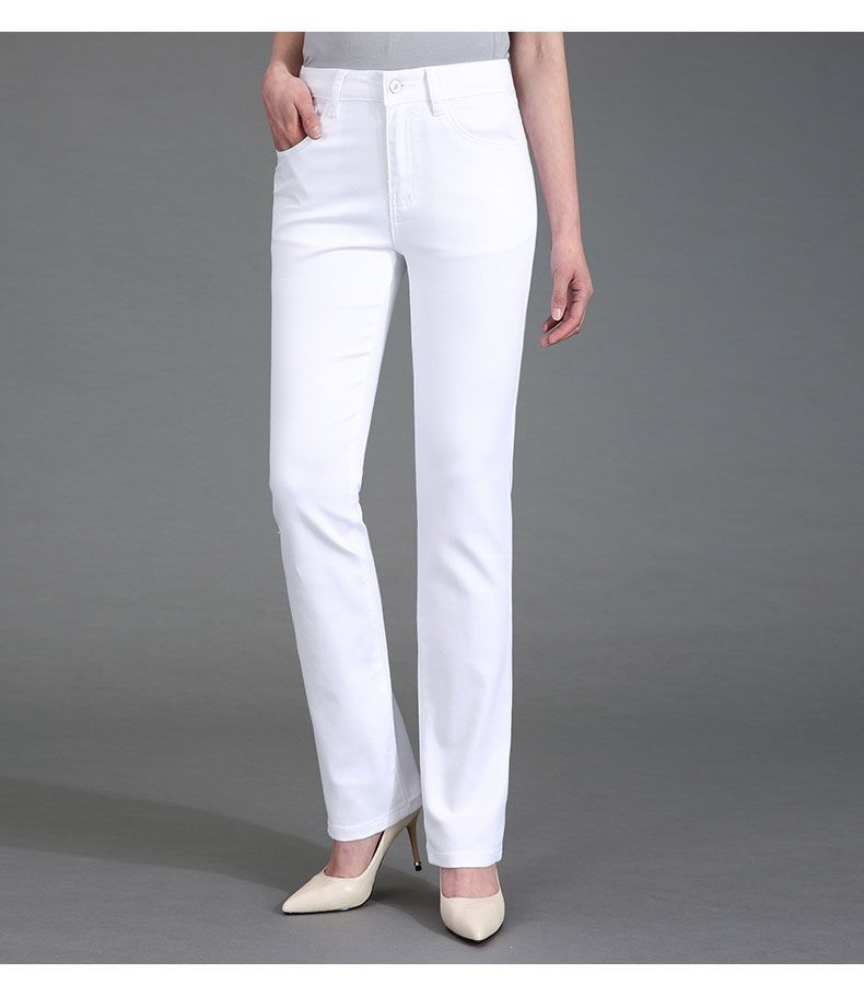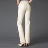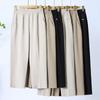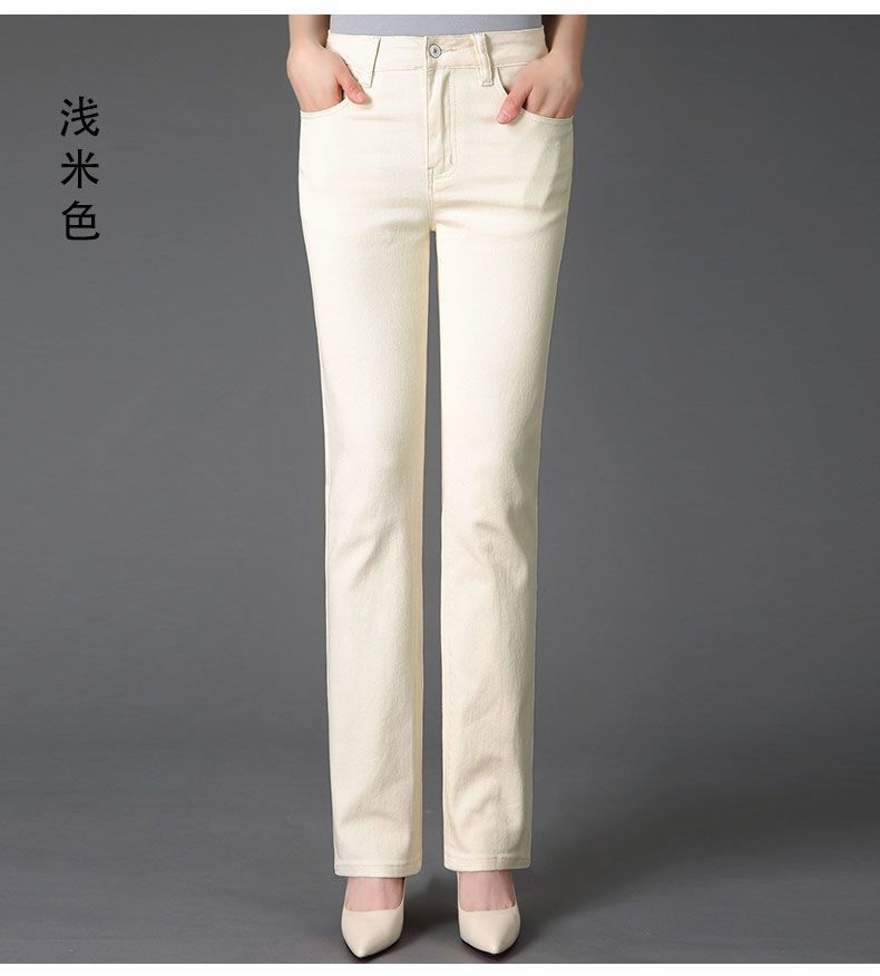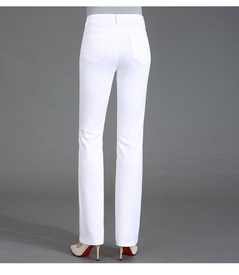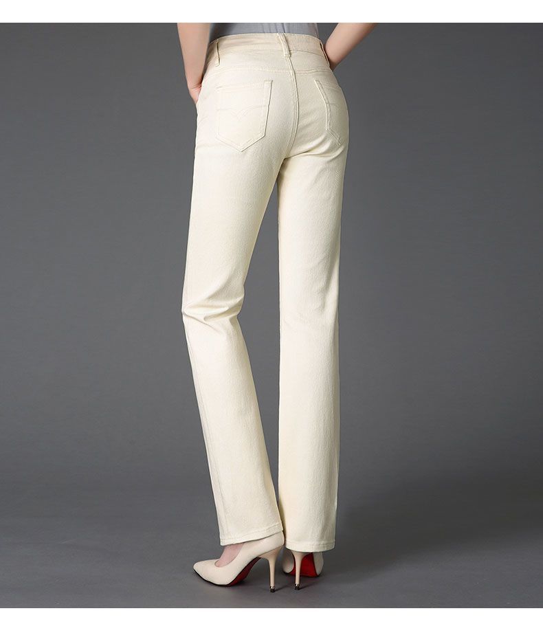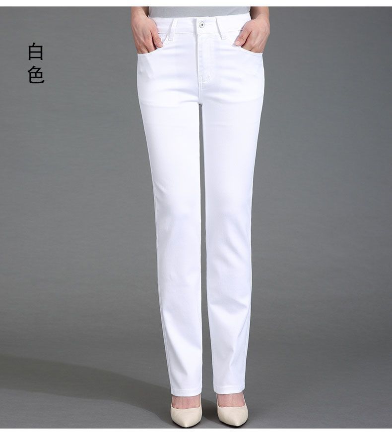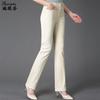 Pantalones de mamá blanco cremoso Cintura alta Rectos Talla grande Sueltos Elásticos Verano Delgados Pantalones casuales Pantalones para mujeres de mediana edad