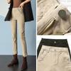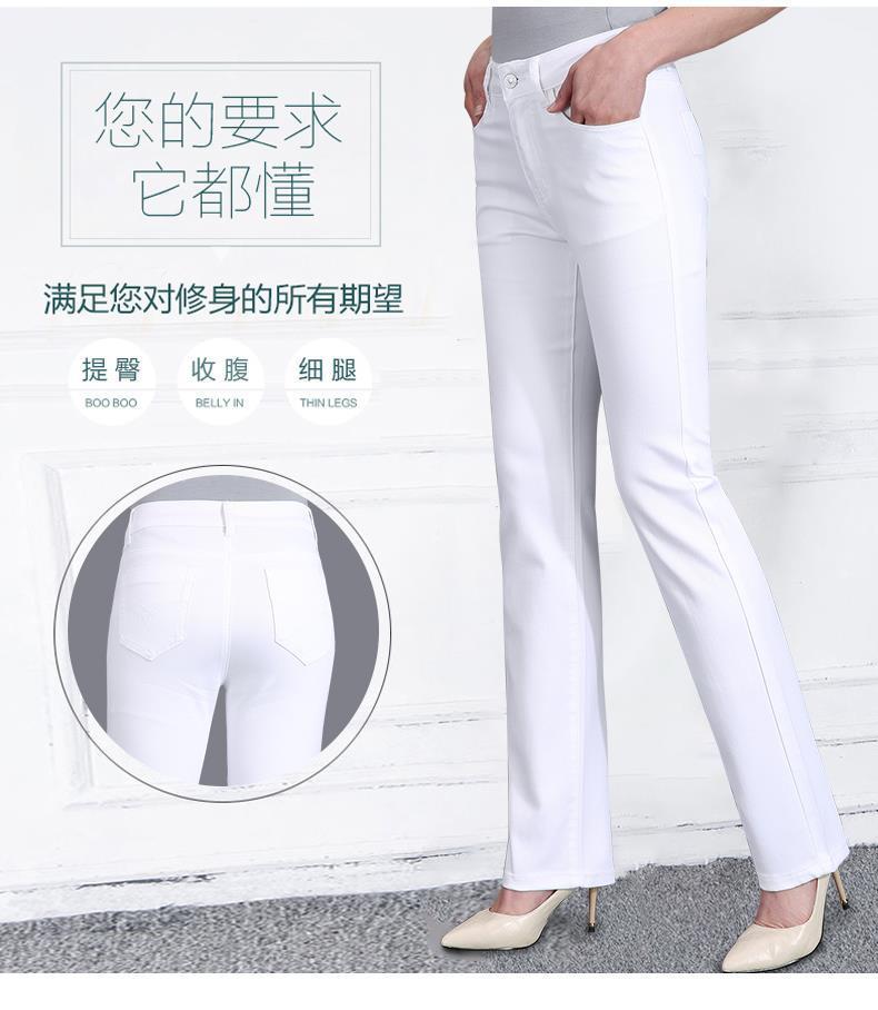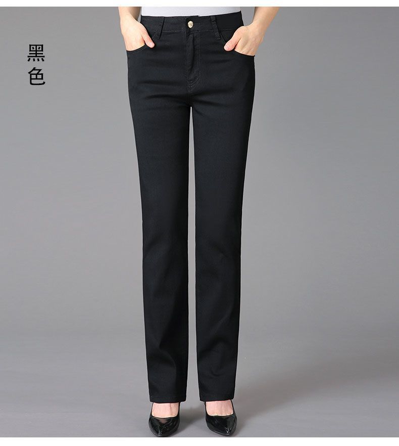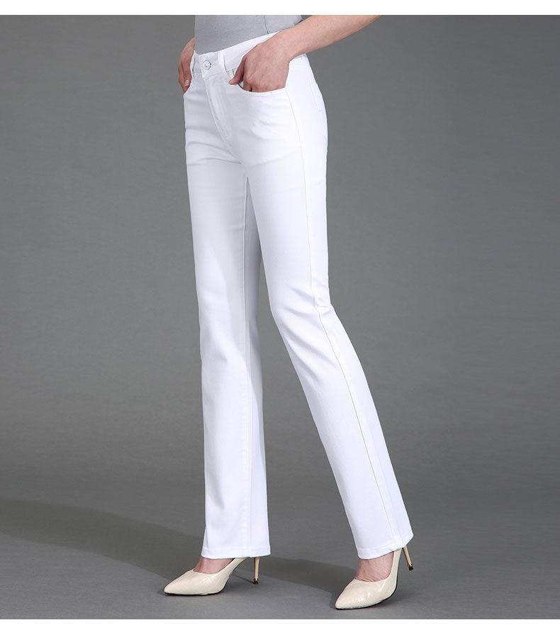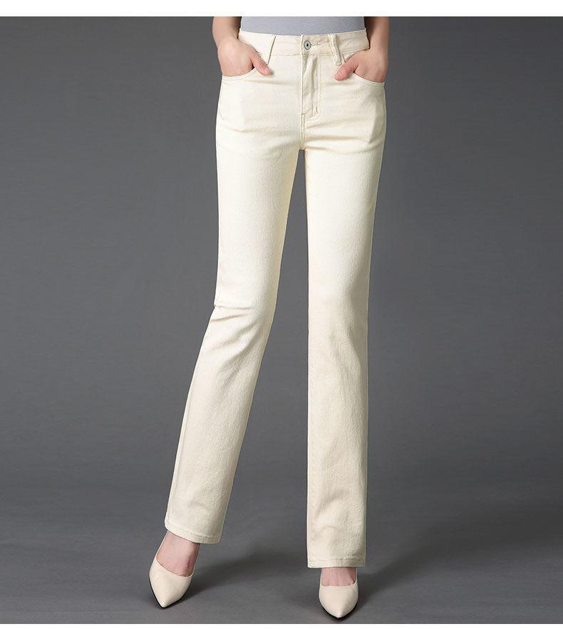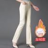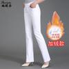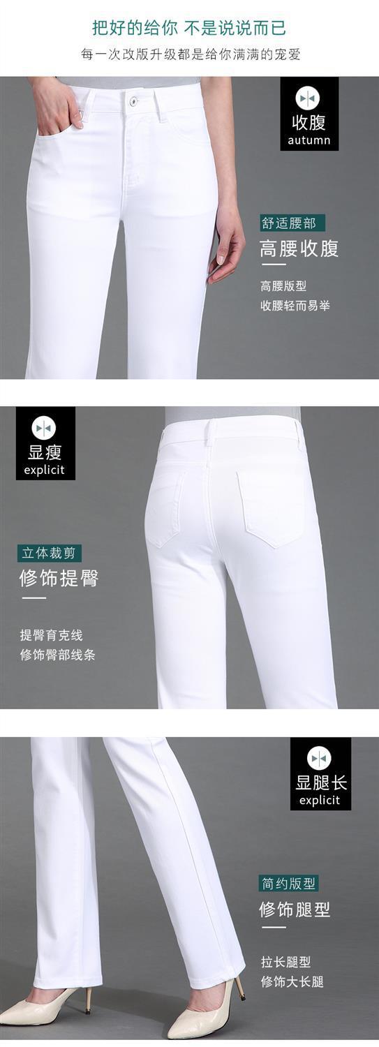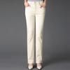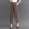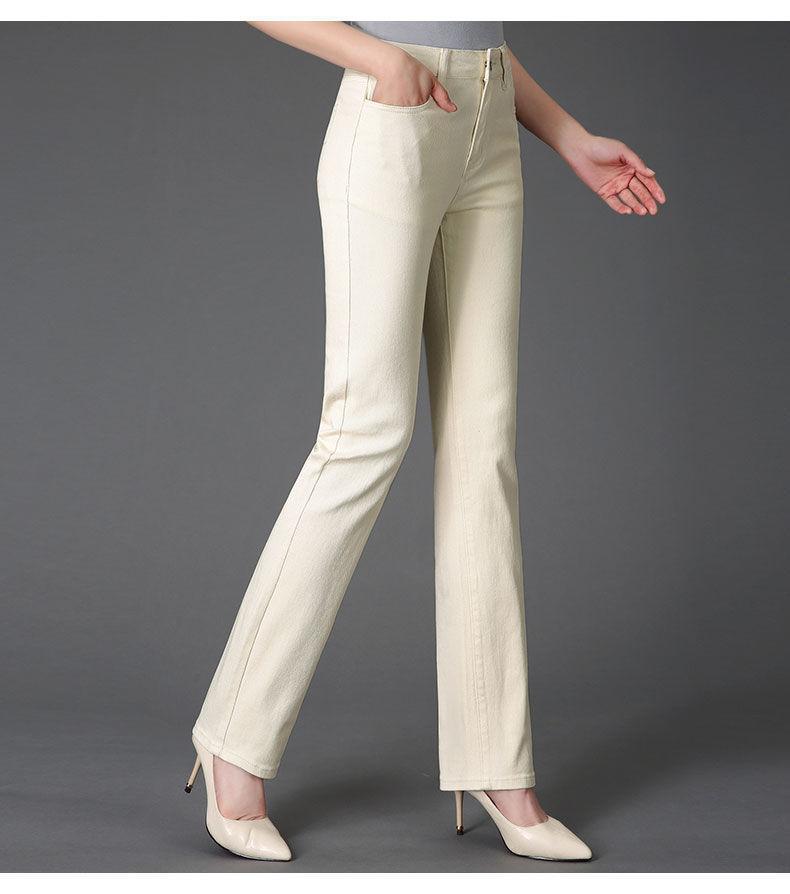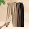 Pantalones de mamá blanco cremoso Cintura alta Rectos Talla grande Sueltos Elásticos Verano Delgados Pantalones casuales Pantalones para mujeres de mediana edad
