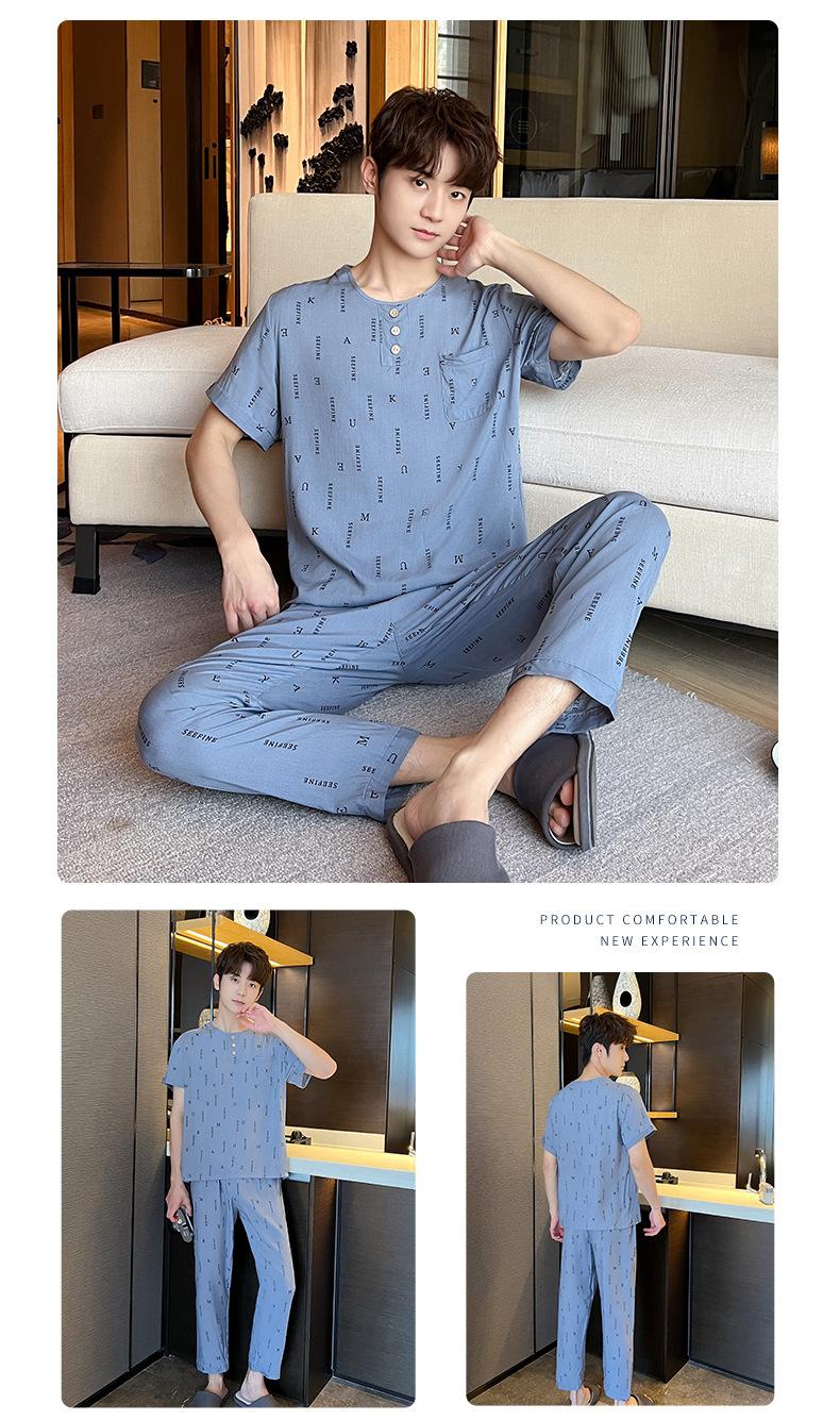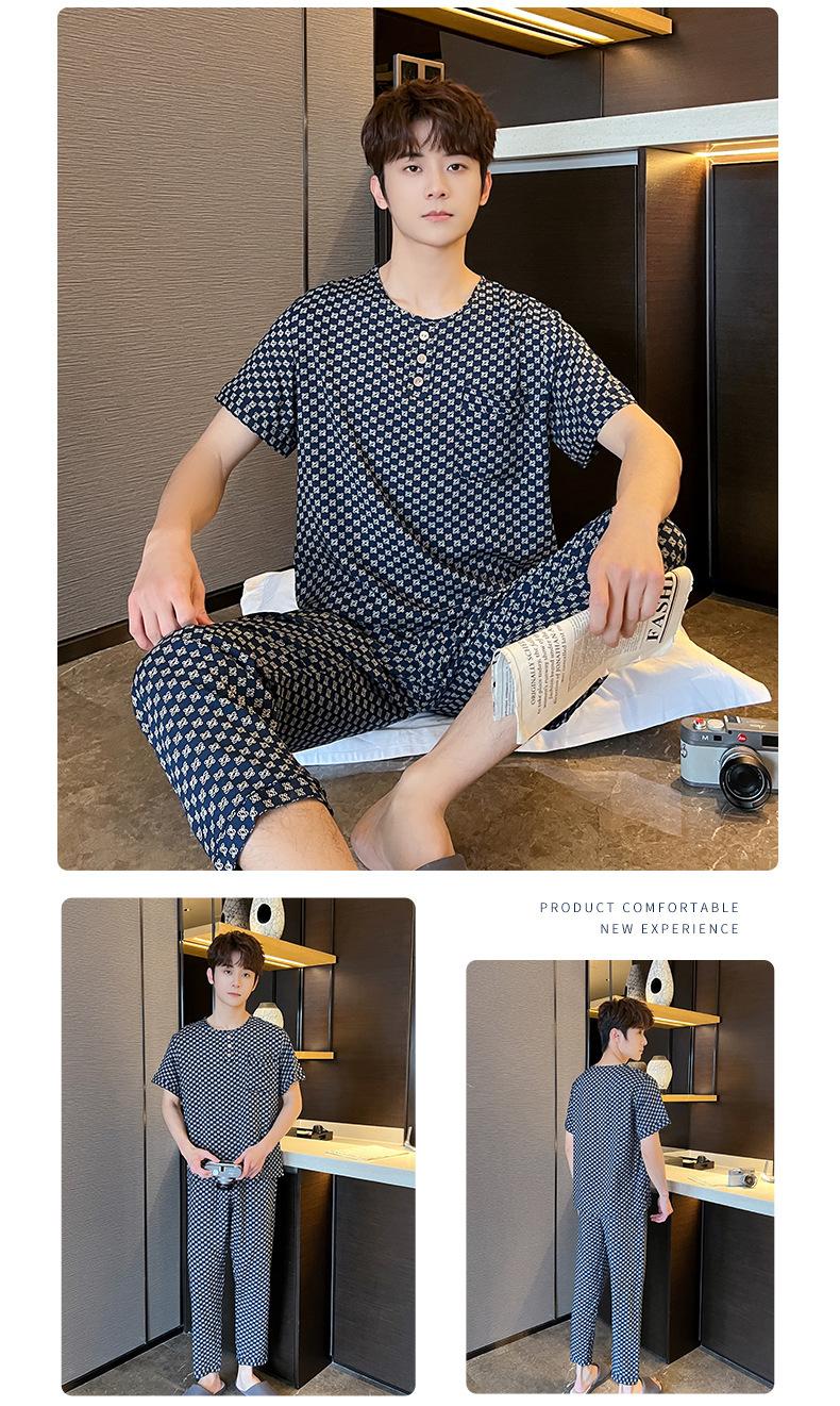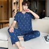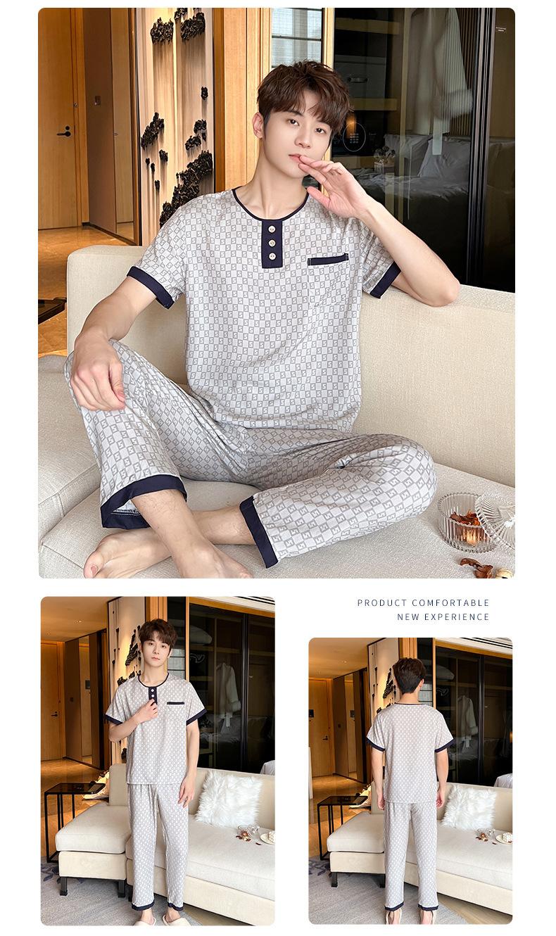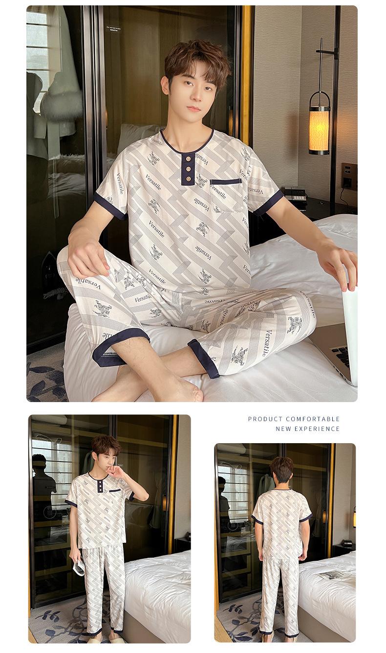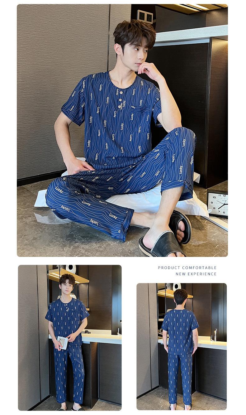 Pijamas de seda de algodón para hombre, primavera y verano, nuevos pantalones de manga corta, traje de talla grande de rayón, ropa de hogar para papá joven y de mediana edad.