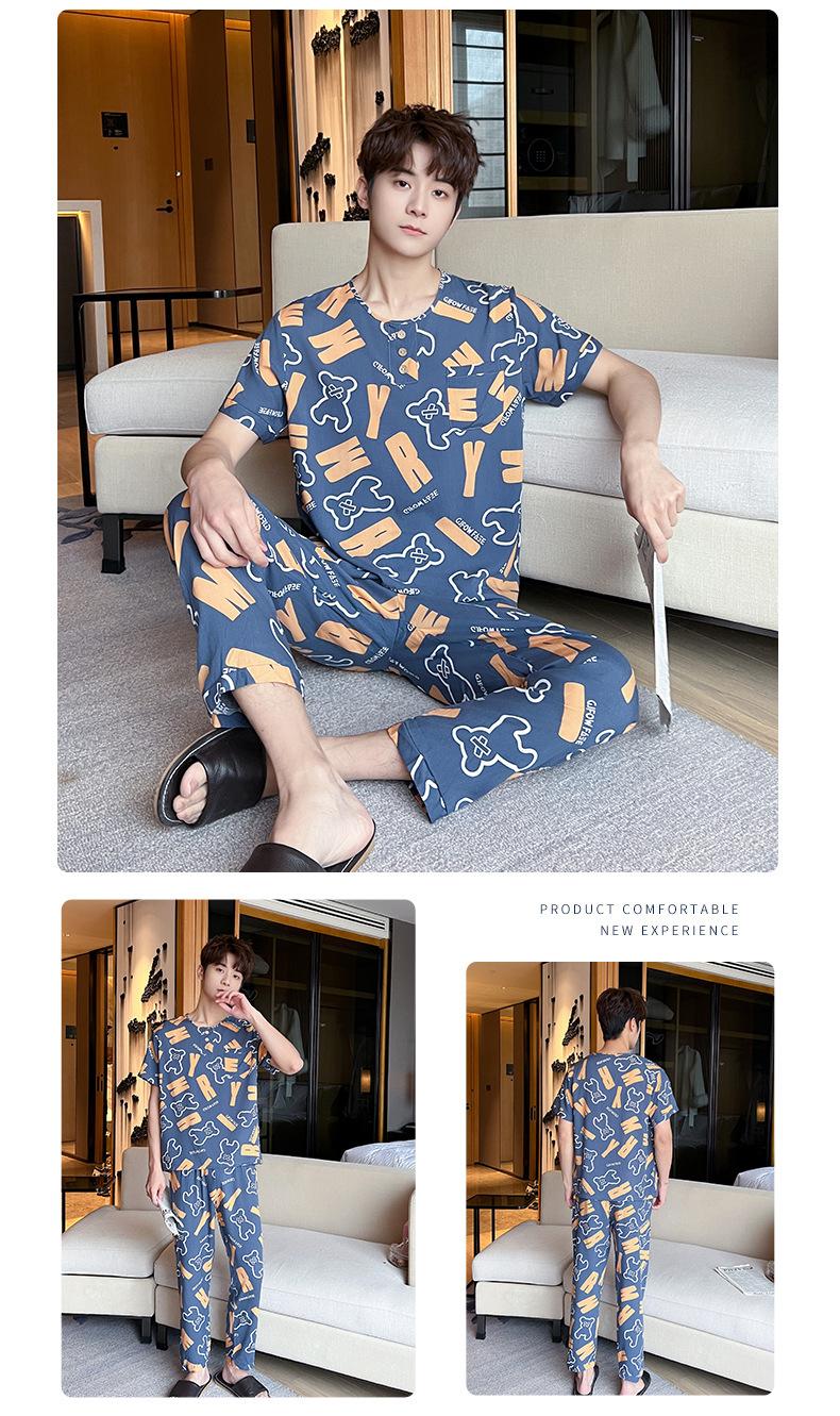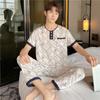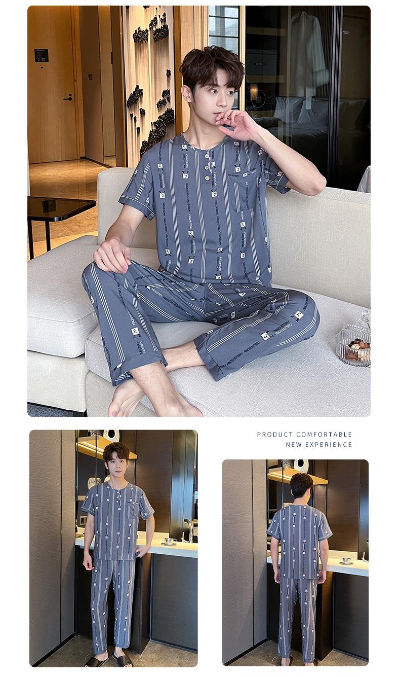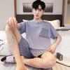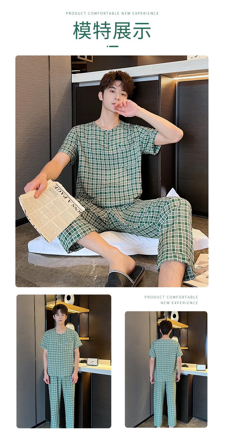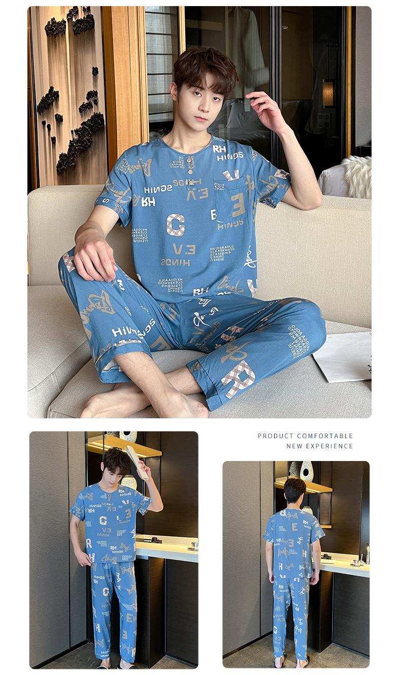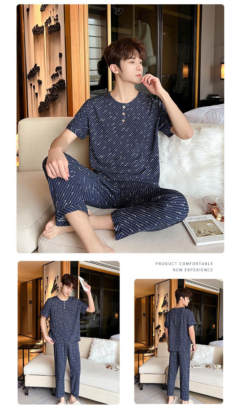 Pijamas de seda de algodón para hombre, primavera y verano, nuevos pantalones de manga corta, traje de talla grande de rayón, ropa de hogar para papá joven y de mediana edad.