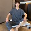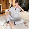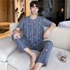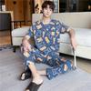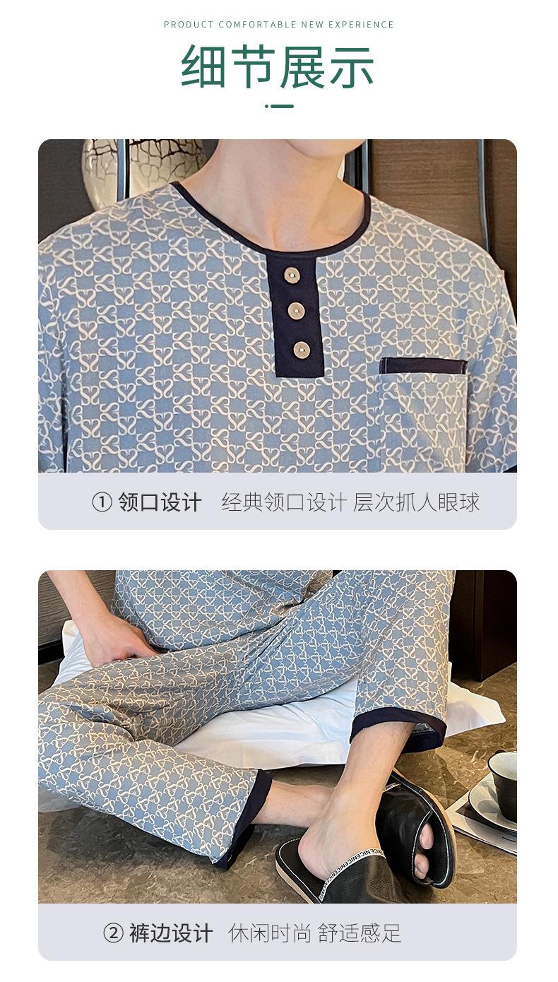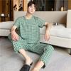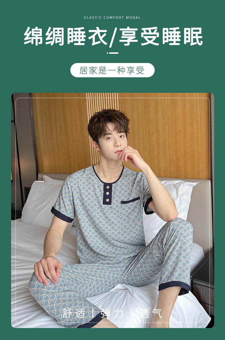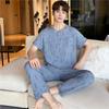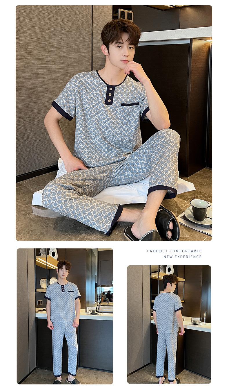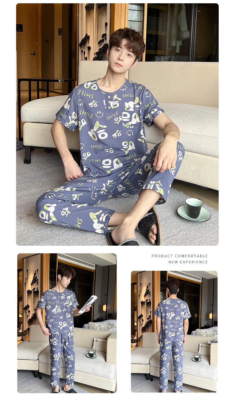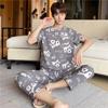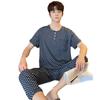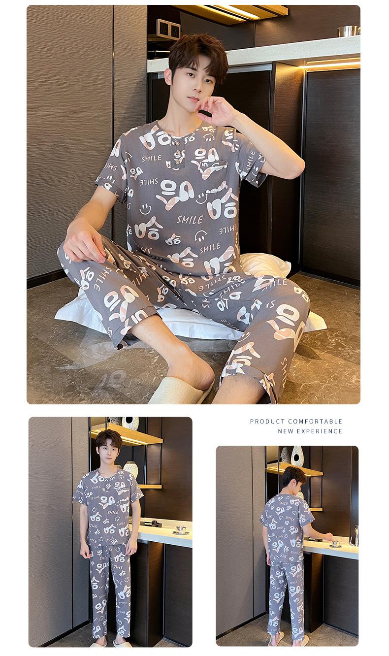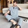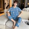 Pijamas de seda de algodón para hombre, primavera y verano, nuevos pantalones de manga corta, traje de talla grande de rayón, ropa de hogar para papá joven y de mediana edad.
