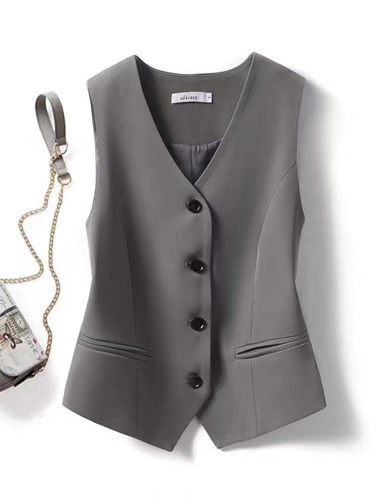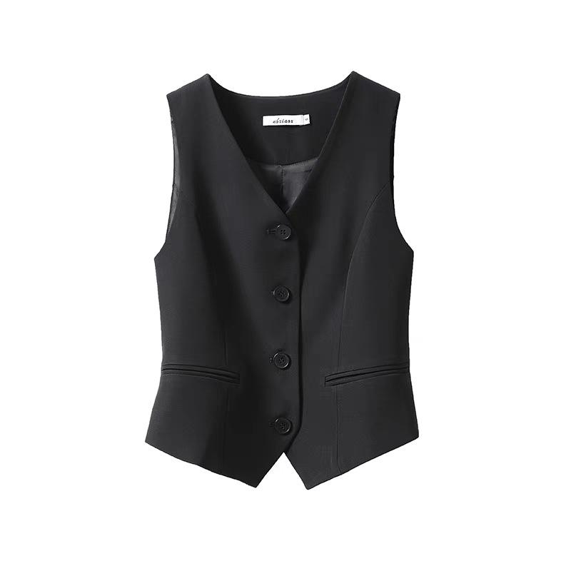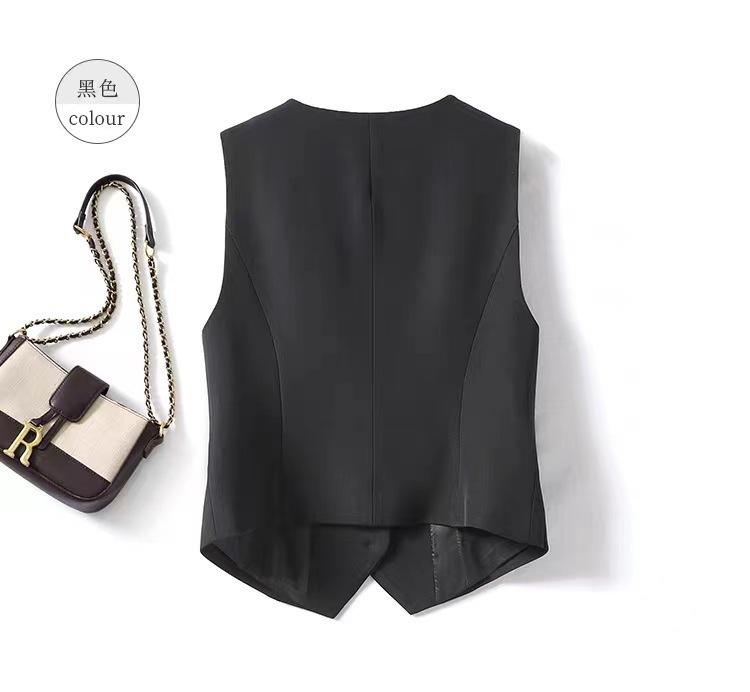Chaleco de traje para mujer, chaleco pequeño, primavera y otoño 2023, nuevo chaleco exterior ajustado con capas, chaleco corto negro para mujer