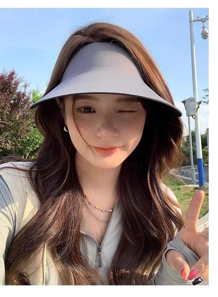 Sombrero de Sol Integrado Sin Costuras para Mujer, Sombrero de Sol Plegable Anti-UV, Sombrero de Sol de Verano para Exteriores de Ala Ancha y Copa Vacía
