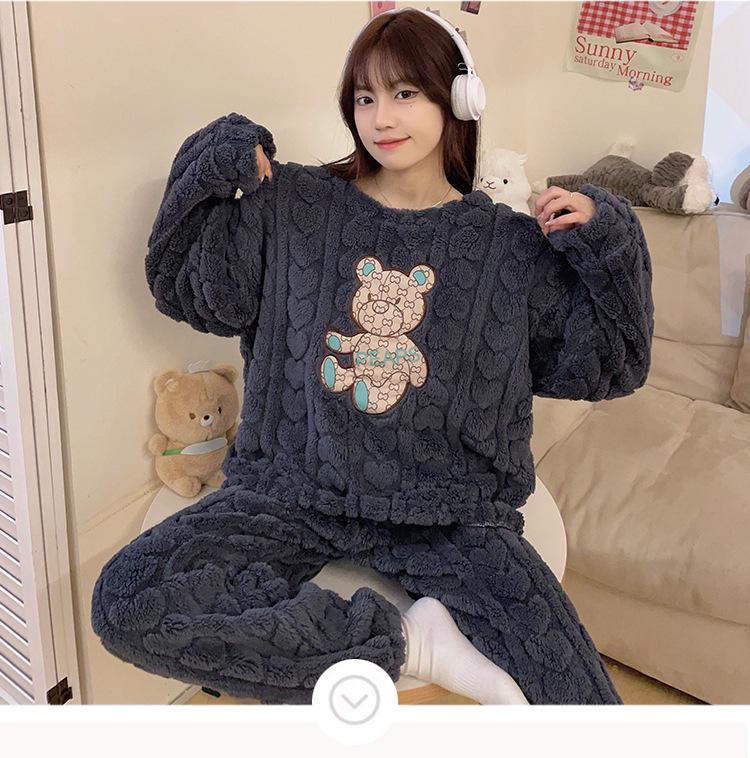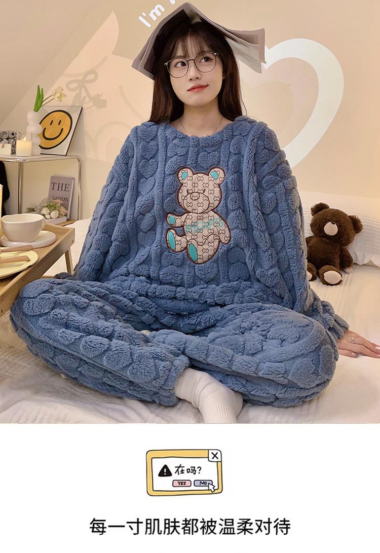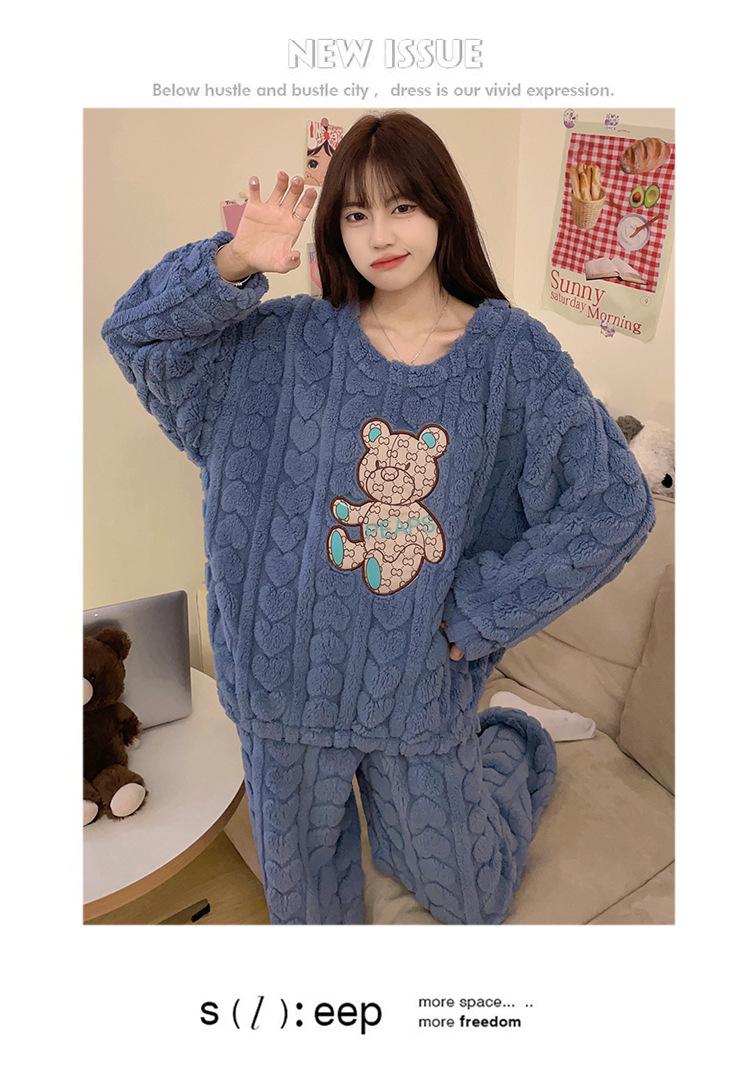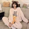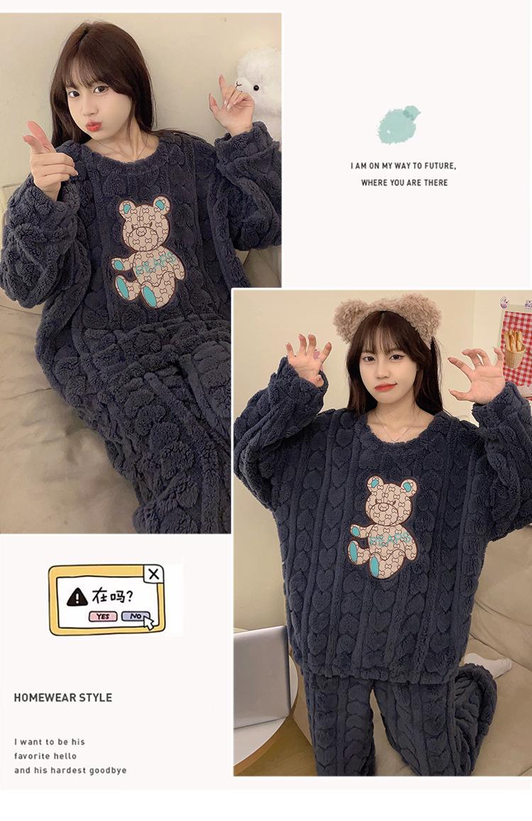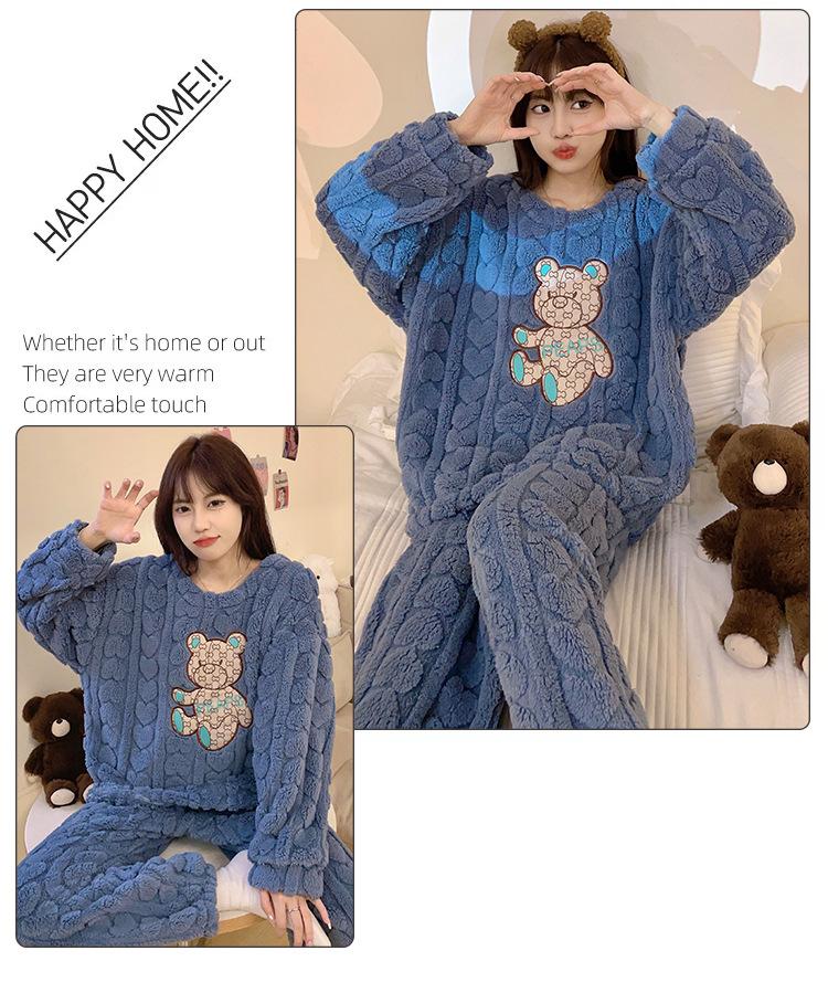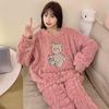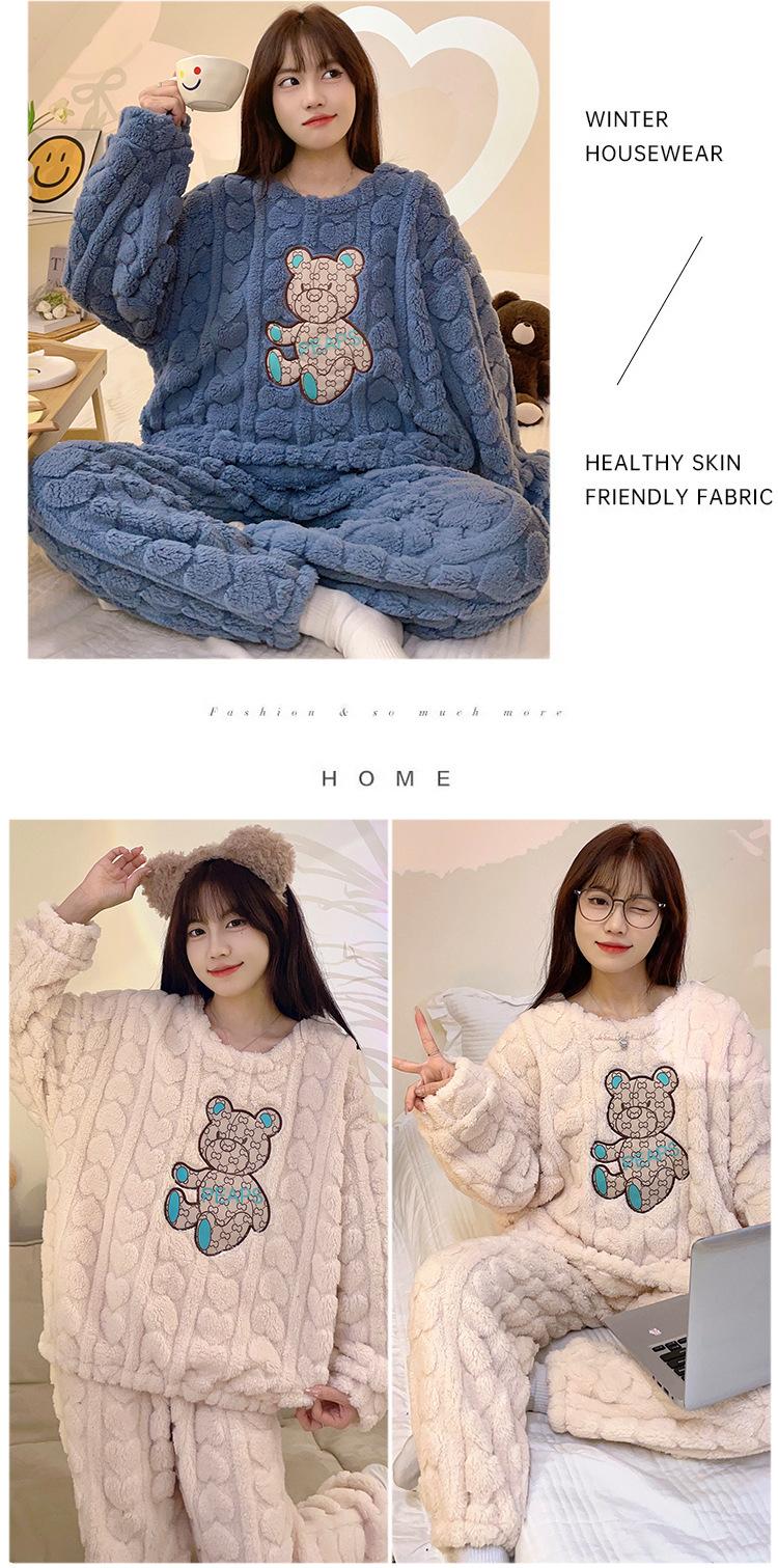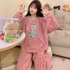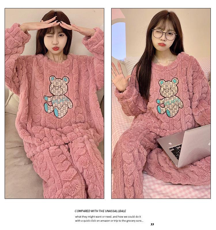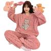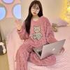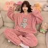 Pijamas de franela de otoño e invierno para mujer, bonitos dibujos animados, cuello redondo, forro polar coral, talla grande, para chica gordita, ropa de casa cálida