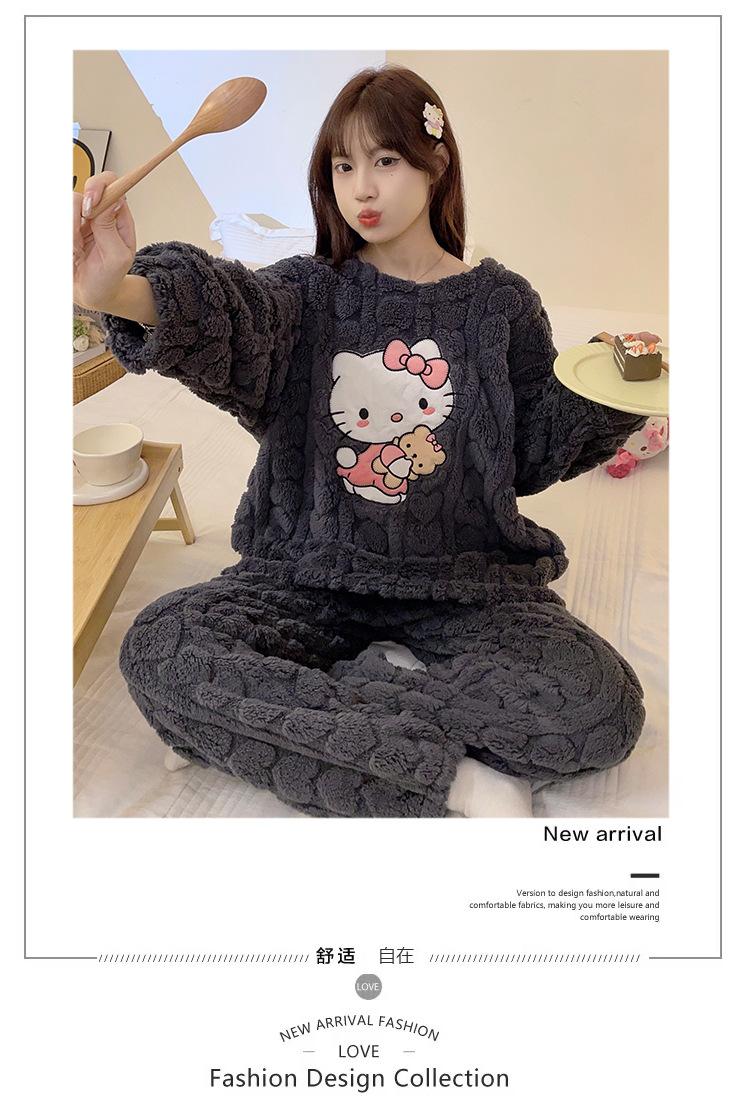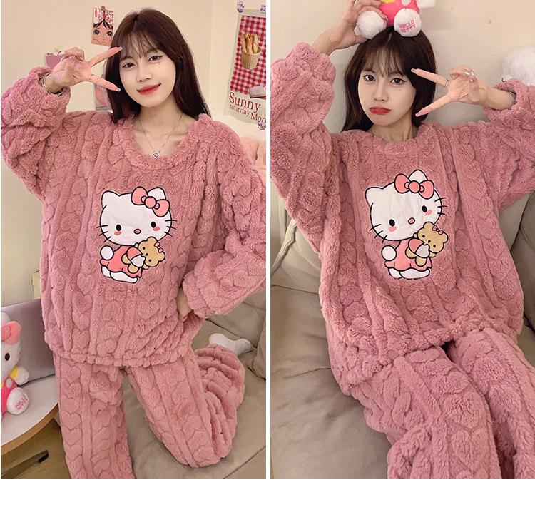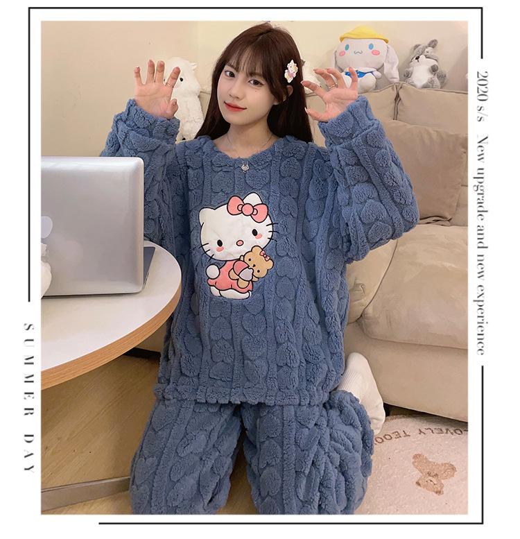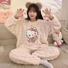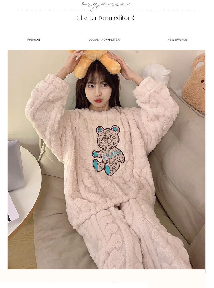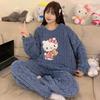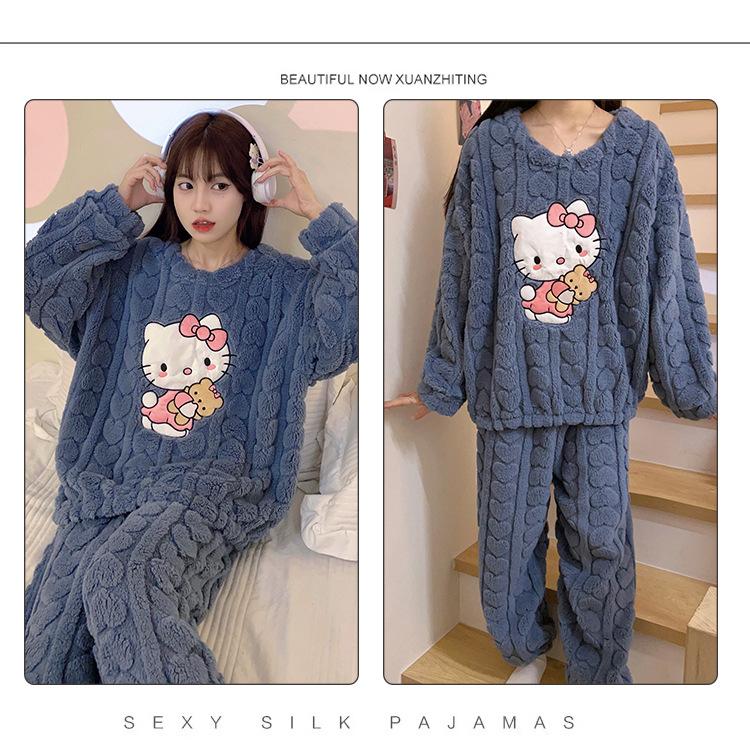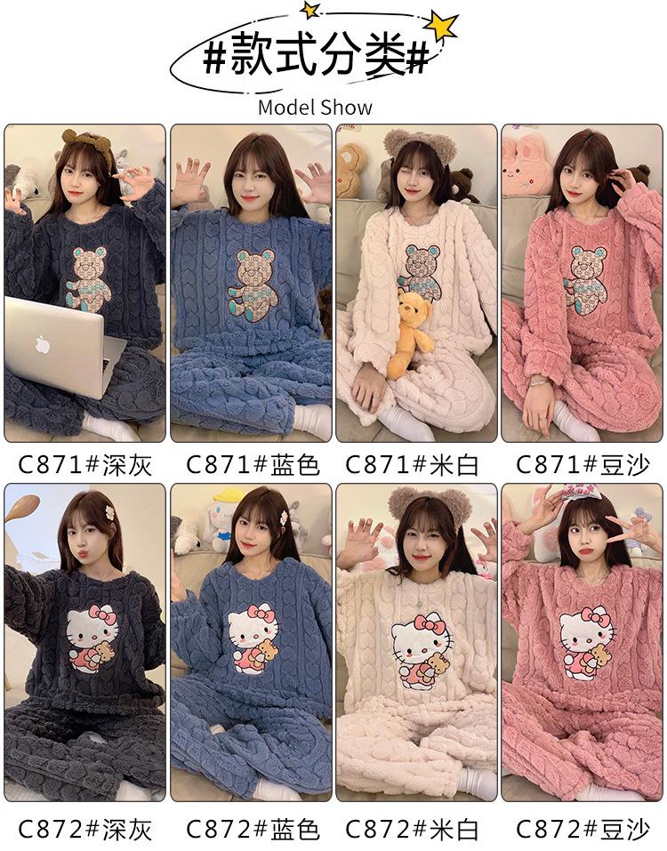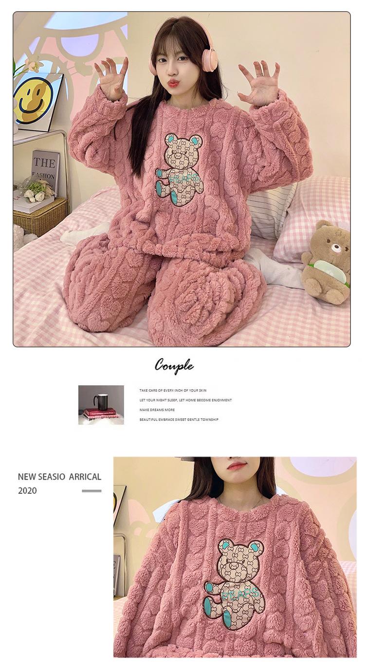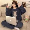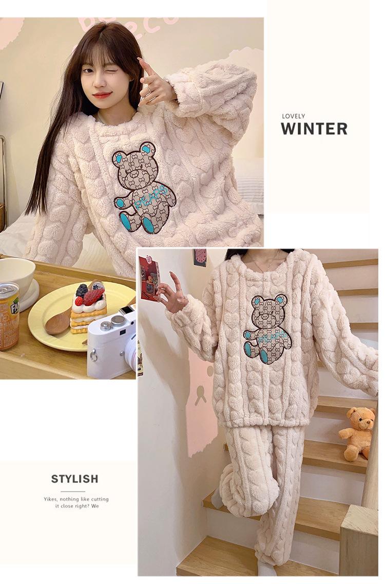 Pijamas de franela de otoño e invierno para mujer, bonitos dibujos animados, cuello redondo, forro polar coral, talla grande, para chica gordita, ropa de casa cálida