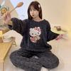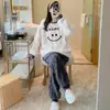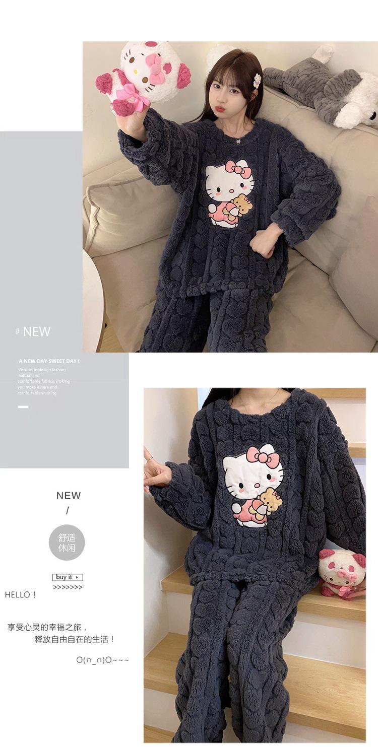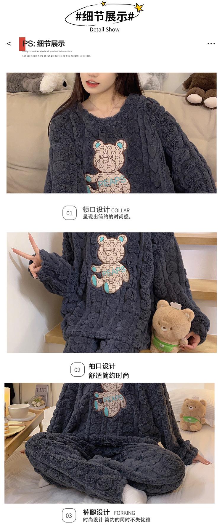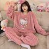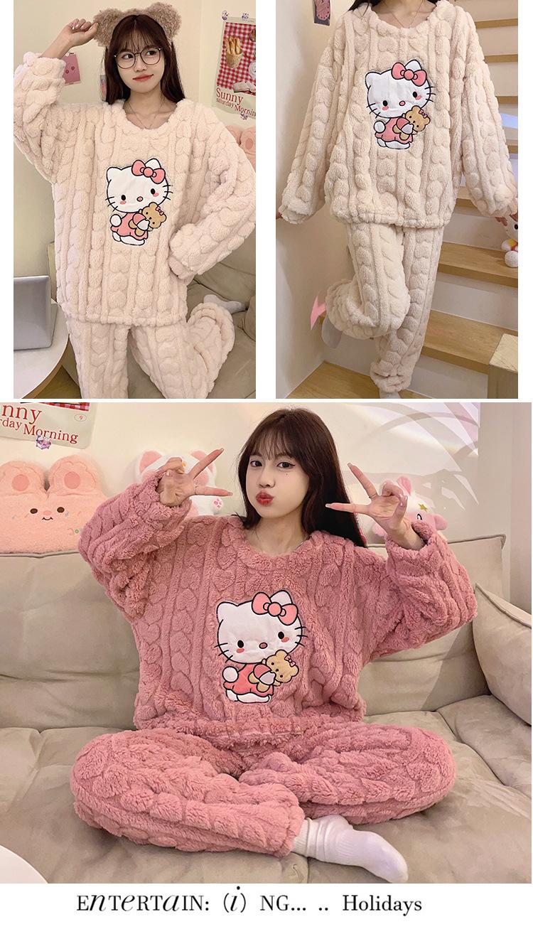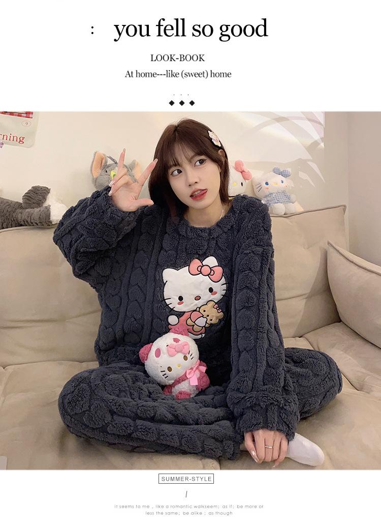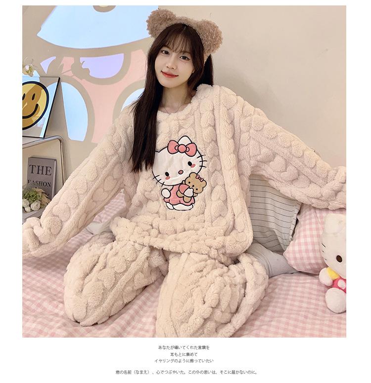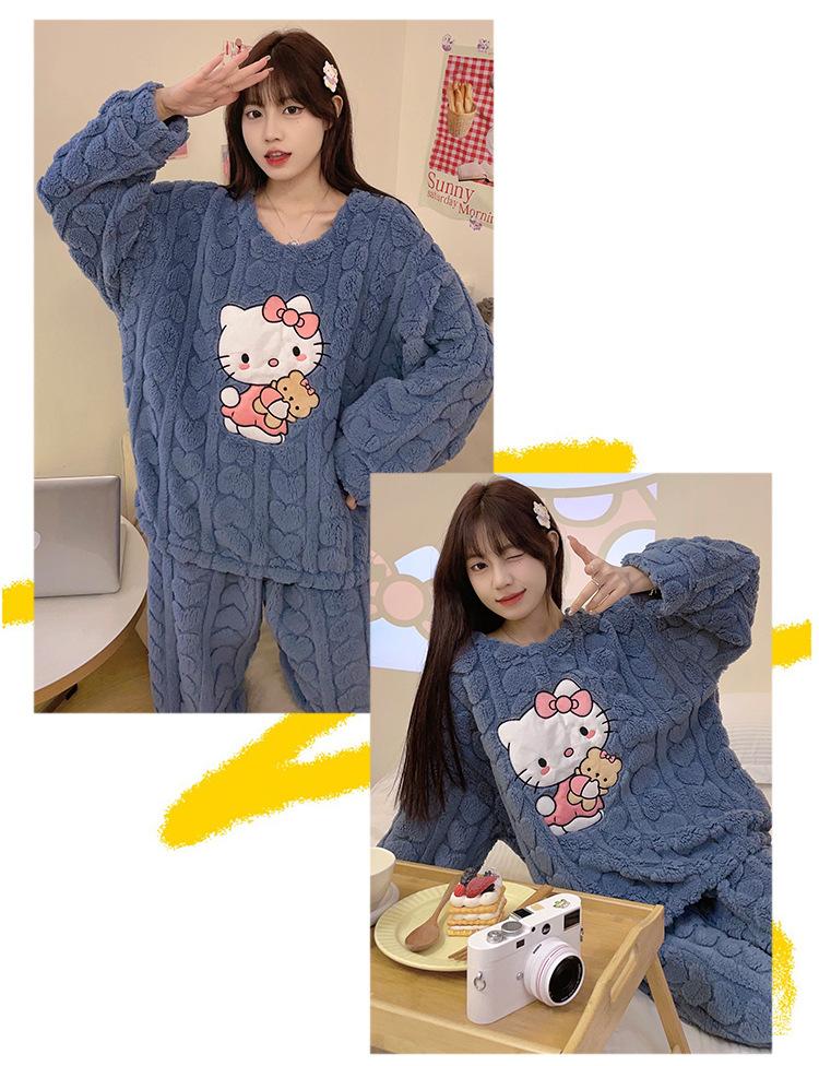 Pijamas de franela de otoño e invierno para mujer, bonitos dibujos animados, cuello redondo, forro polar coral, talla grande, para chica gordita, ropa de casa cálida