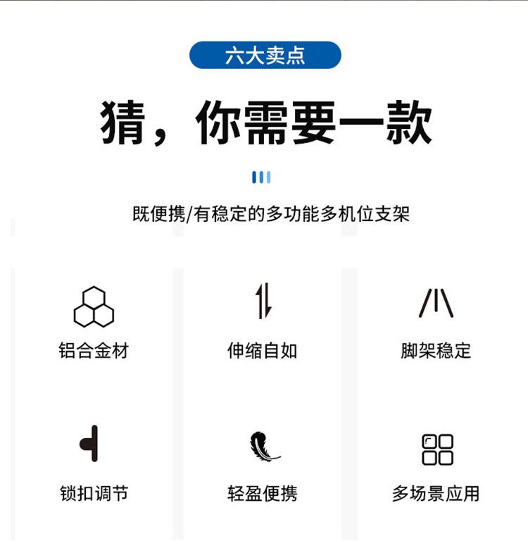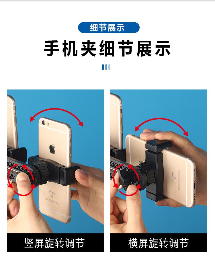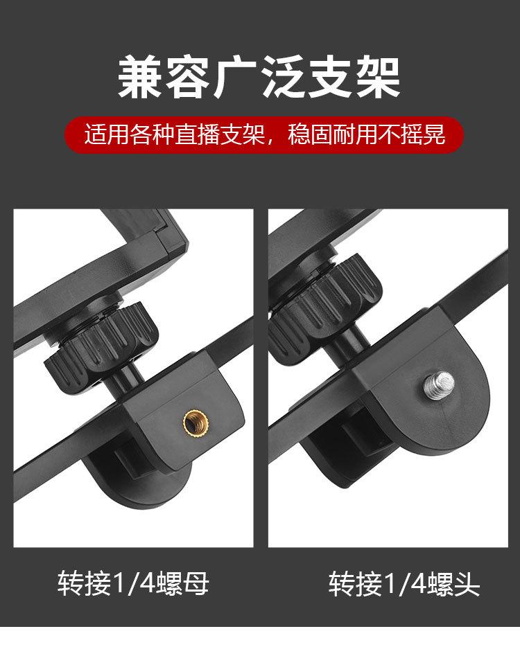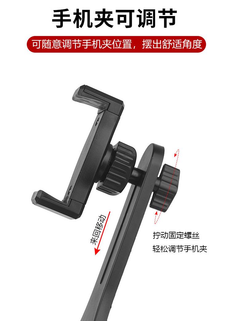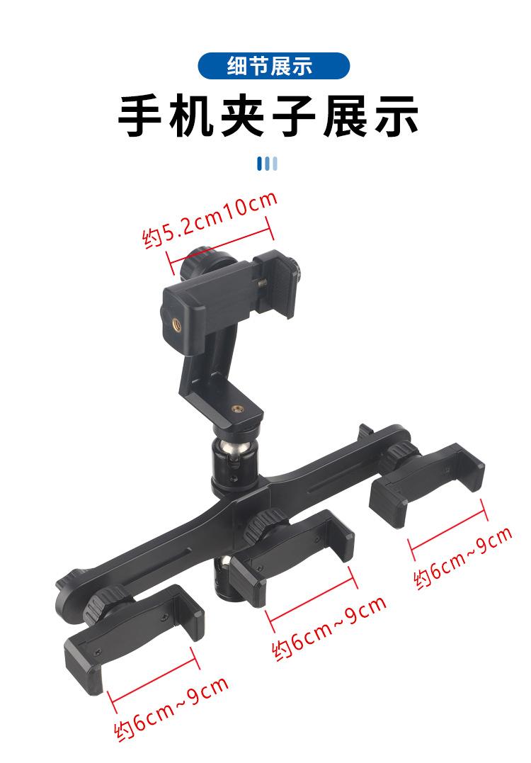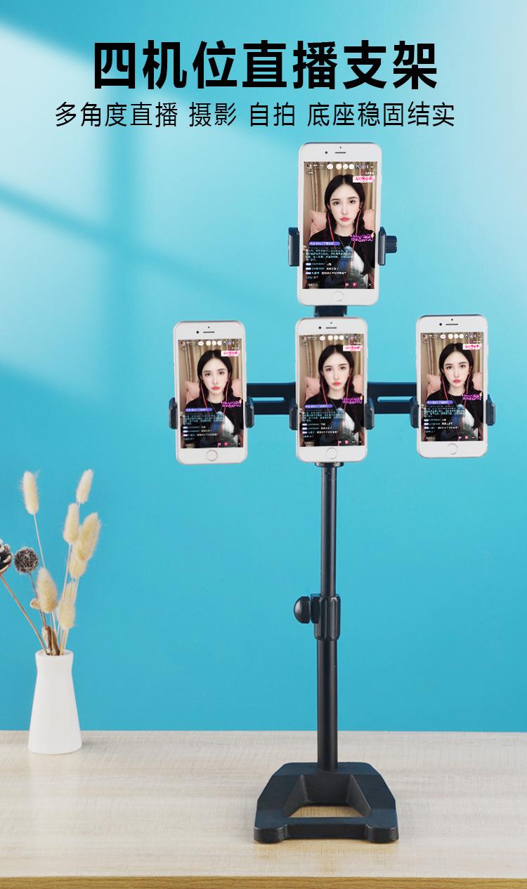 El soporte para transmisión en vivo de teléfono móvil con cabezal de clip para múltiples cámaras hace vibrar tres o cuatro teléfonos móviles al mismo tiempo con una base de soporte de escritorio