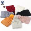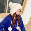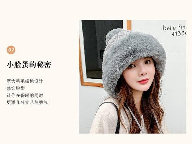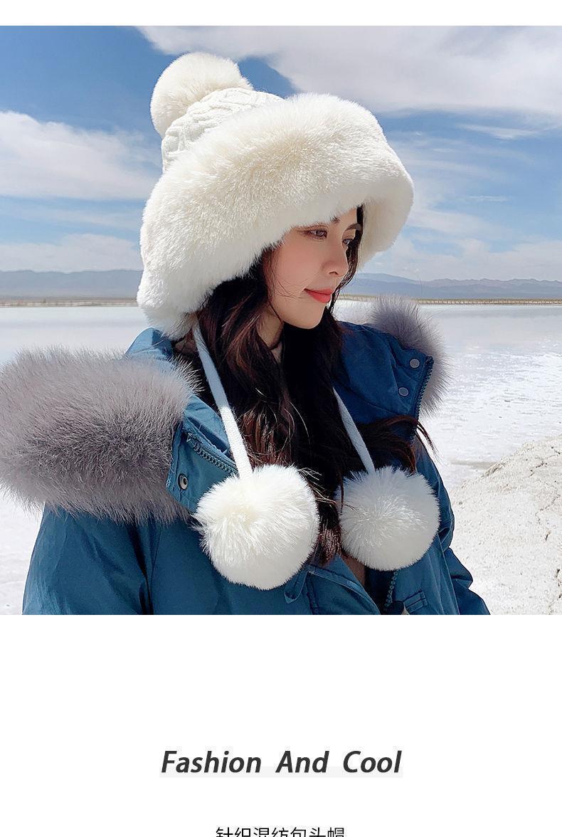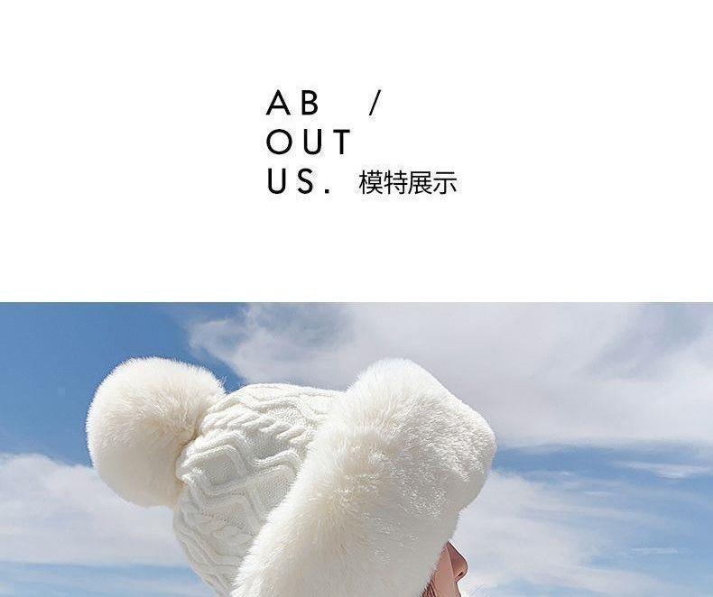Gorro de punto lindo para mujer de otoño e invierno, tipo jersey, grueso y cálido con forro polar y protección para las orejas, con pompón de piel.