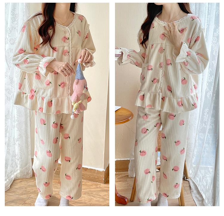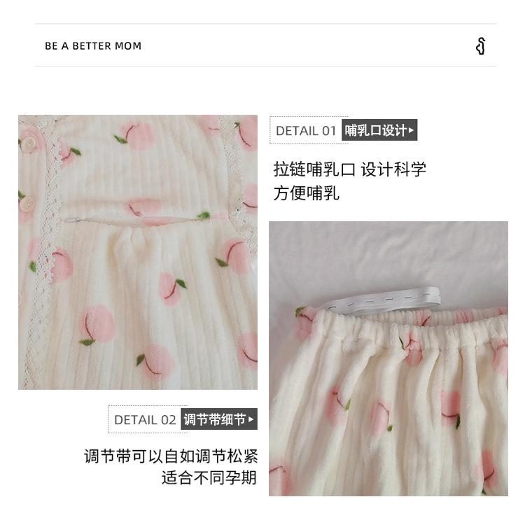 Pijamas de mujer embarazada de otoño e invierno de franela gruesa y cálida, ropa de confinamiento con cremallera, boca de lactancia, traje de maternidad posparto