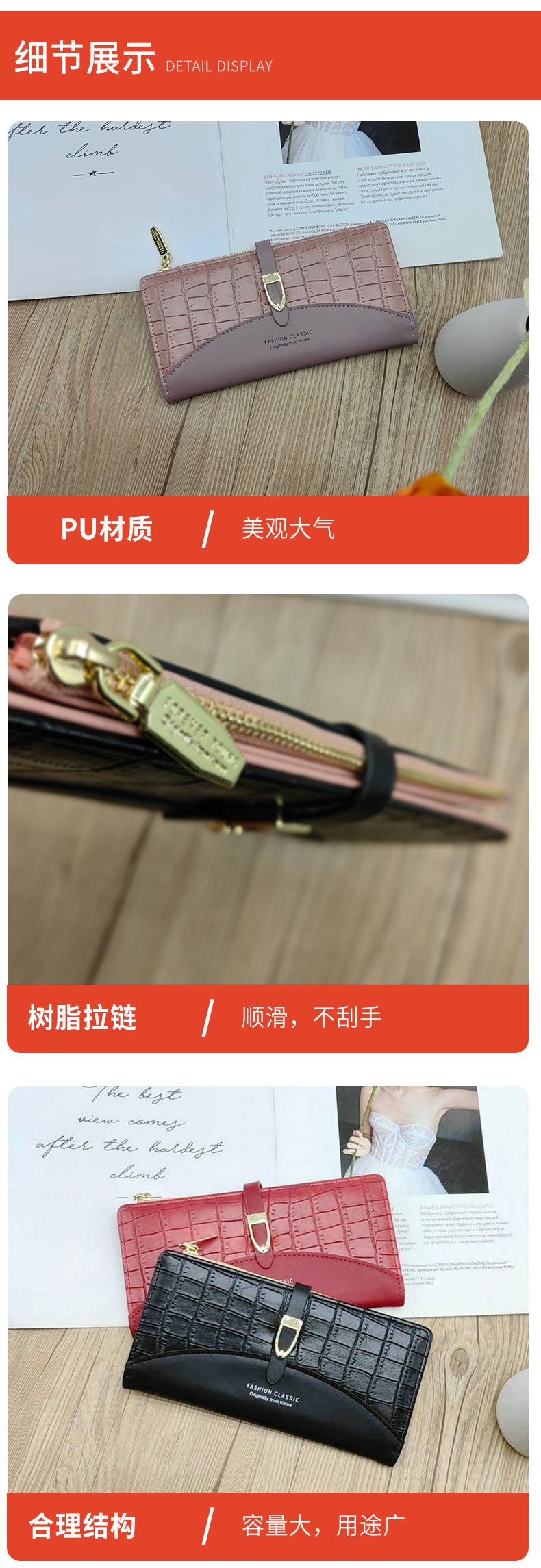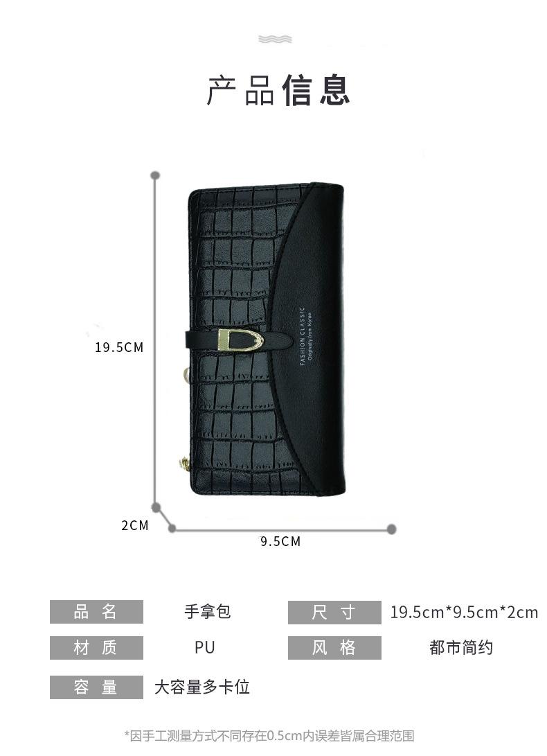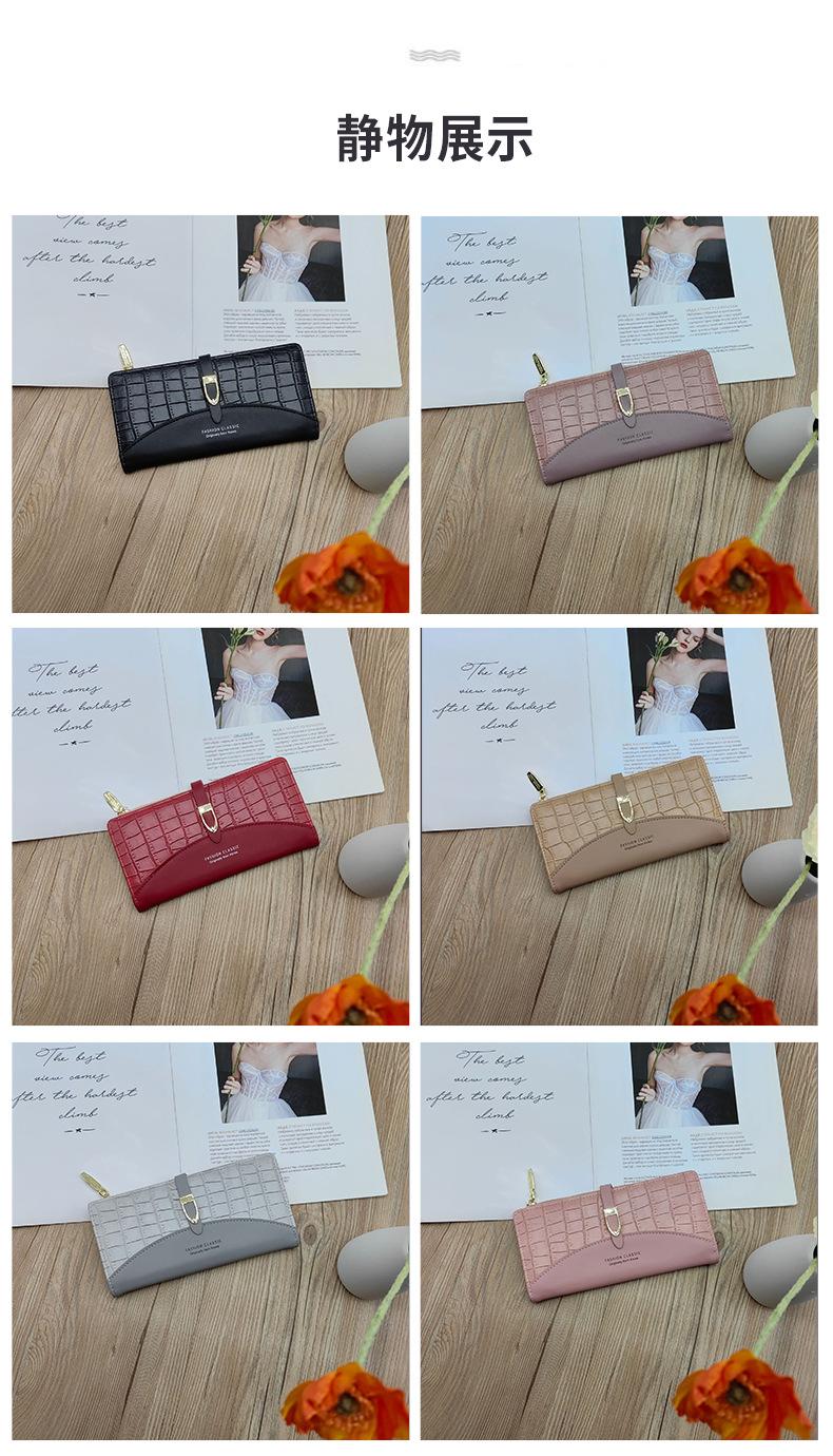 2023 Nueva Cartera Larga para Mujer Cartera Bifold Cierre Lateral con Hebilla Costuras de Cocodrilo