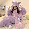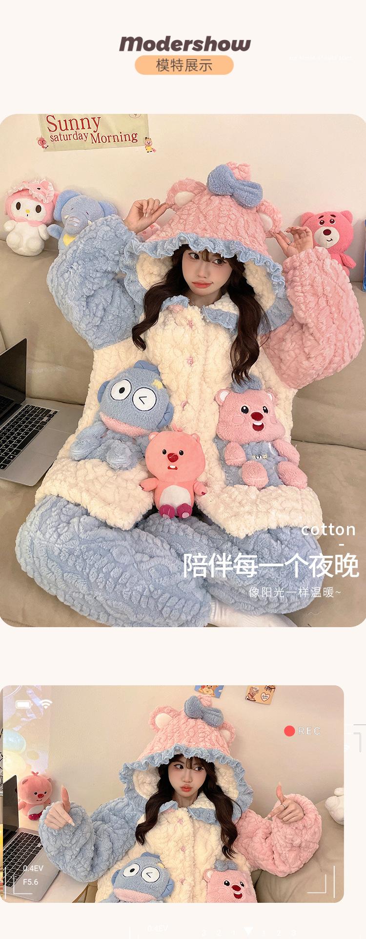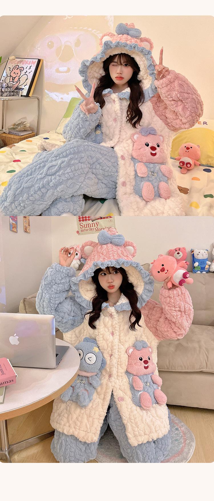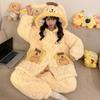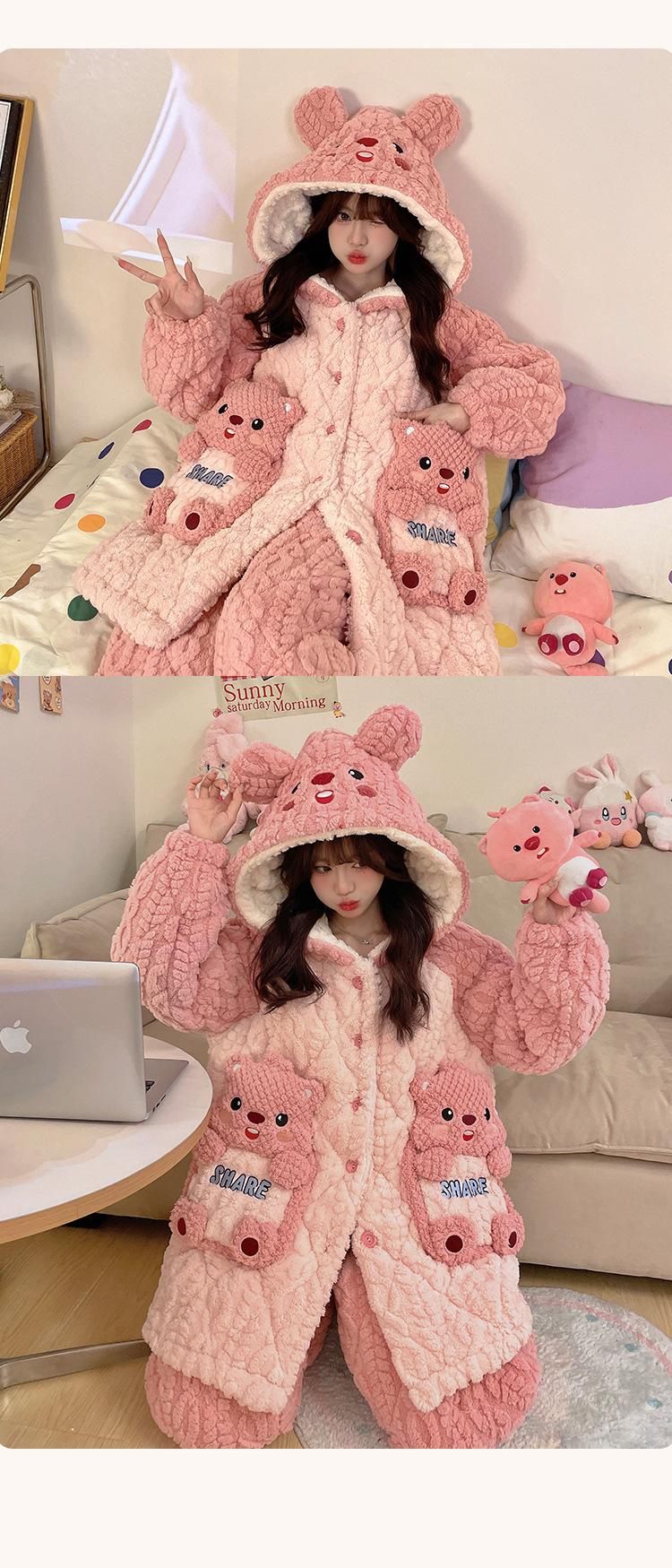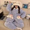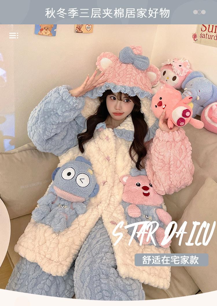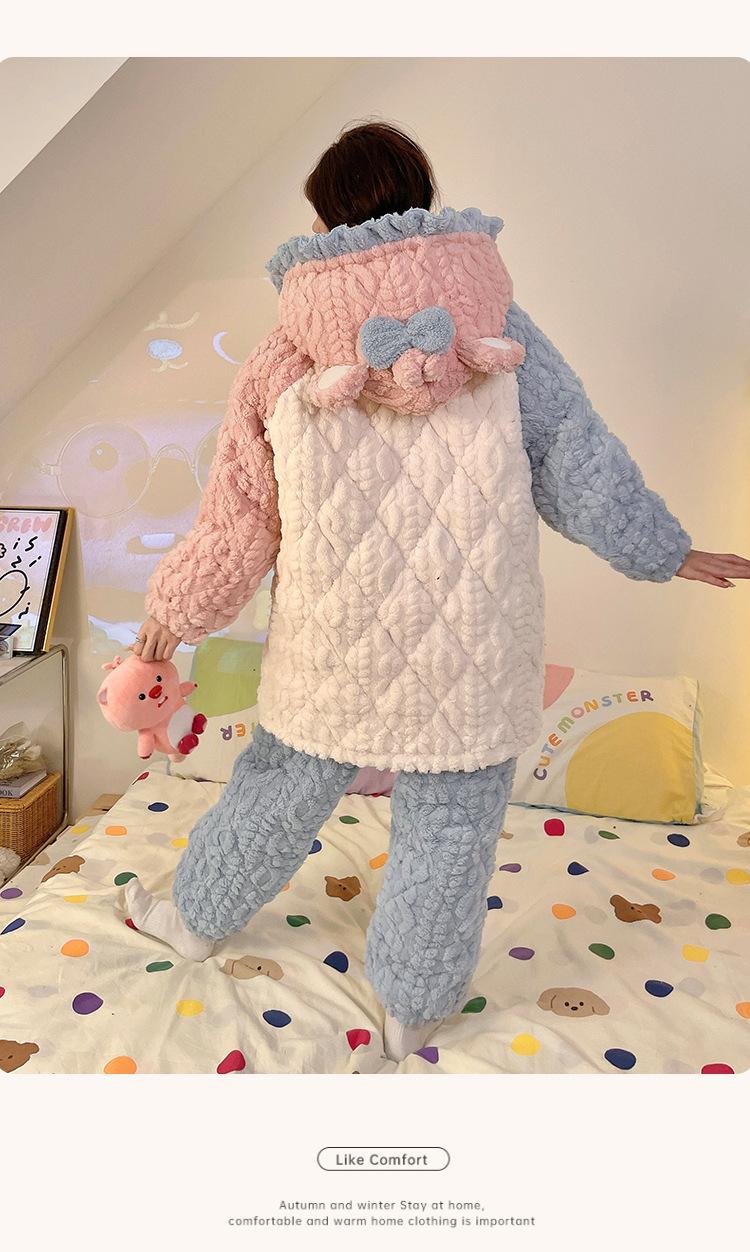 Pijama grueso de tres capas acolchado de vellón coral para mujer, con cremallera de invierno, con capucha, ropa nueva para el hogar, franela cálida con forro polar