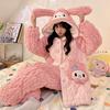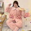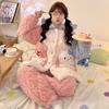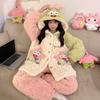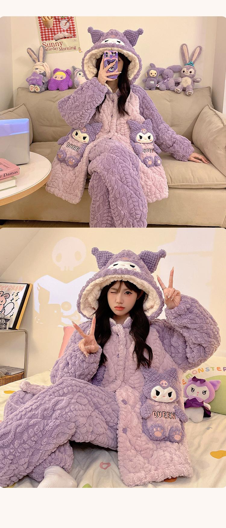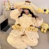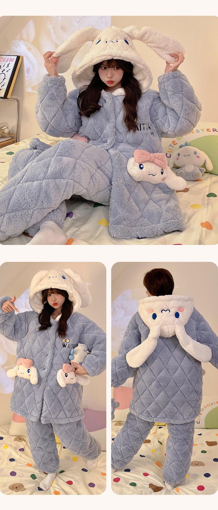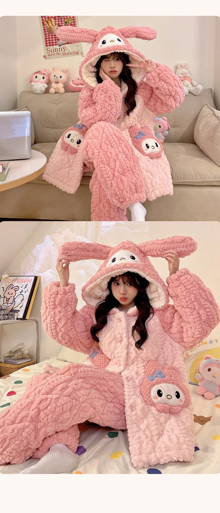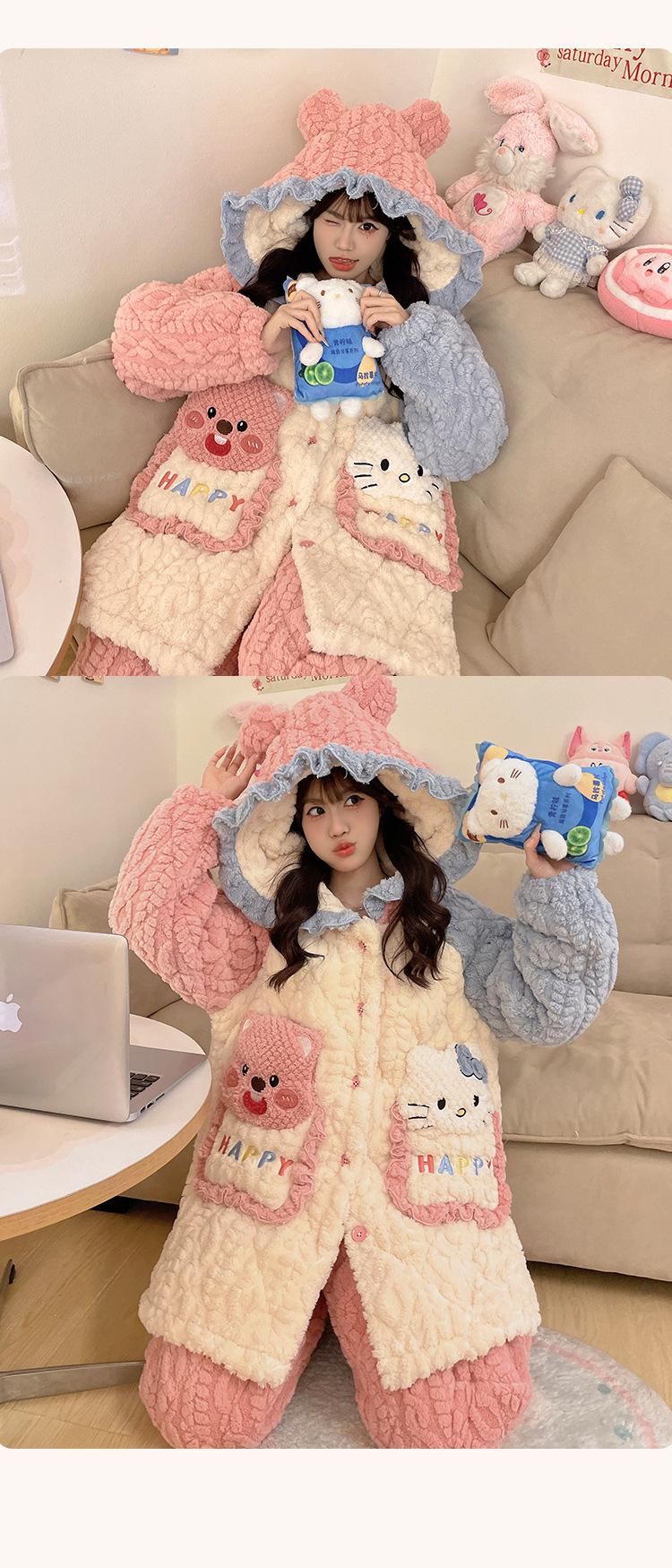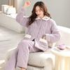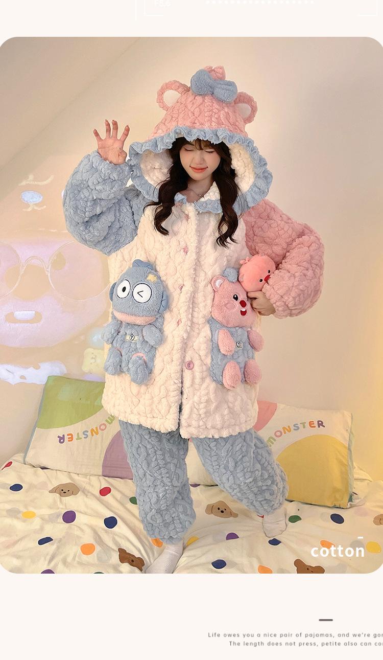 Pijama grueso de tres capas acolchado de vellón coral para mujer, con cremallera de invierno, con capucha, ropa nueva para el hogar, franela cálida con forro polar
