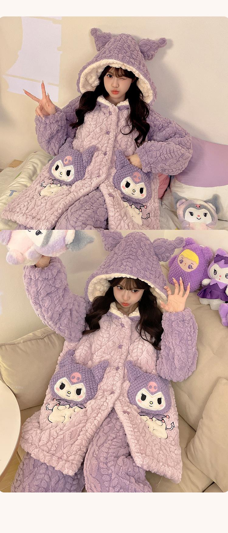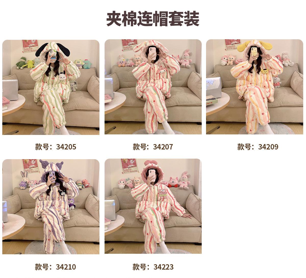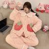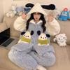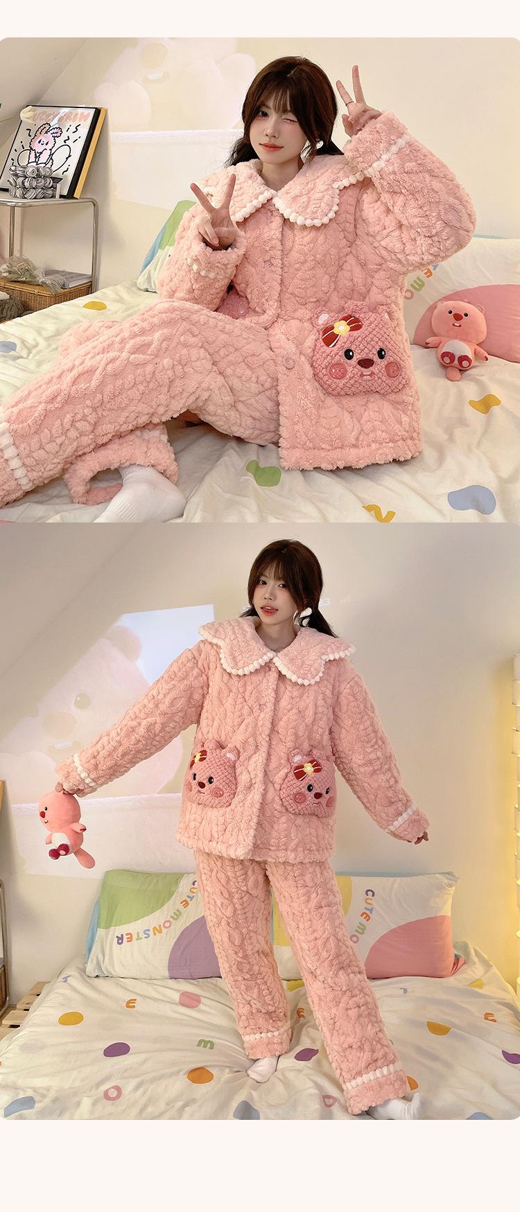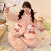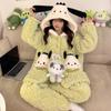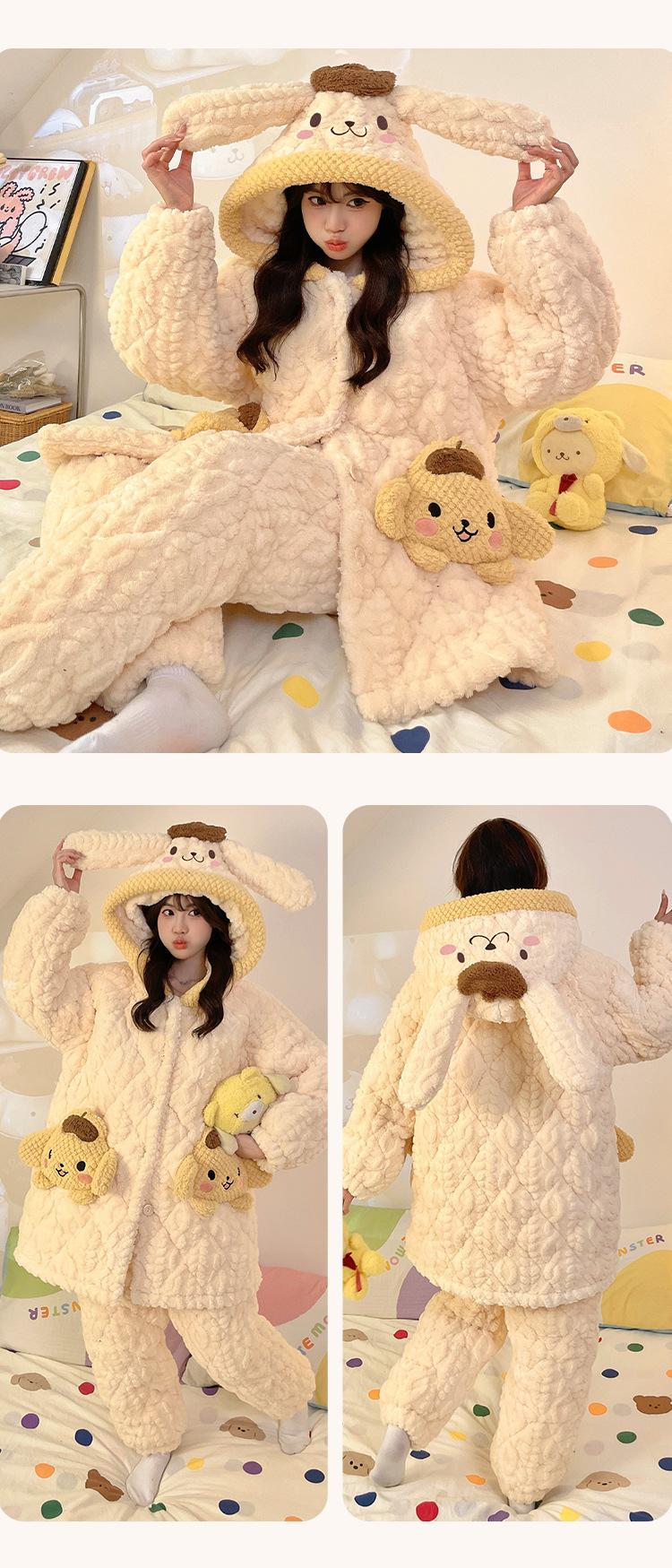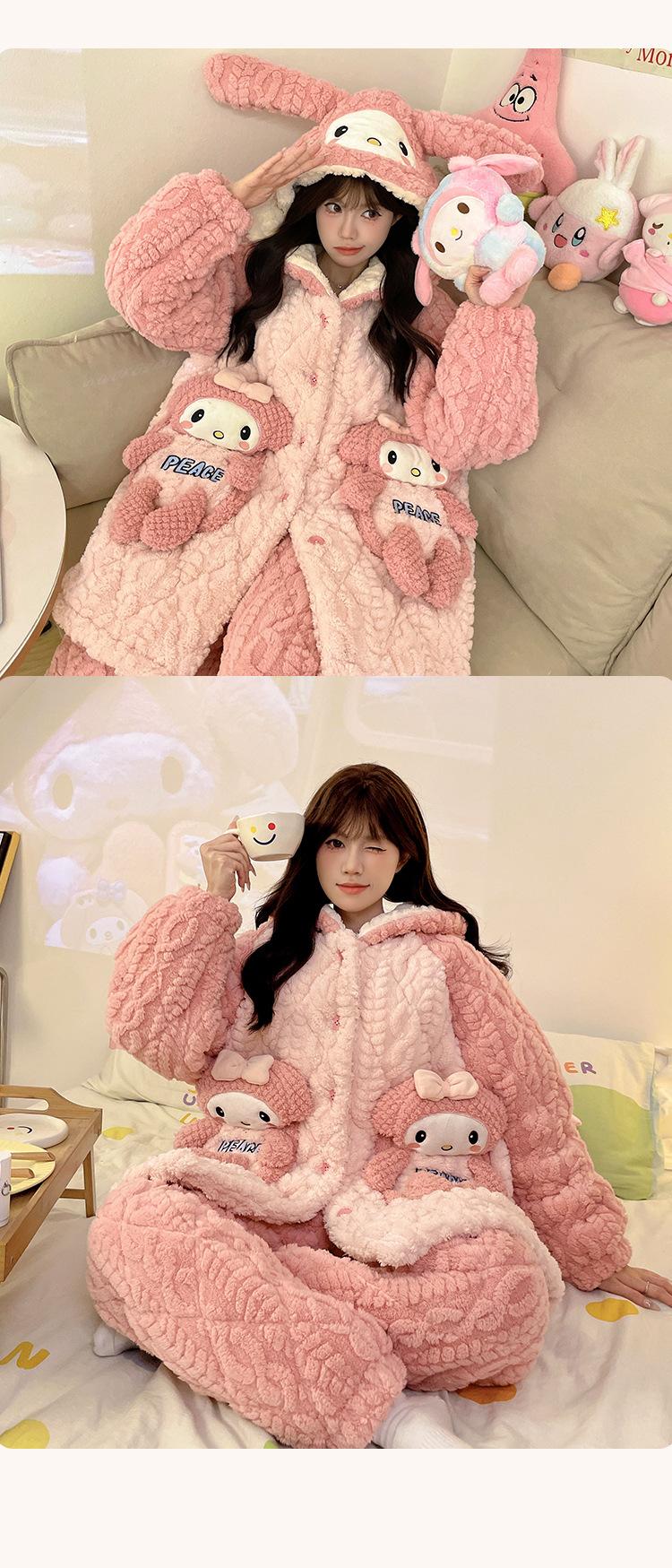 Pijama grueso de tres capas acolchado de vellón coral para mujer, con cremallera de invierno, con capucha, ropa nueva para el hogar, franela cálida con forro polar