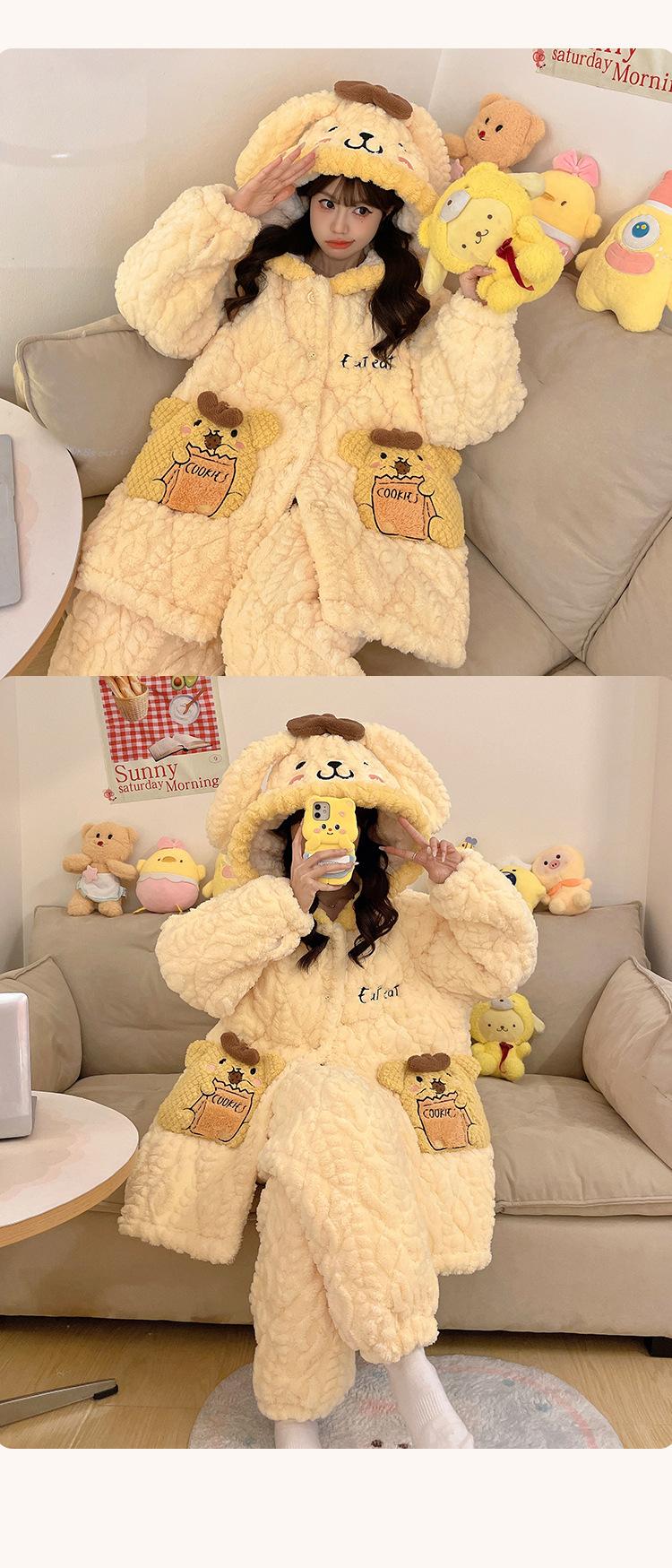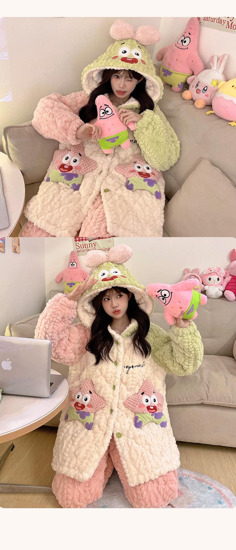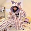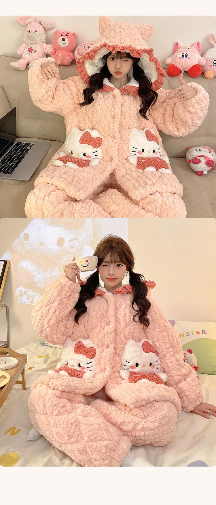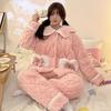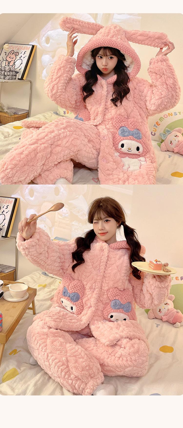 Pijama grueso de tres capas acolchado de vellón coral para mujer, con cremallera de invierno, con capucha, ropa nueva para el hogar, franela cálida con forro polar
