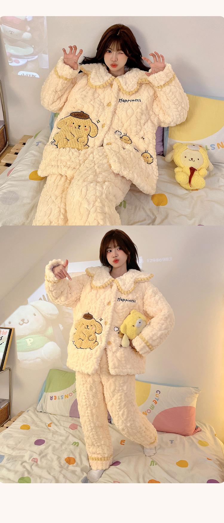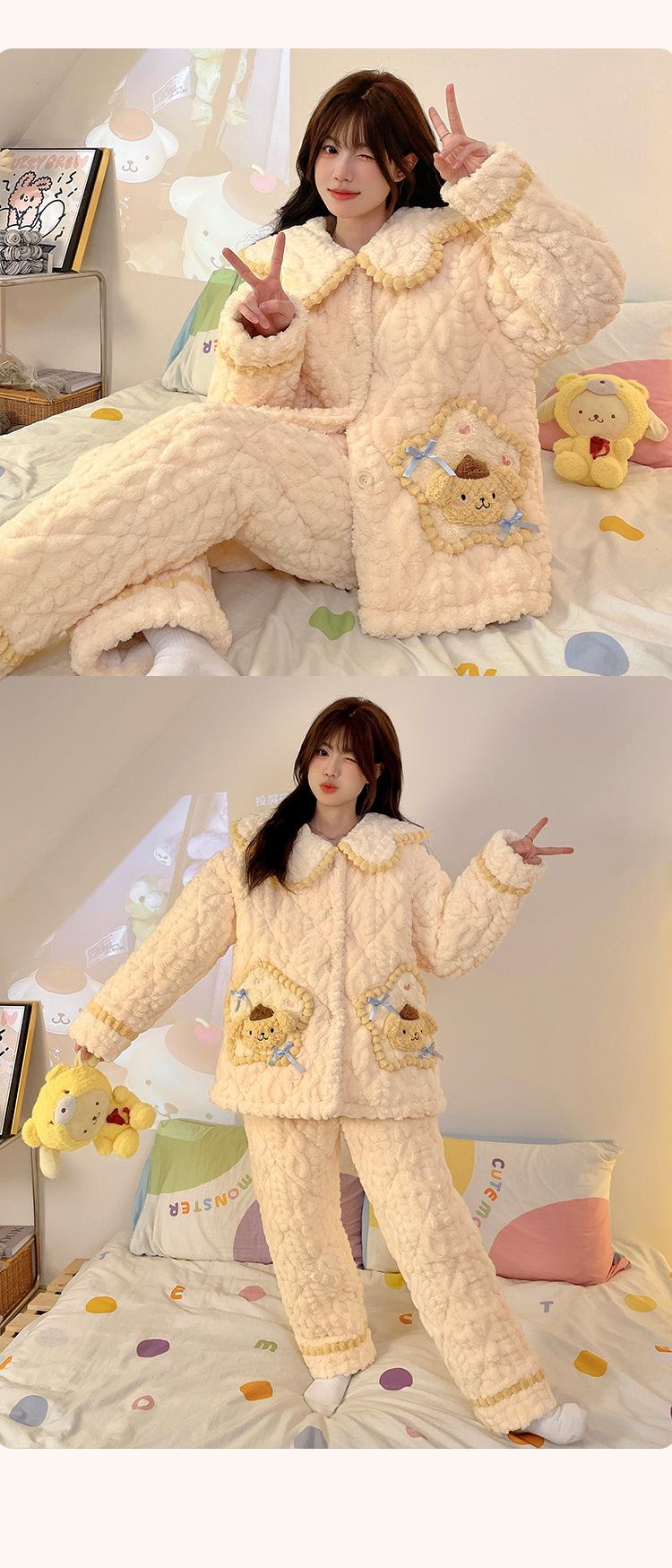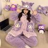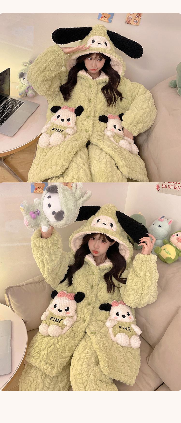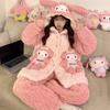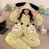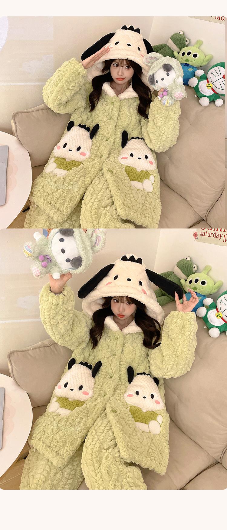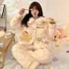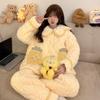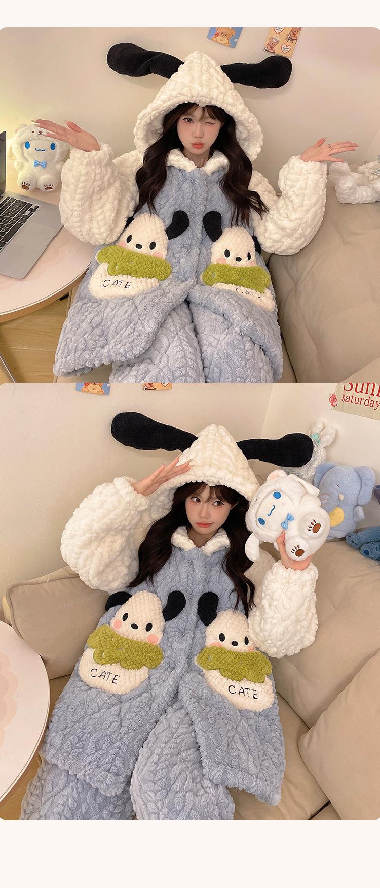 Pijama grueso de tres capas acolchado de vellón coral para mujer, con cremallera de invierno, con capucha, ropa nueva para el hogar, franela cálida con forro polar