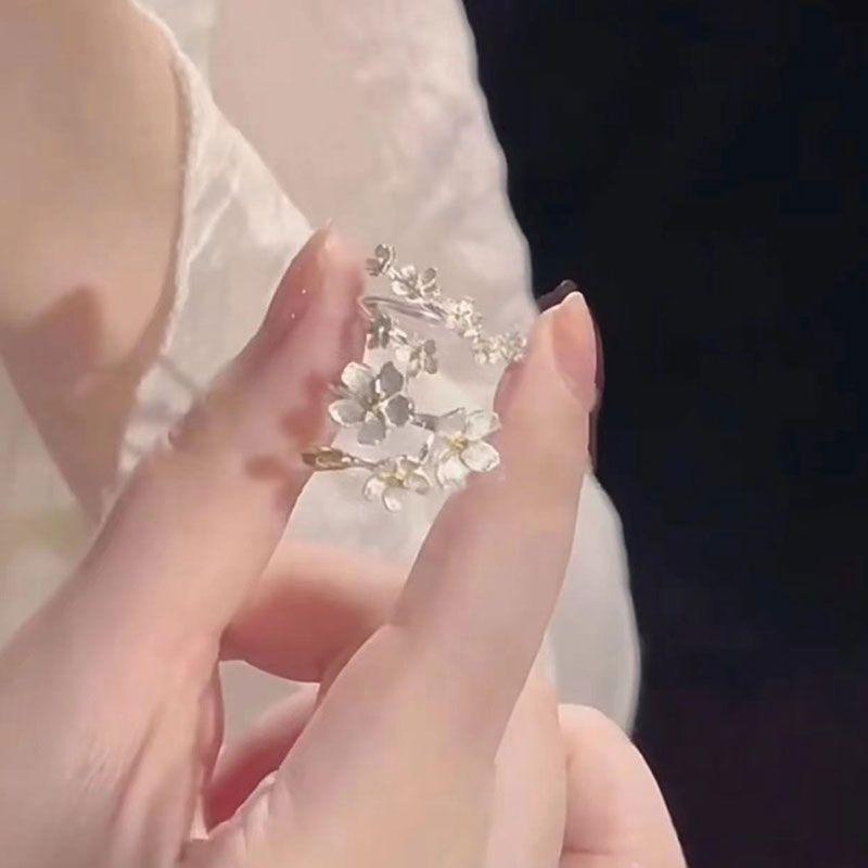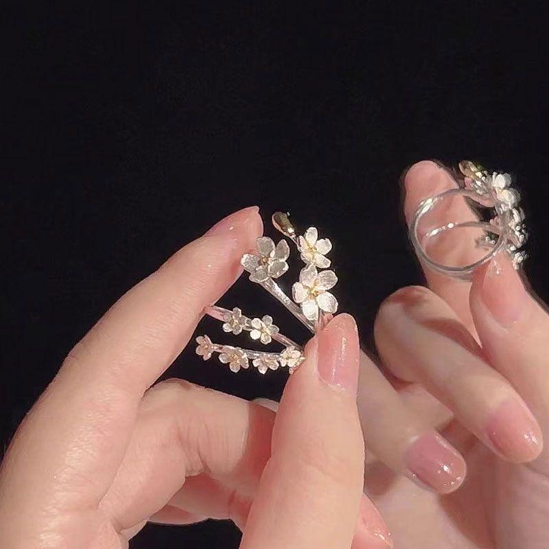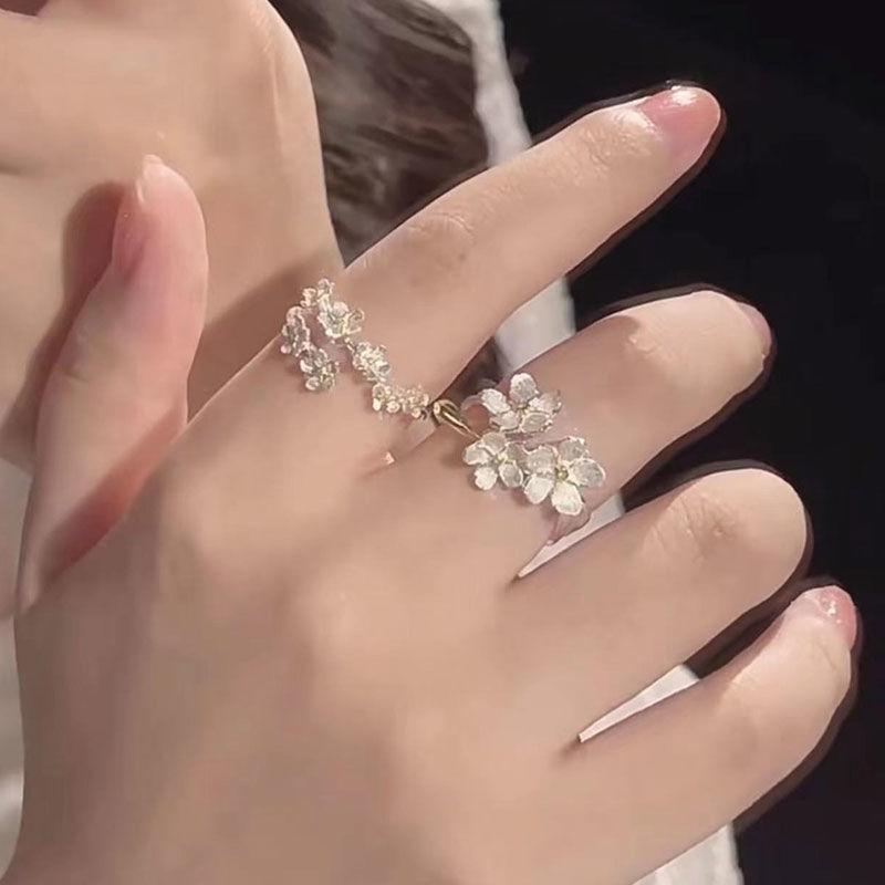 Nuevo anillo de iris de celebridades en línea con diseño de nicho, anillo abierto, flor tridimensional, dulce pulsera combinable.