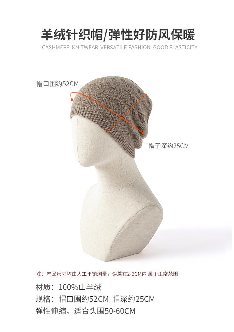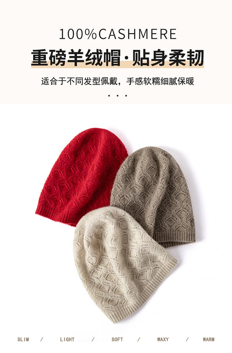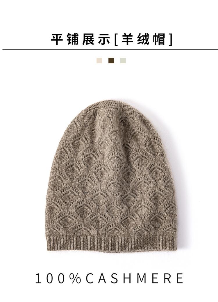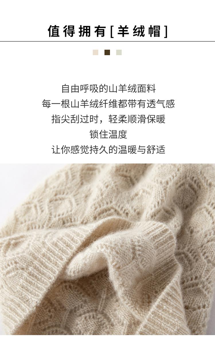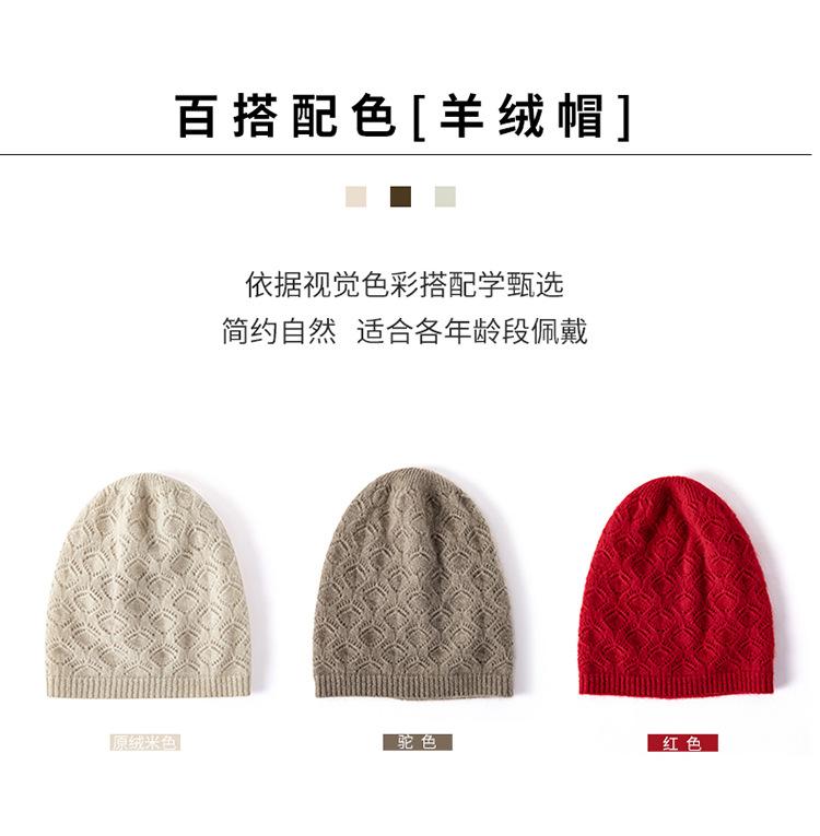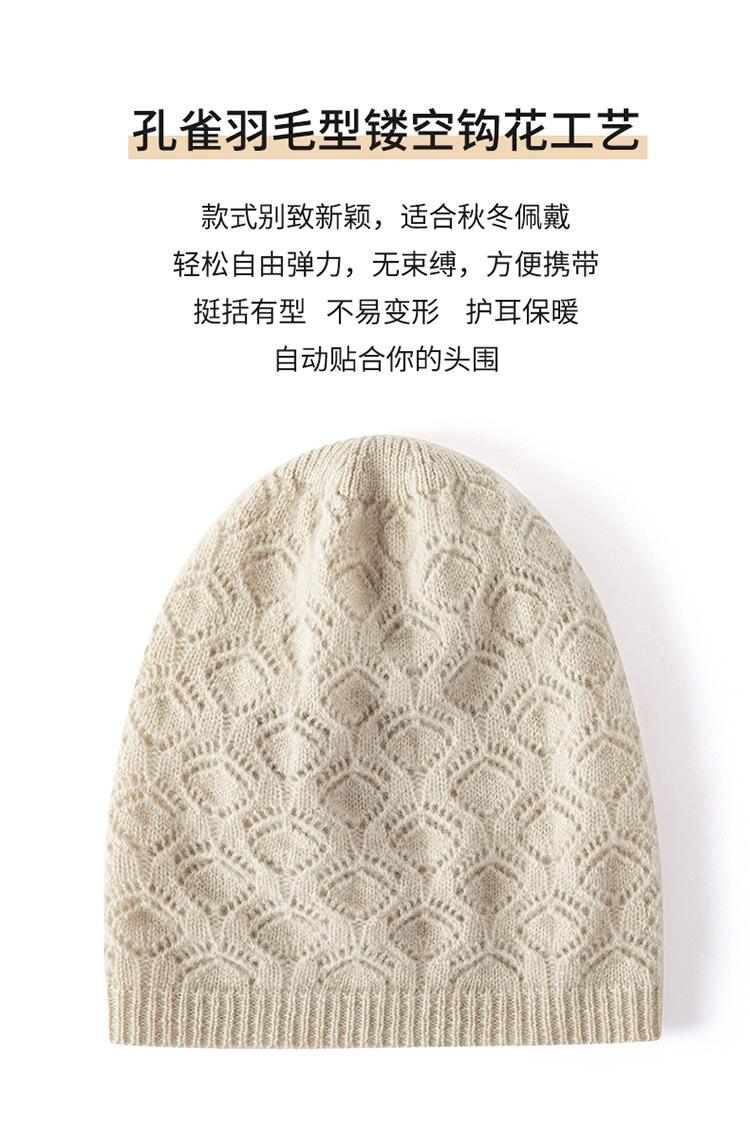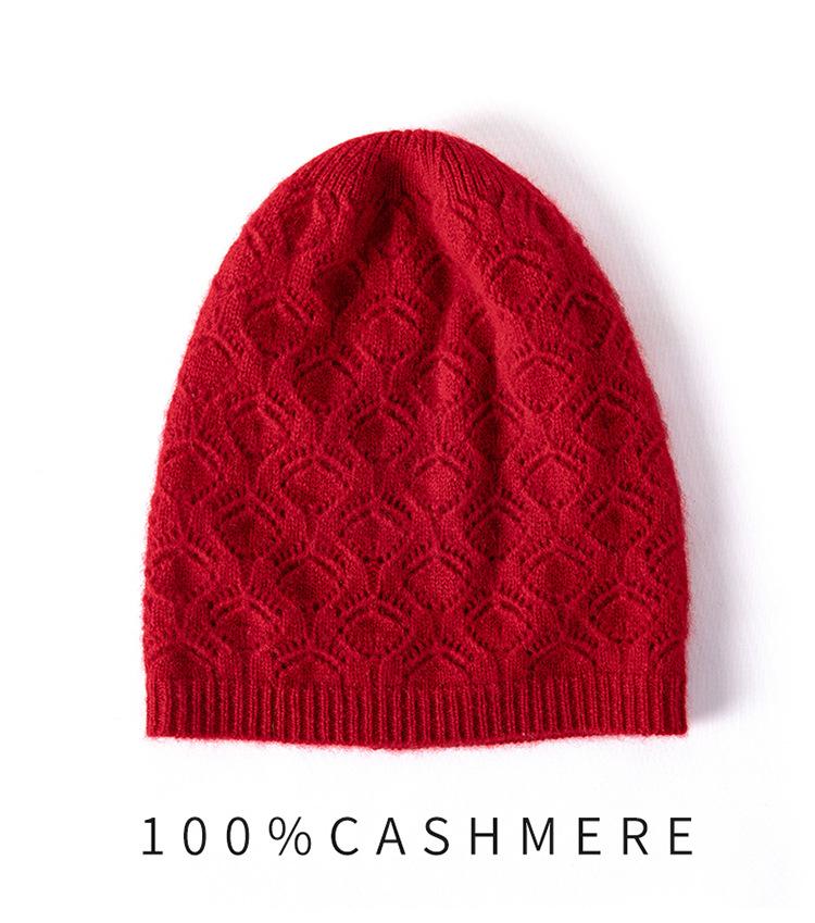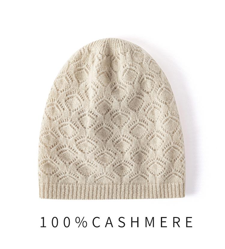 Gorro de Cachemira Mujer 100% Cachemira Pura Otoño e Invierno Nuevo Calado Cálido Color Sólido Tejido Más Fácil de Combinar Sombrero
