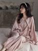Pijama de textura retro de alta gama para mujer, pantalones de manga larga de primavera y otoño, traje de ropa de casa de talla grande dulce de estilo rojo de red
