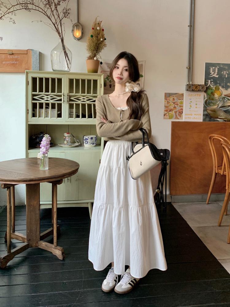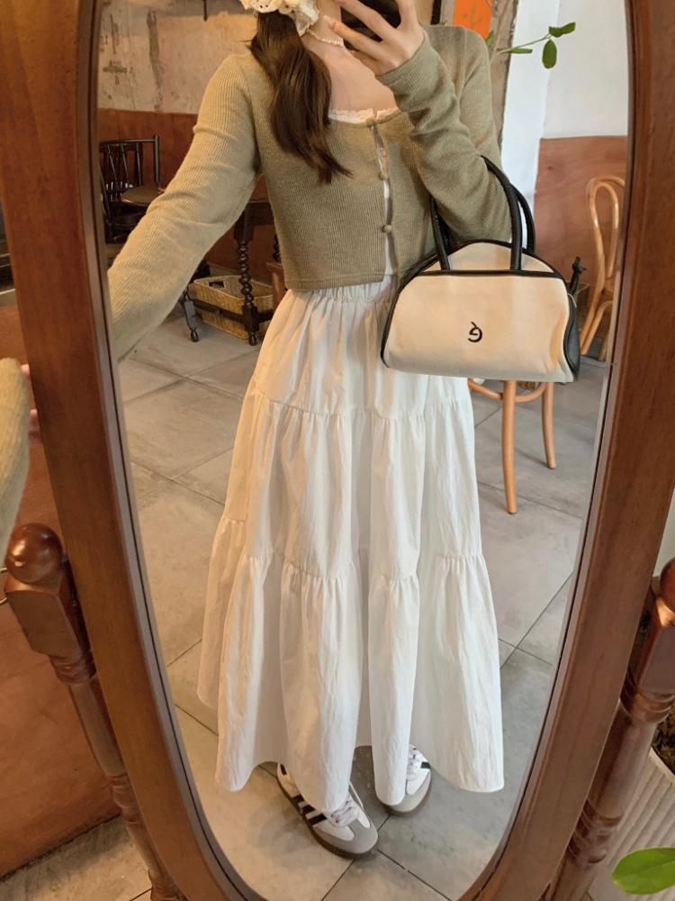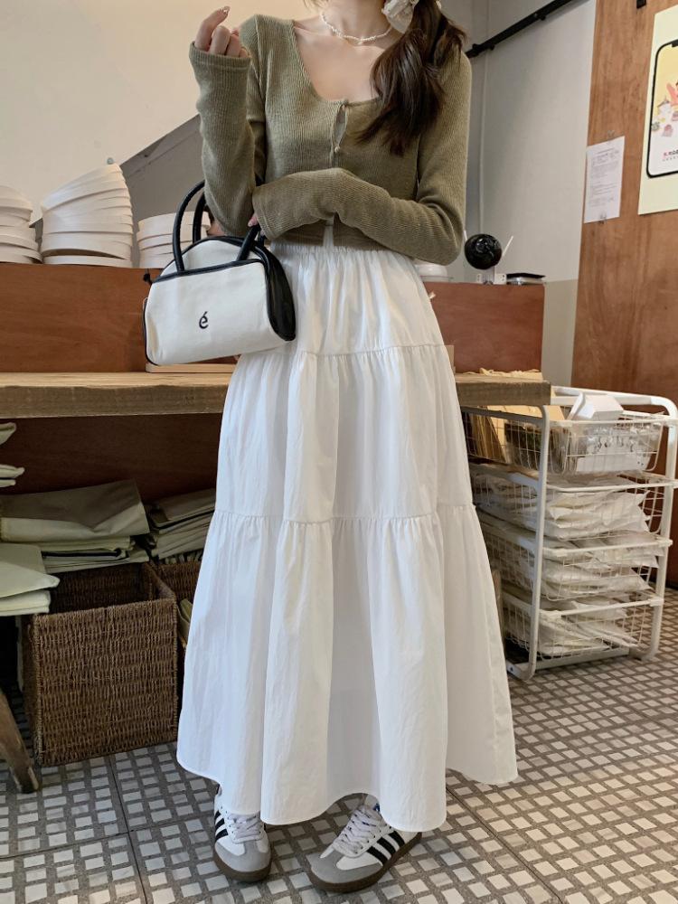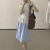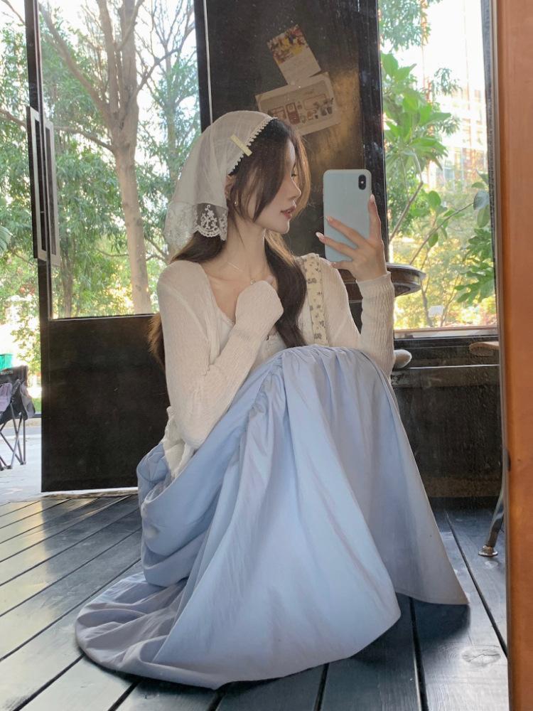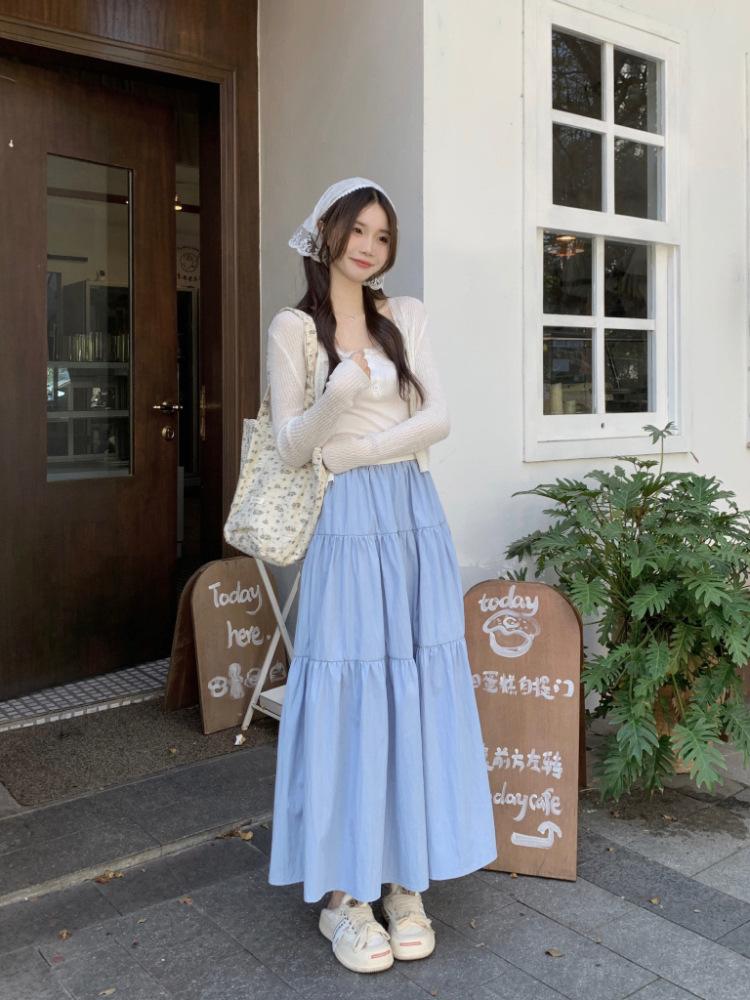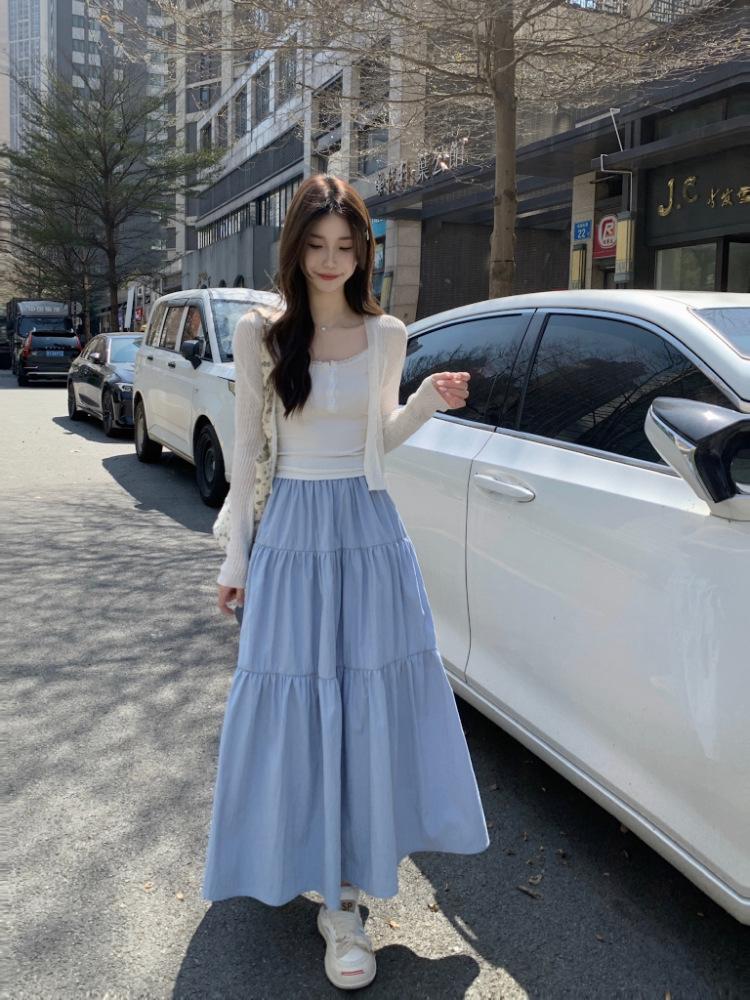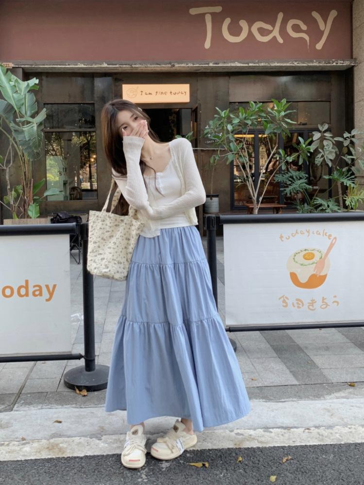 Falda Azul Suave para Mujer, Otoño 2025, Dulce, Rejuvenecedora, Adelgazante, con Capas, Falda Larga Petite A-Line