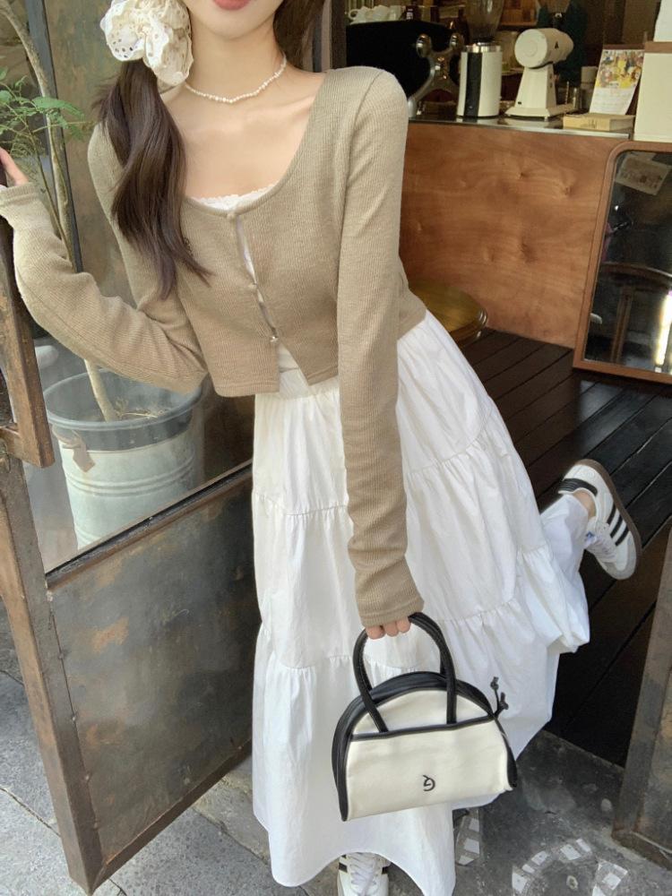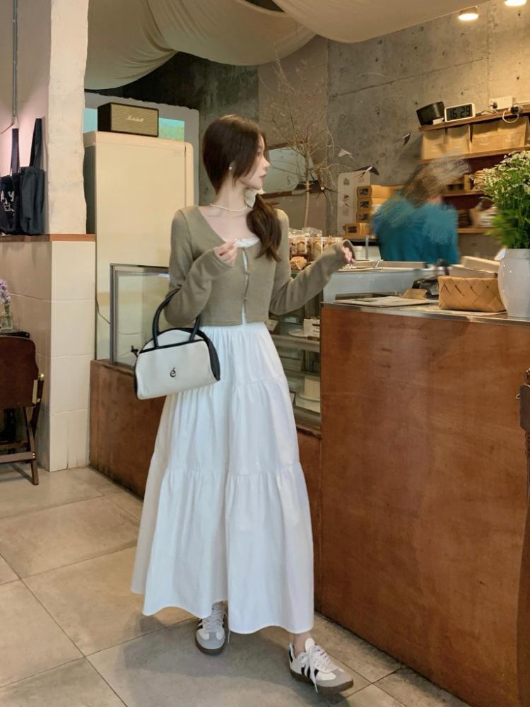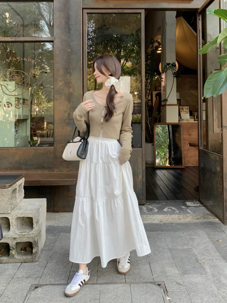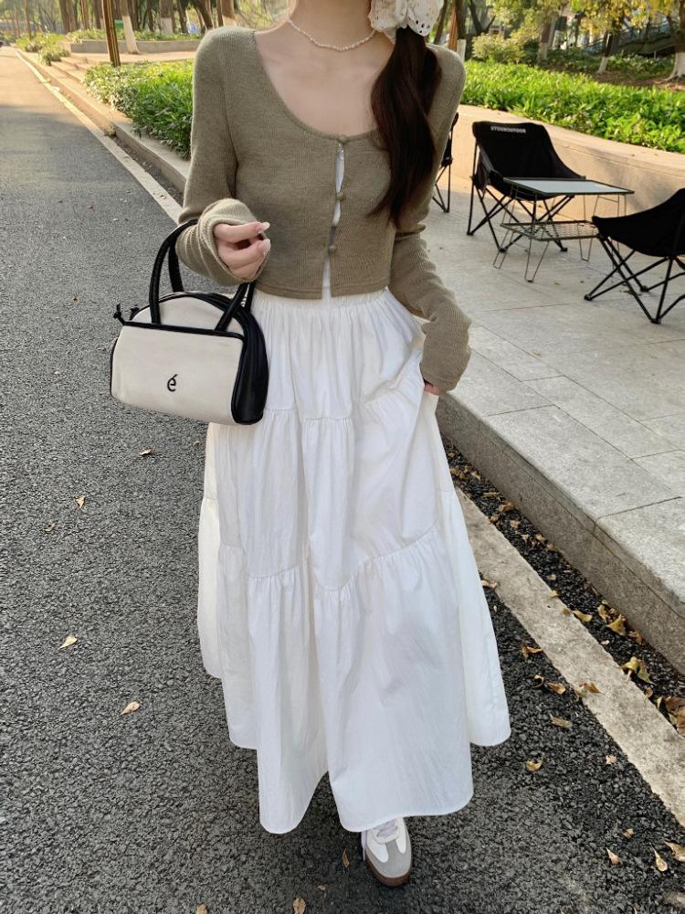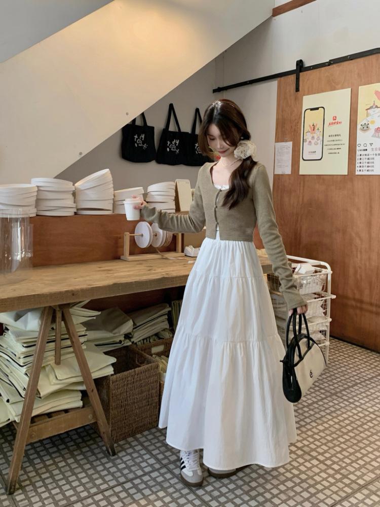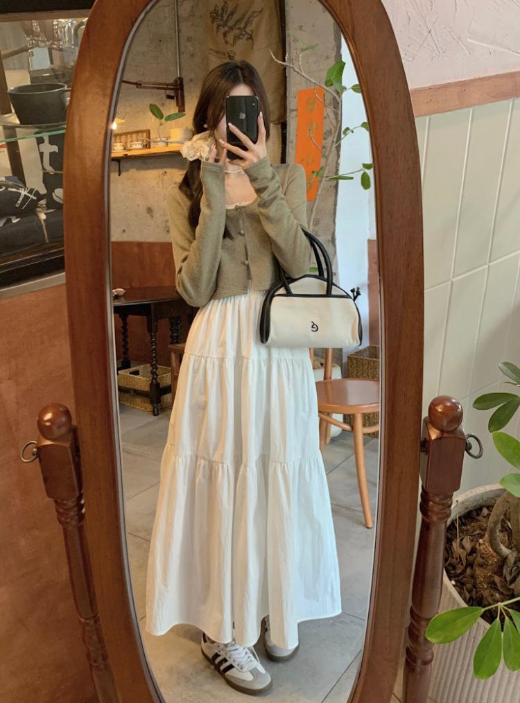 Falda Azul Suave para Mujer, Otoño 2025, Dulce, Rejuvenecedora, Adelgazante, con Capas, Falda Larga Petite A-Line