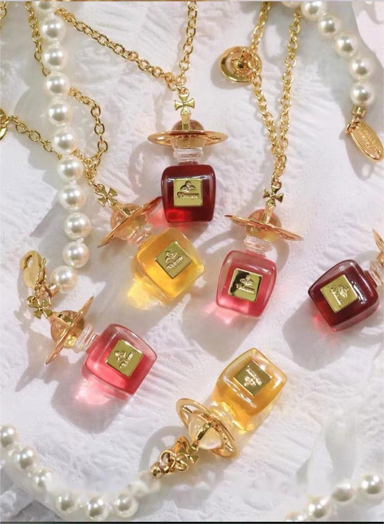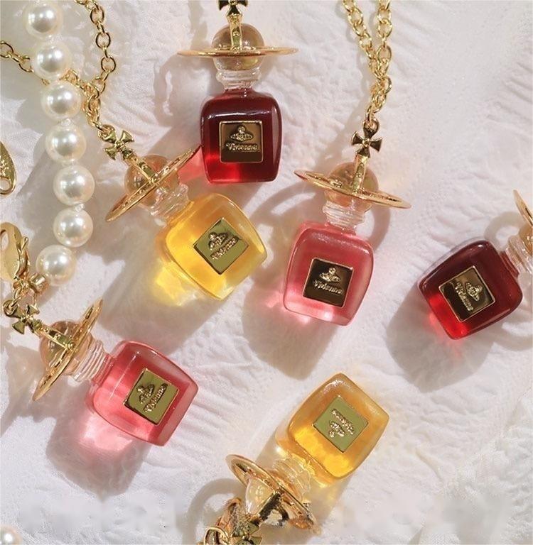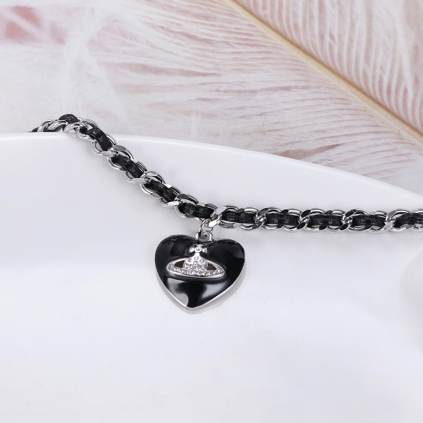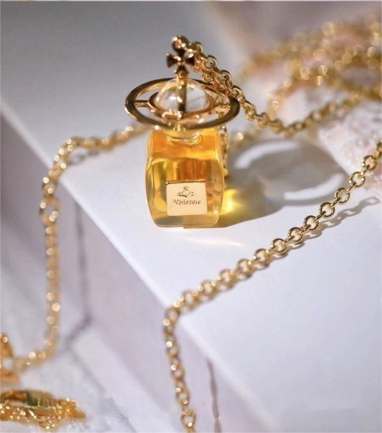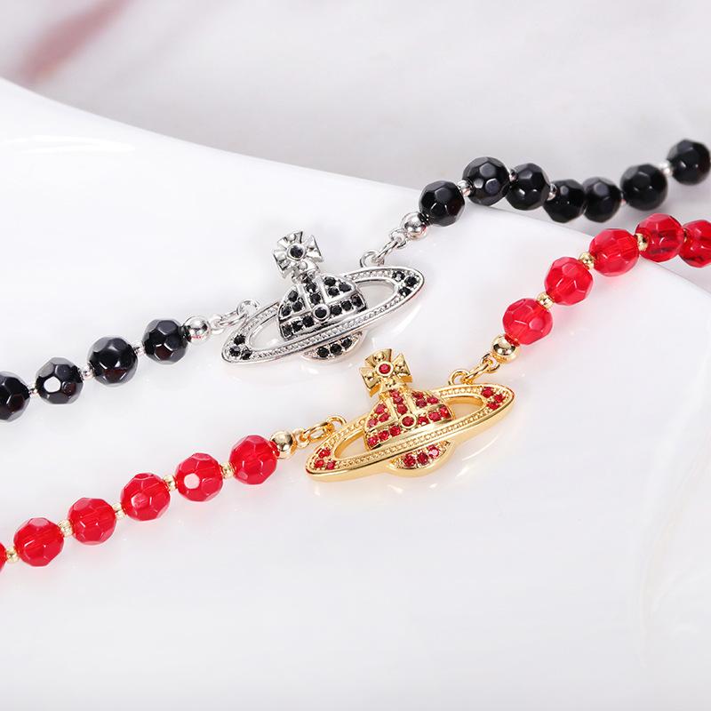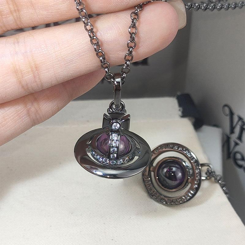 Collar de Orbe del Planeta Saturno 3D de la Emperatriz Viuda de Alta Versión para Mujer Vivienne Lujo Ligero Negro Gun Metal Bola Púrpura Cadena Clavicular