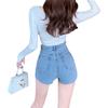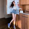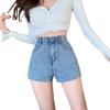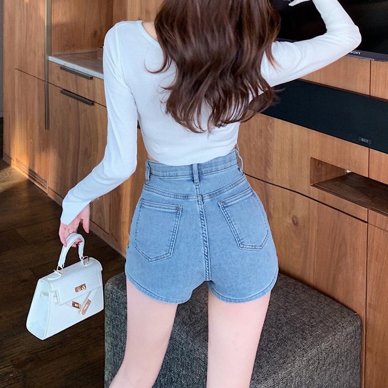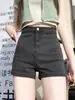 Pantalones cortos de mezclilla para mujer, cintura alta, adelgazantes, rectos, de verano, sexys, estilo americano, corte A, ajustados, tres pantalones negros, pantalones cortos