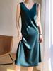 Vestido de primavera y verano para mujer con cuello en V, chaleco, falda con tirantes, estilo Hepburn, traje de acetato de seda, falda básica, falda con tirantes