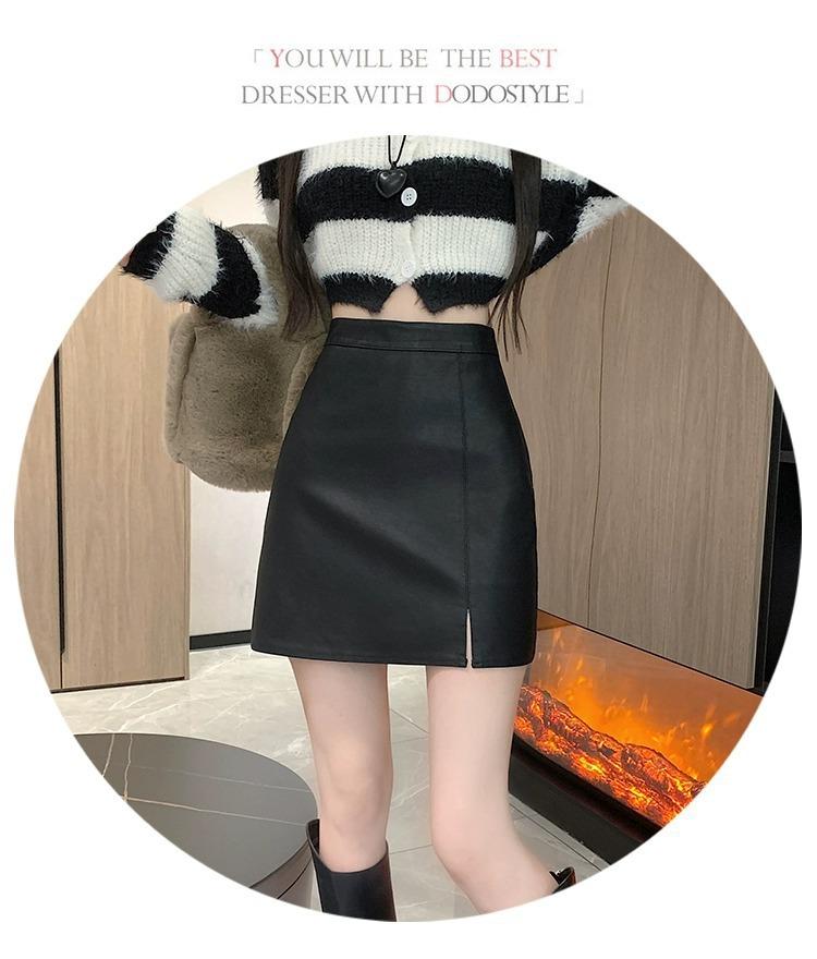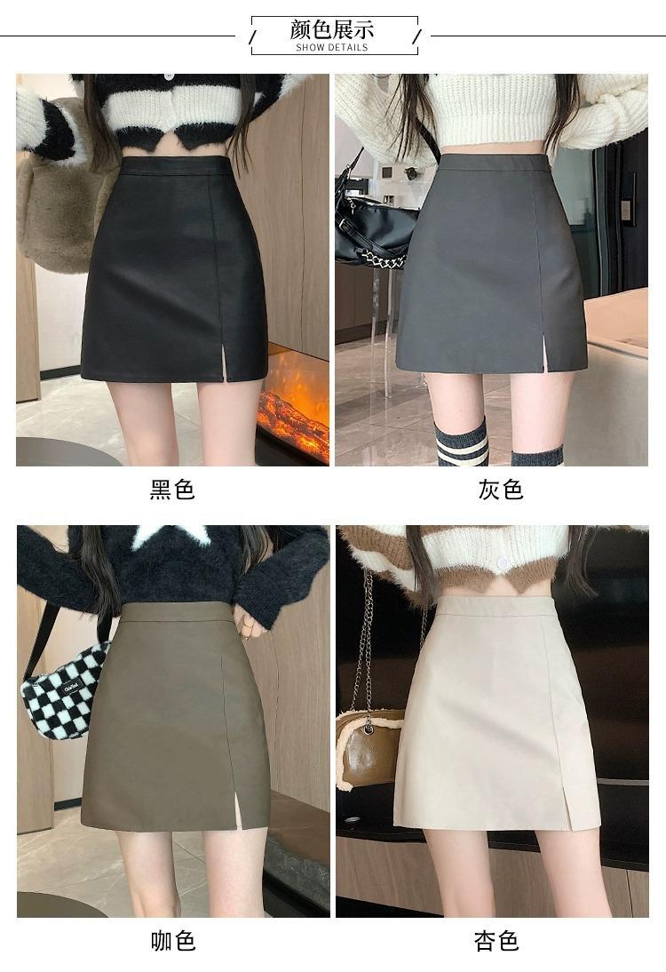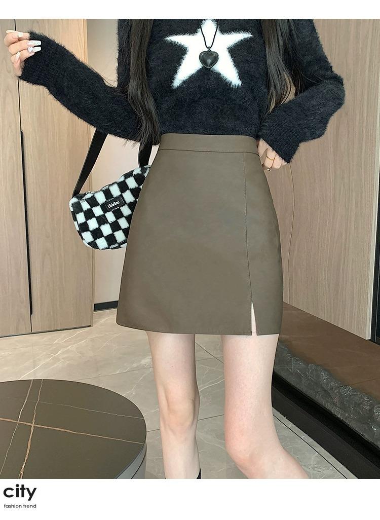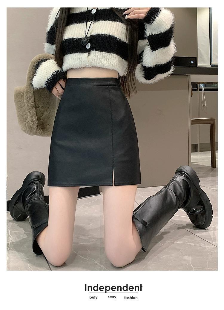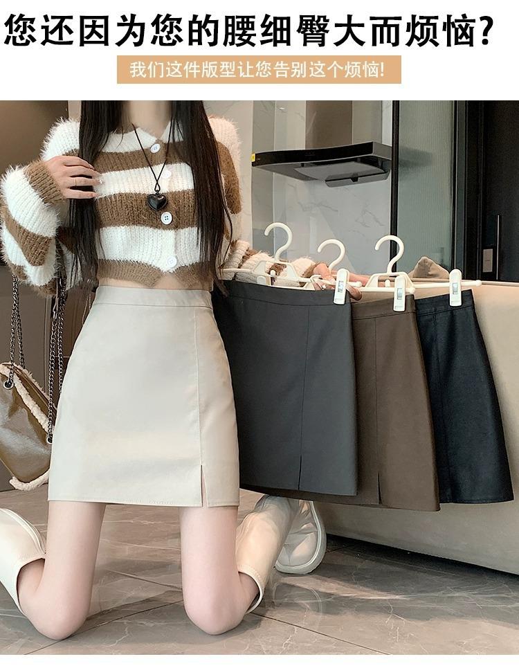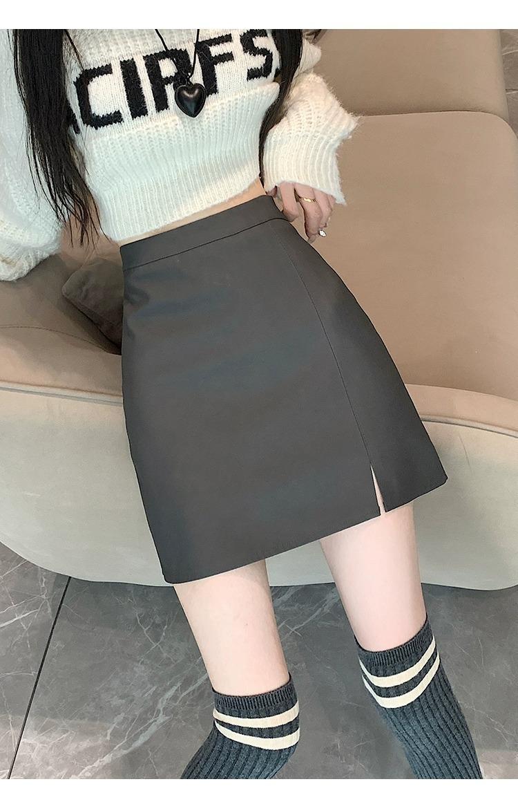 Falda de PU coreana dividida para mujer Otoño e Invierno 2024 Invierno Nueva Falda de Cadera de Cintura Alta Falda Slim Línea A