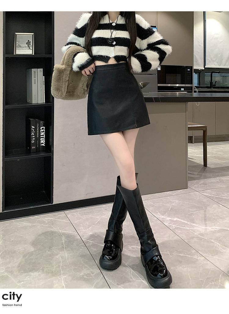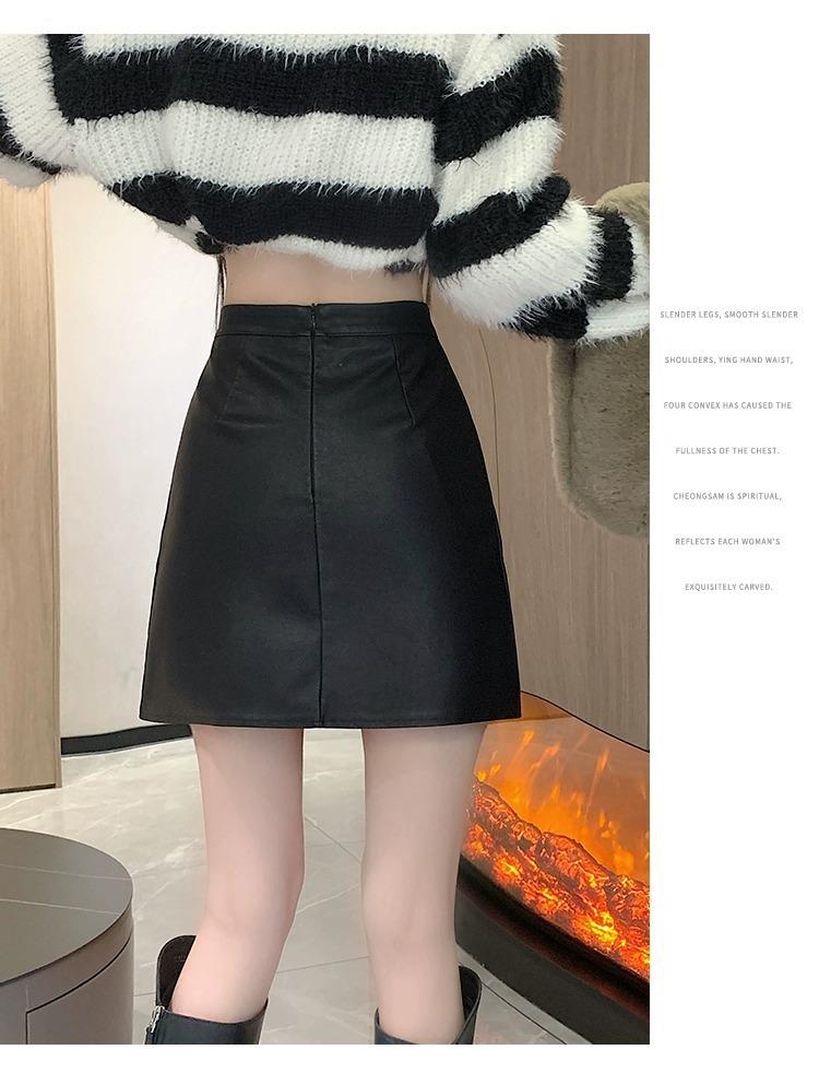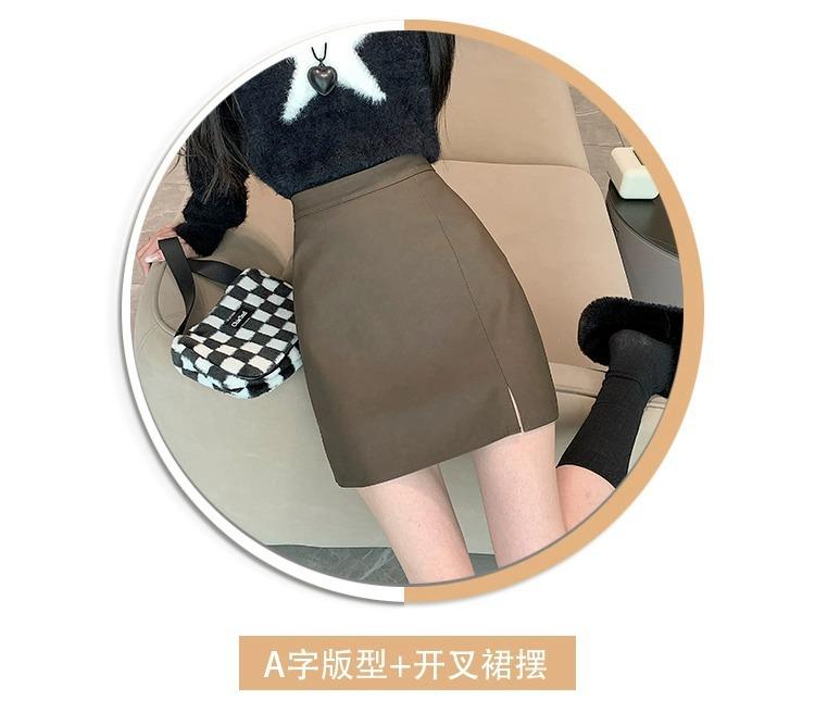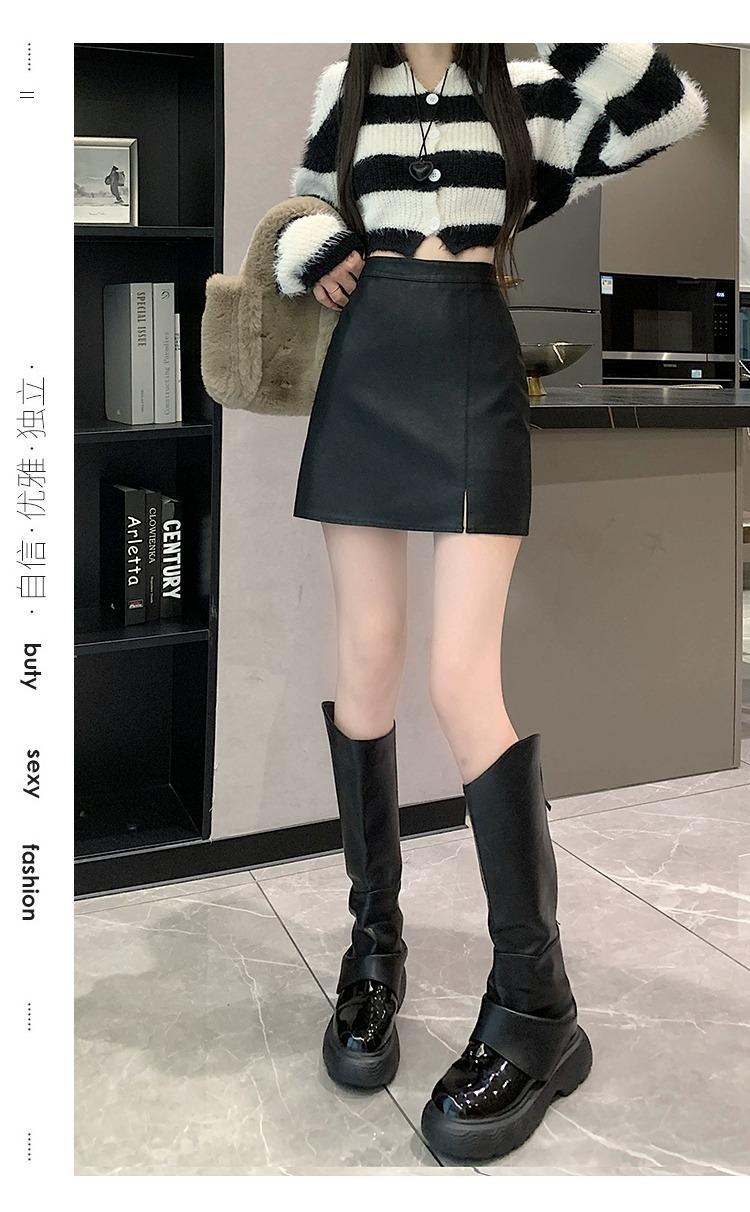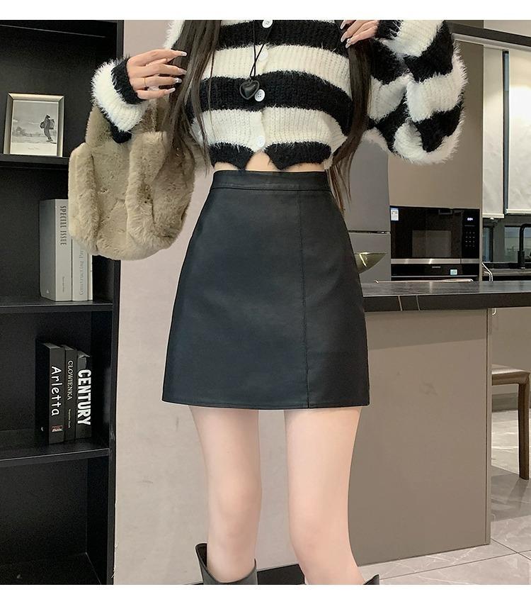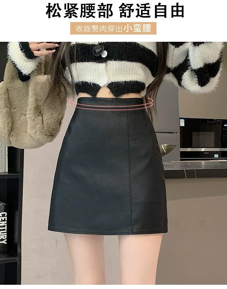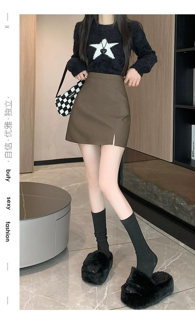 Falda de PU coreana dividida para mujer Otoño e Invierno 2024 Invierno Nueva Falda de Cadera de Cintura Alta Falda Slim Línea A