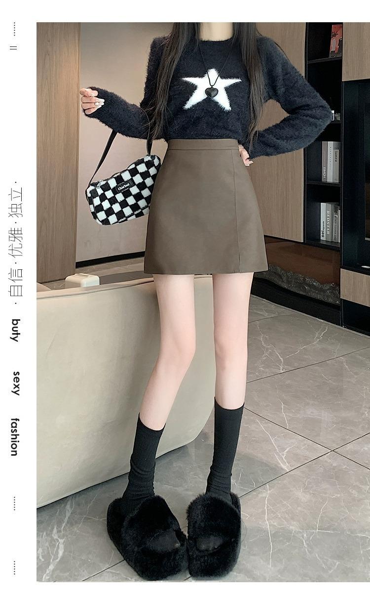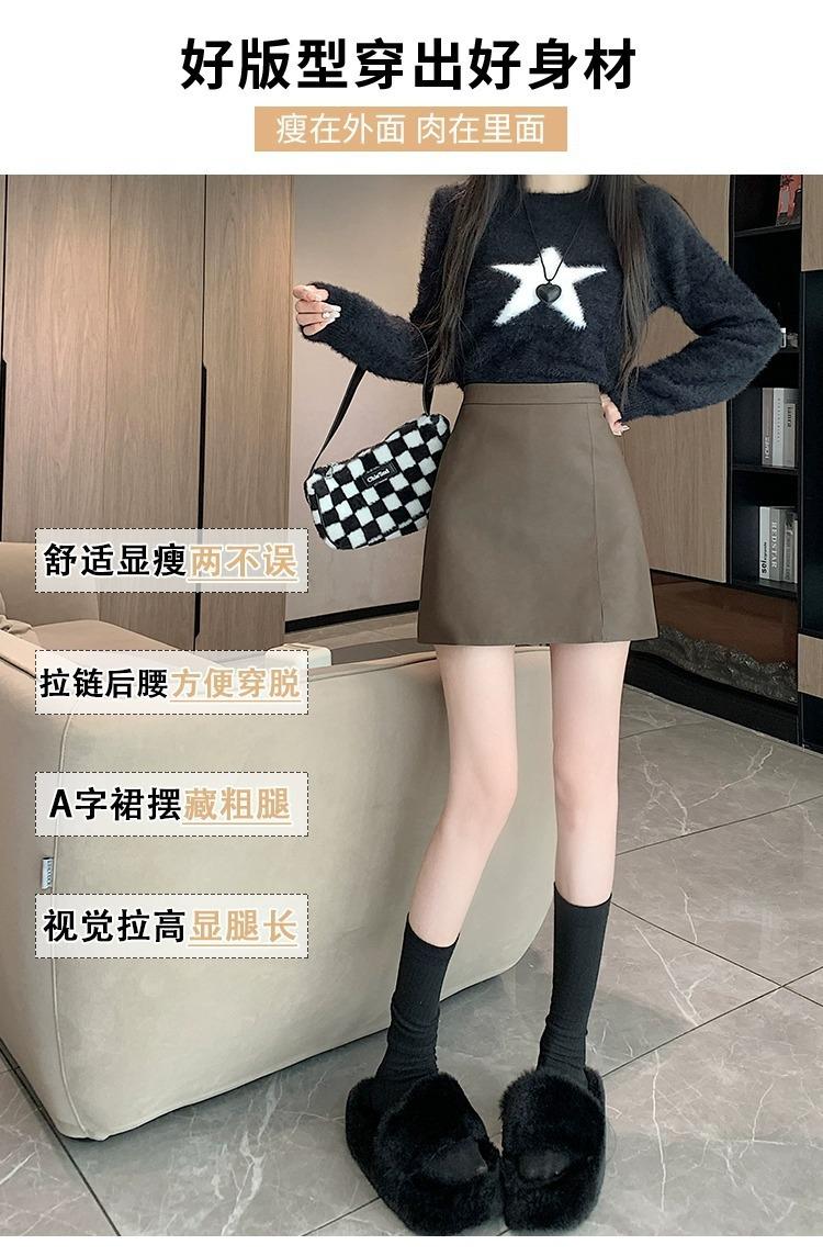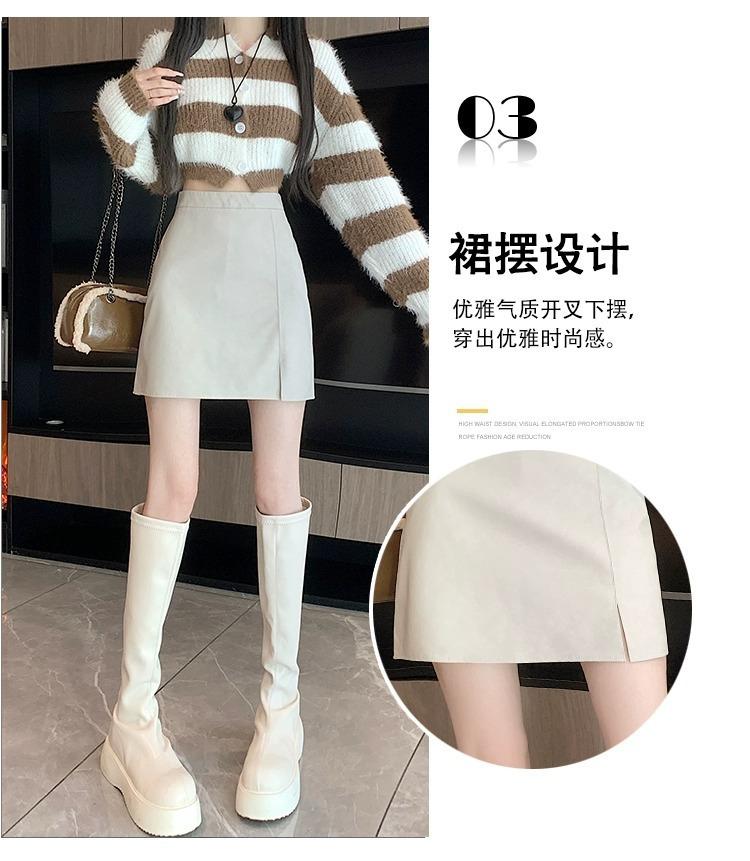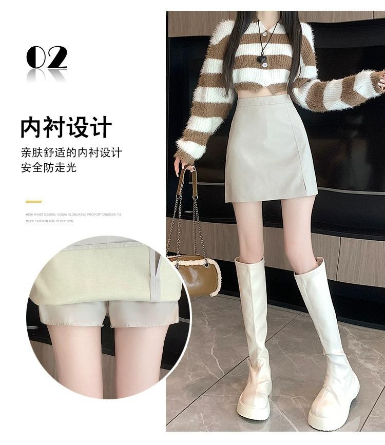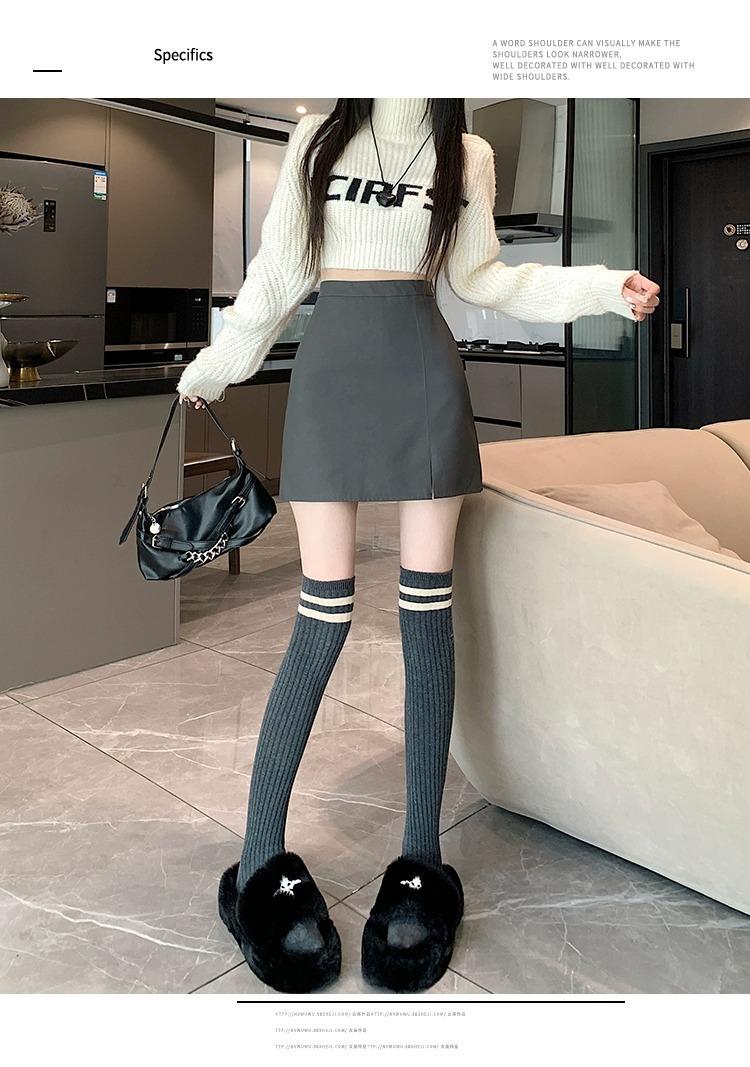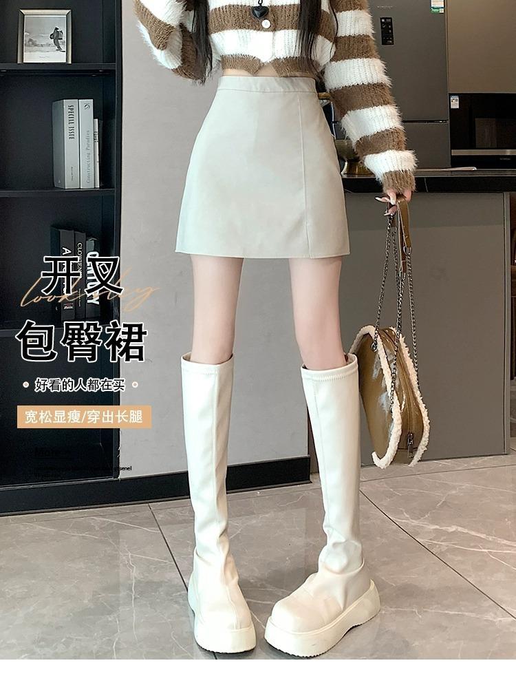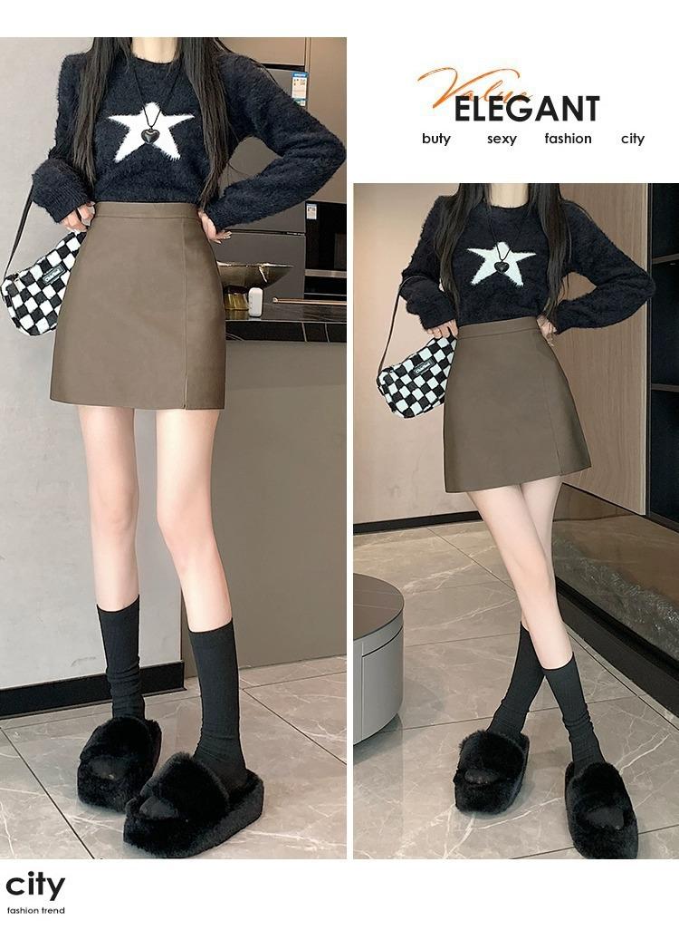 Falda de PU coreana dividida para mujer Otoño e Invierno 2024 Invierno Nueva Falda de Cadera de Cintura Alta Falda Slim Línea A