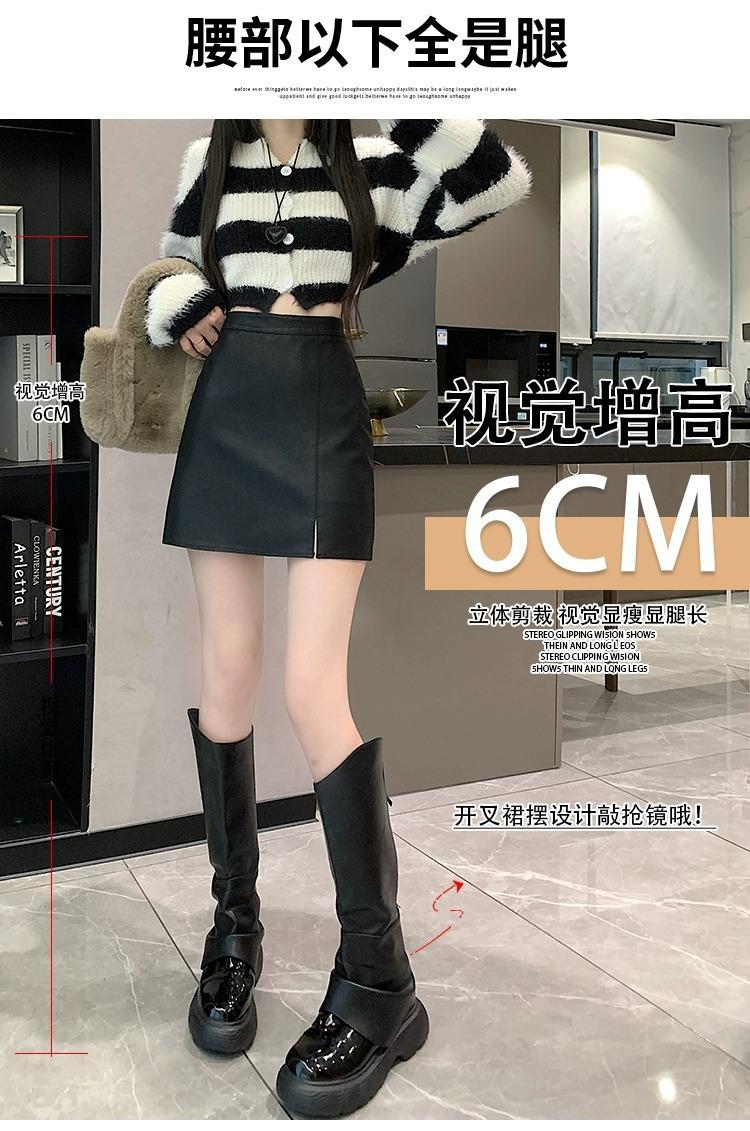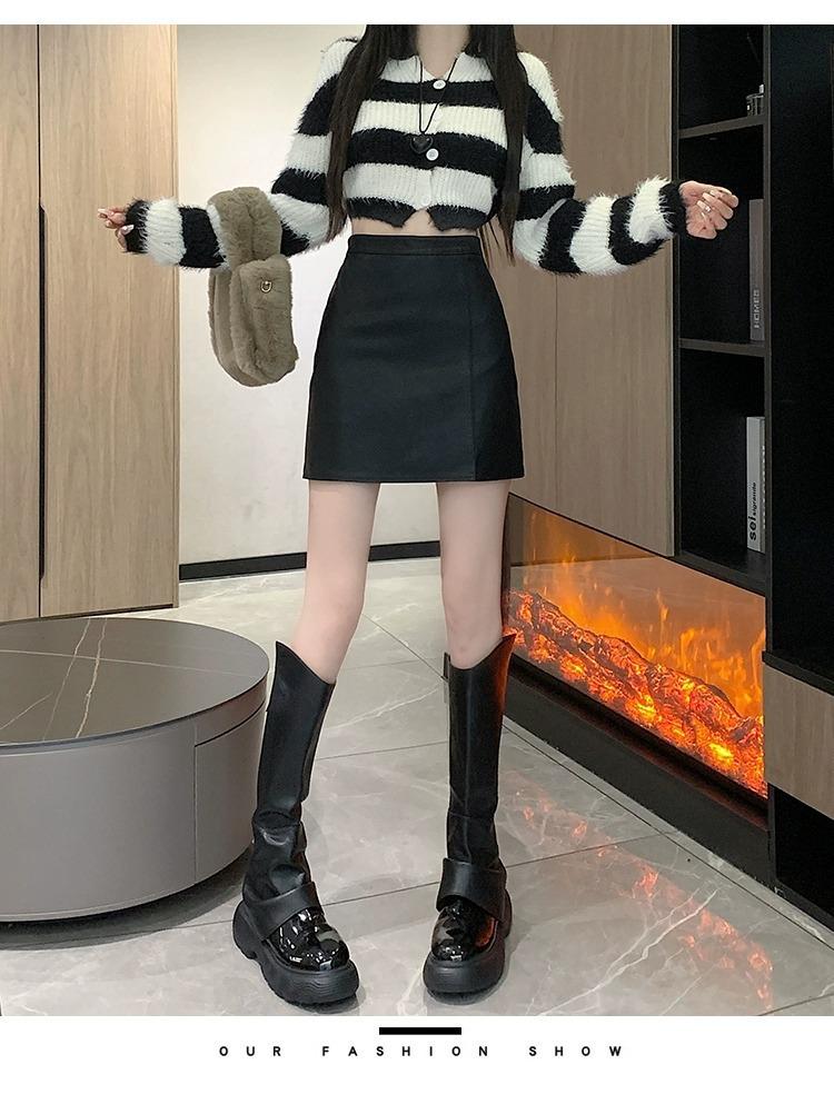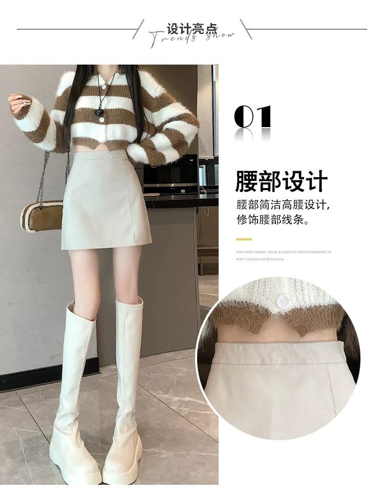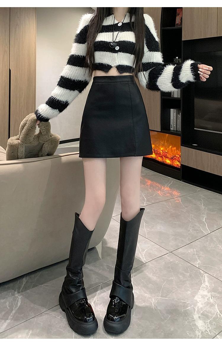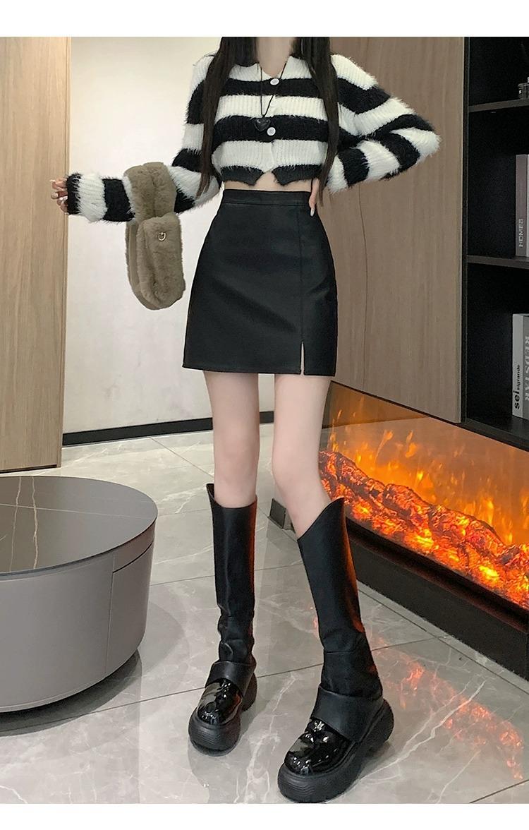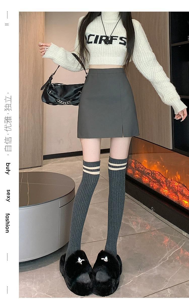 Falda de PU coreana dividida para mujer Otoño e Invierno 2024 Invierno Nueva Falda de Cadera de Cintura Alta Falda Slim Línea A