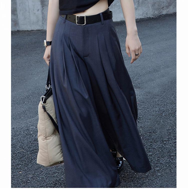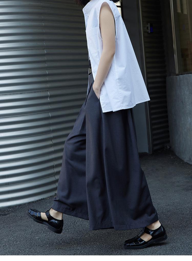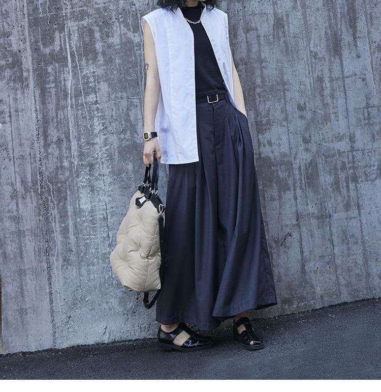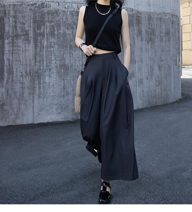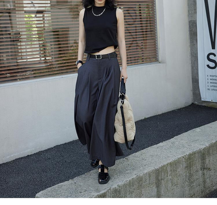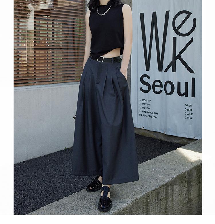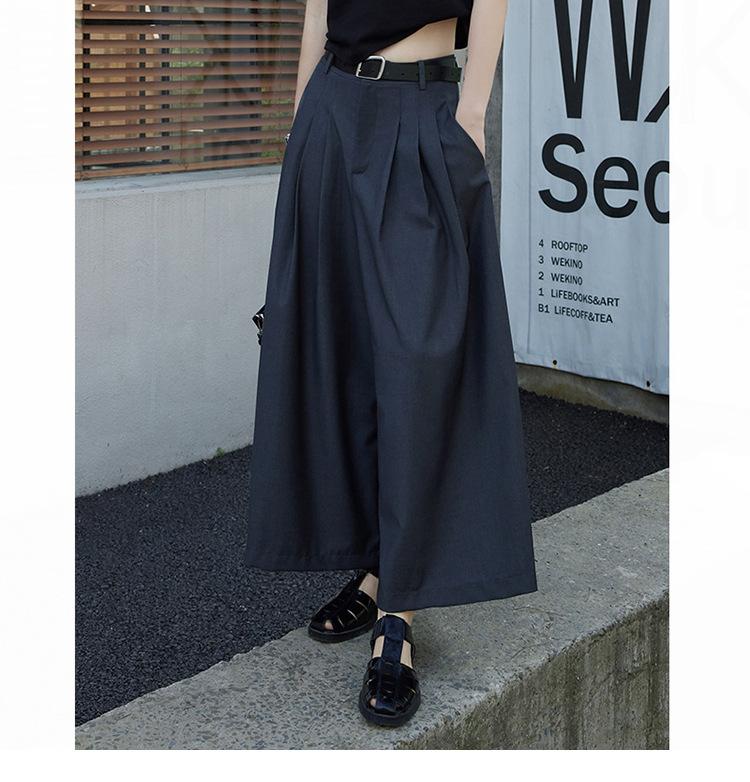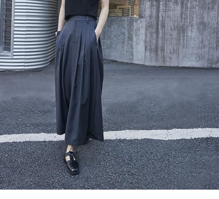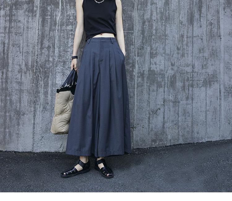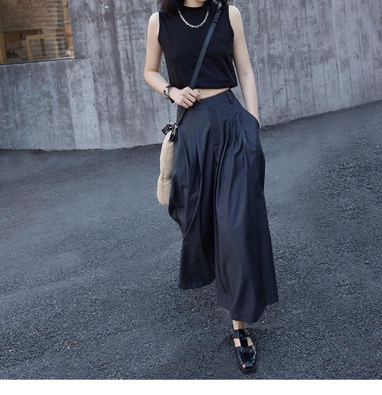 Pantalones anchos grises de pierna ancha para mujer, de verano, finos, de cintura alta, drapeados, sueltos, casuales, culottes, pantalones cortos de moda