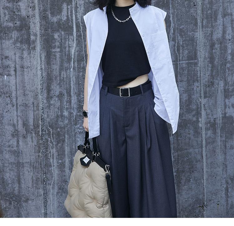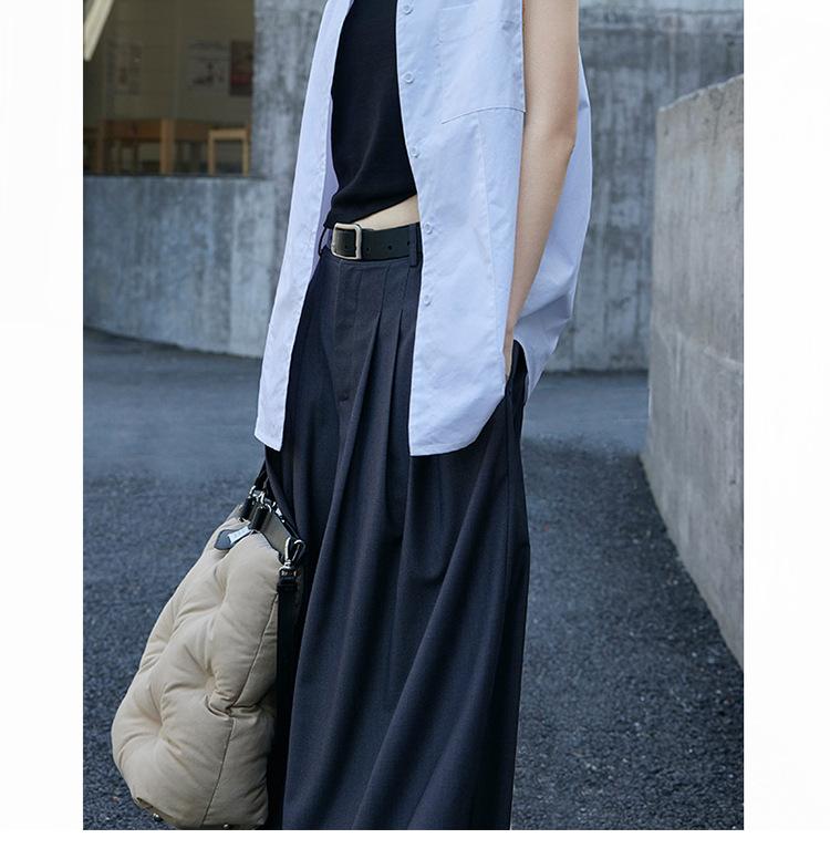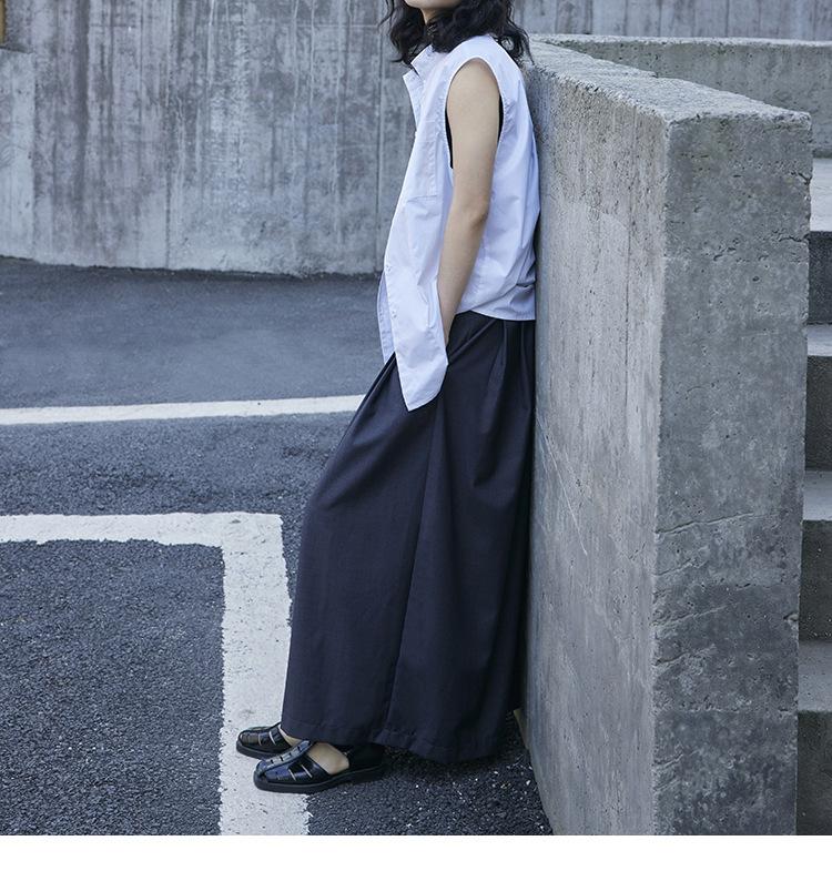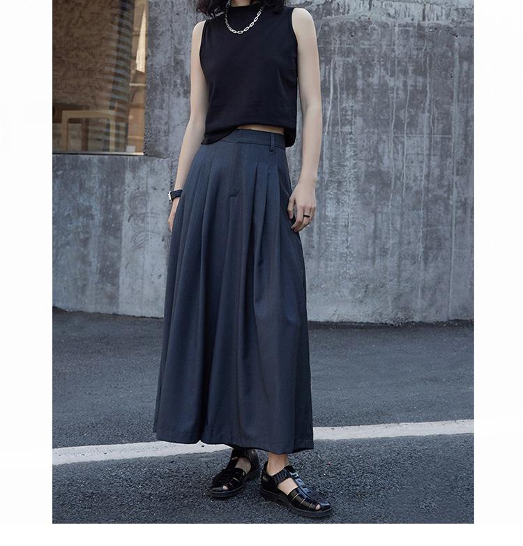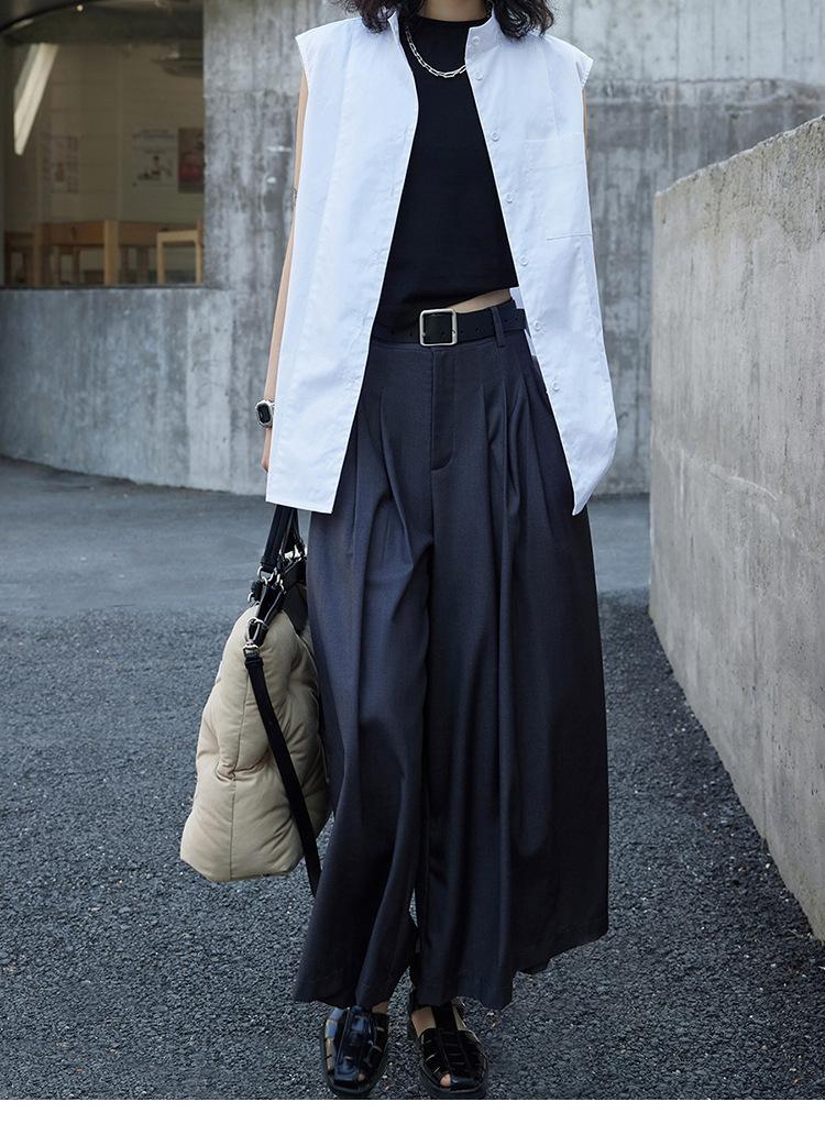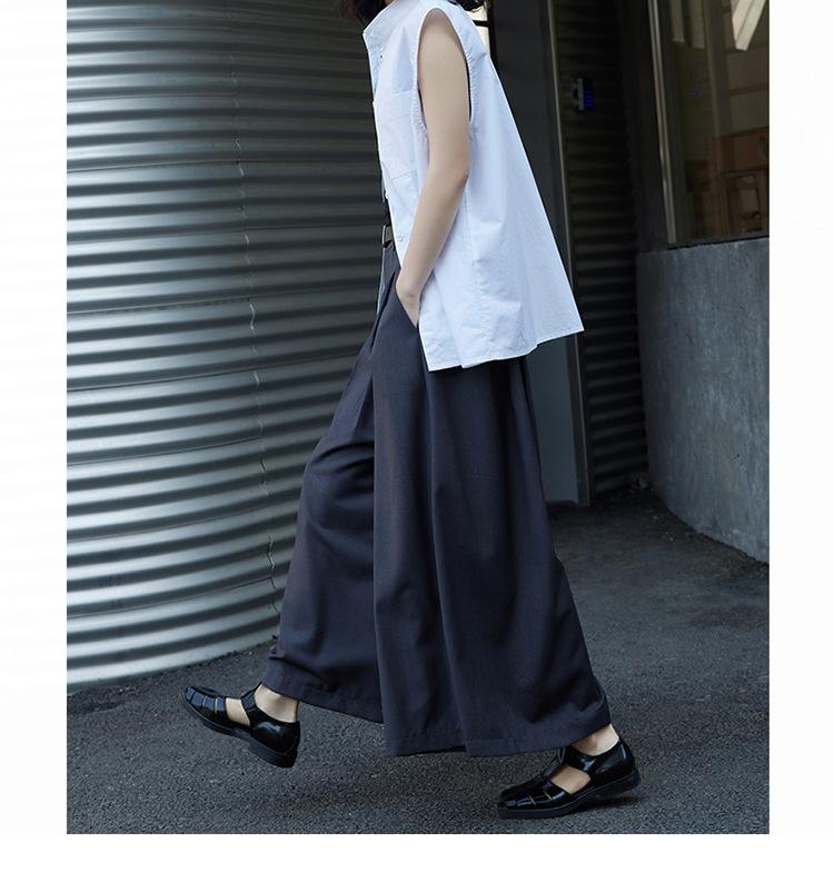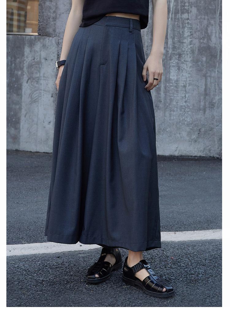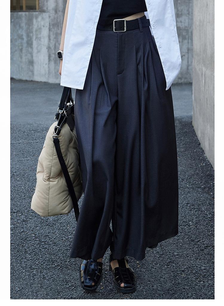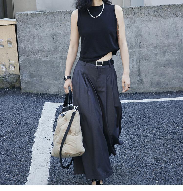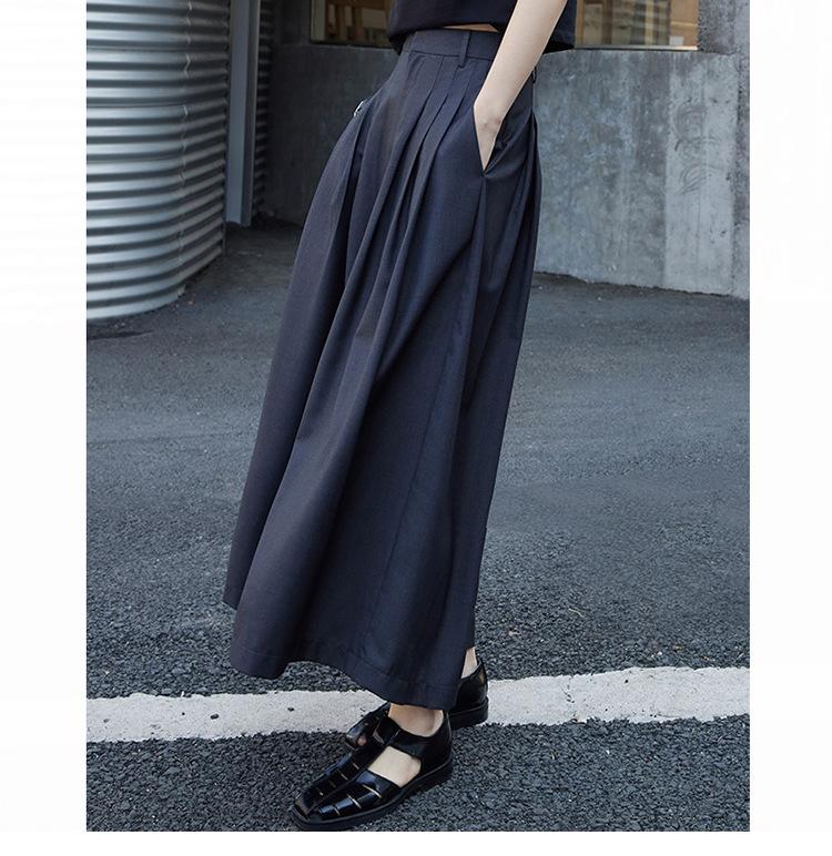 Pantalones anchos grises de pierna ancha para mujer, de verano, finos, de cintura alta, drapeados, sueltos, casuales, culottes, pantalones cortos de moda