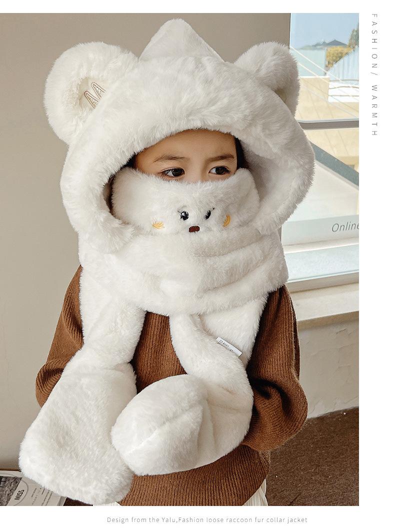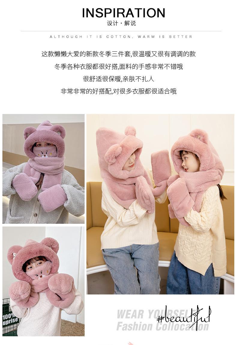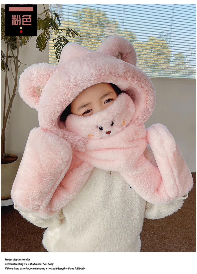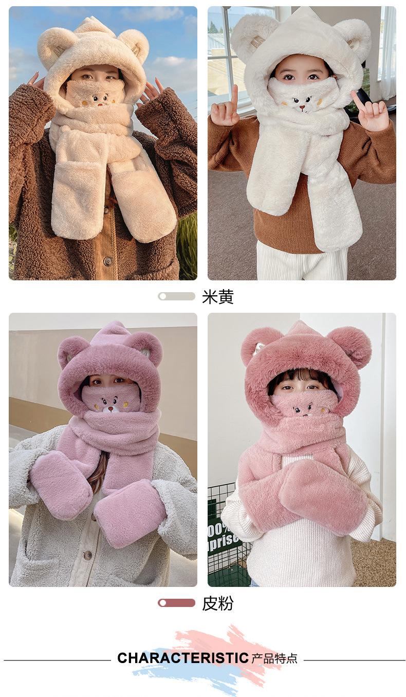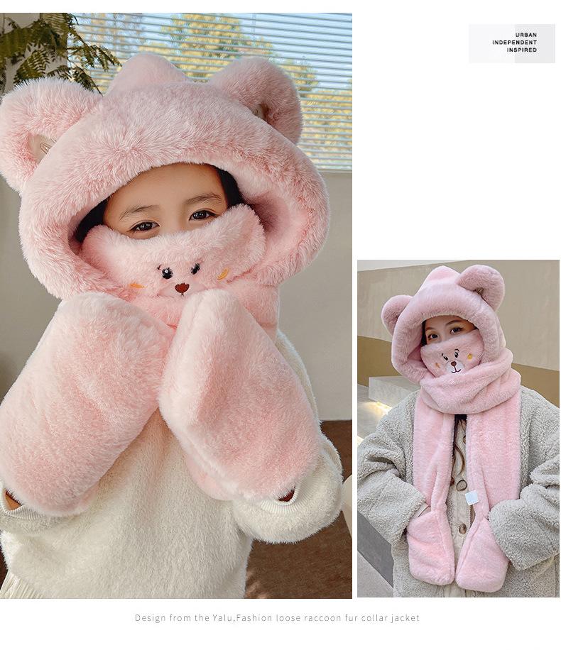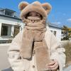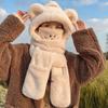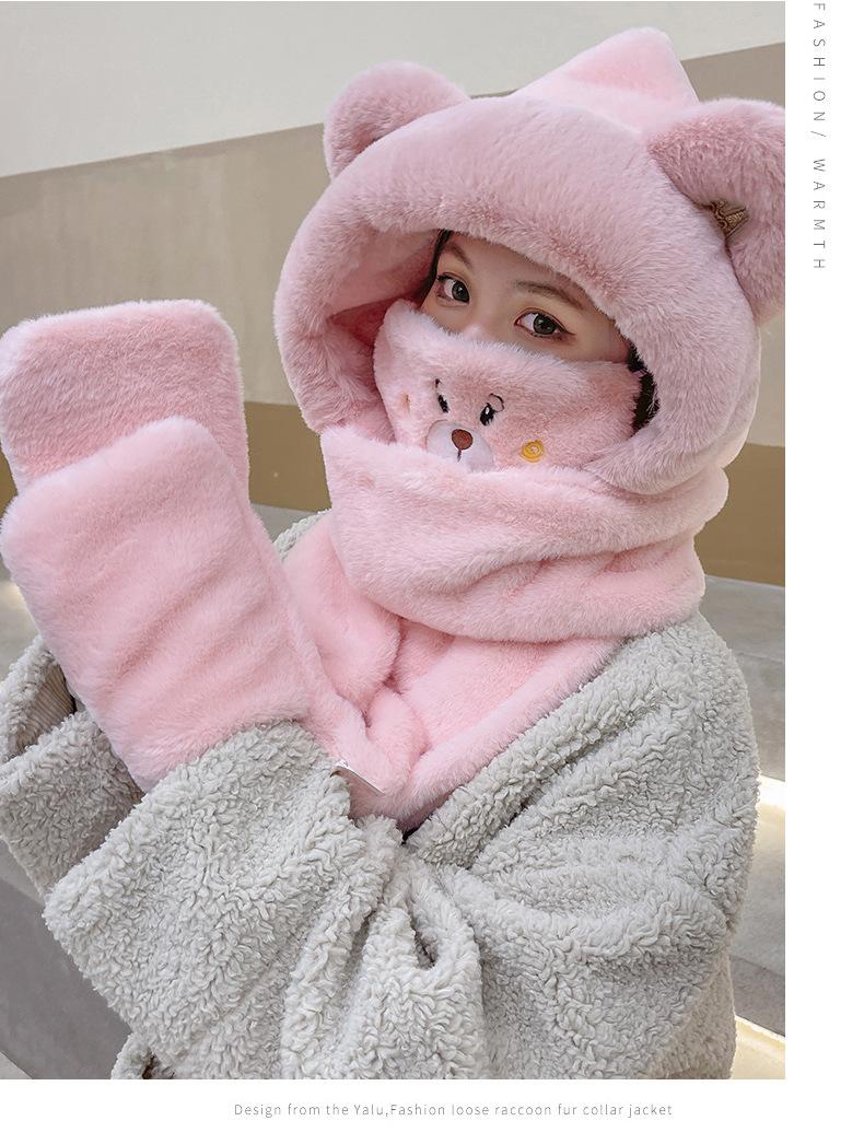 Gorro de oso estilo coreano, bonito gorro para mujer, bufanda para todo tipo de otoño e invierno, guantes cálidos integrados, bufanda, traje de tres piezas de moda