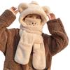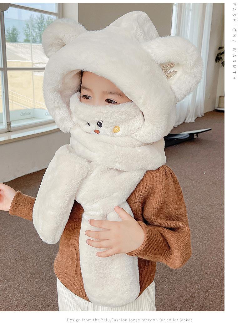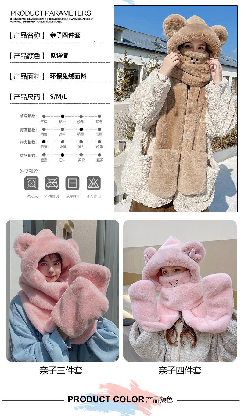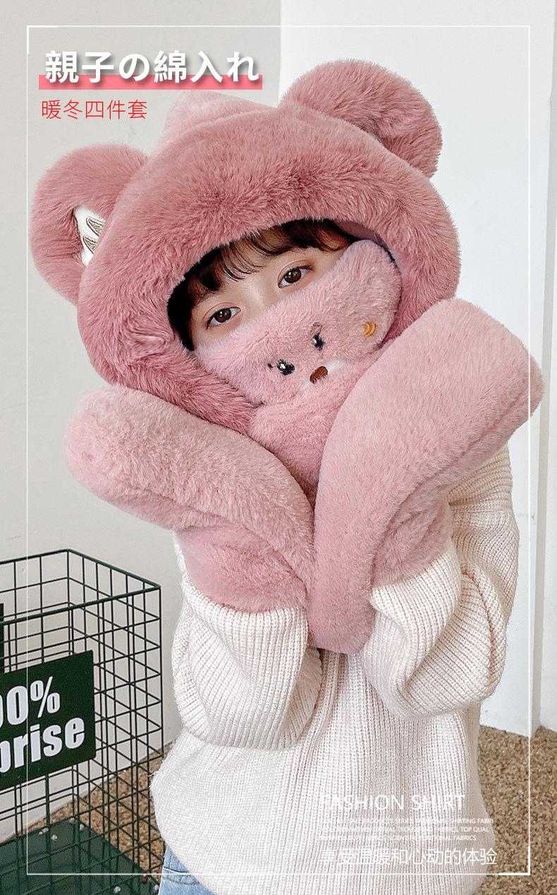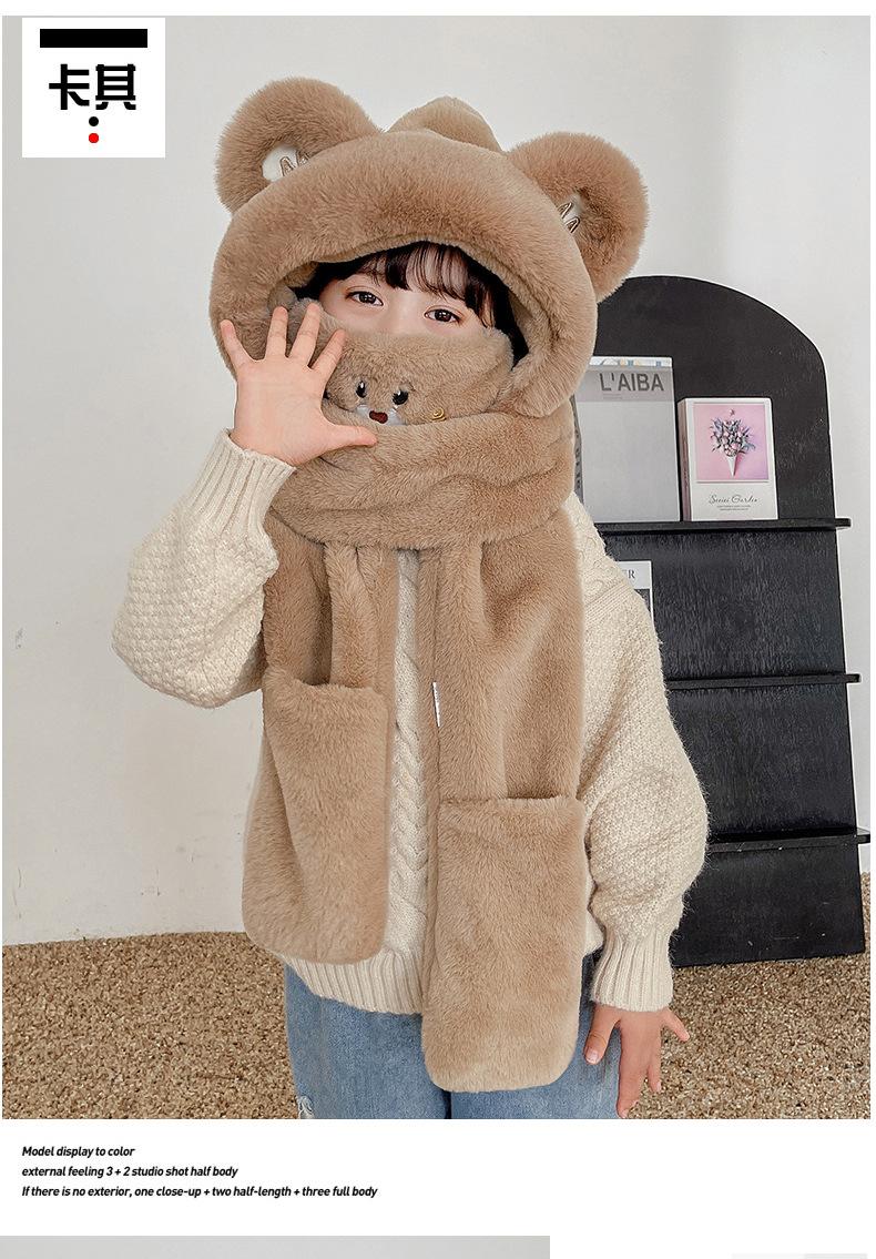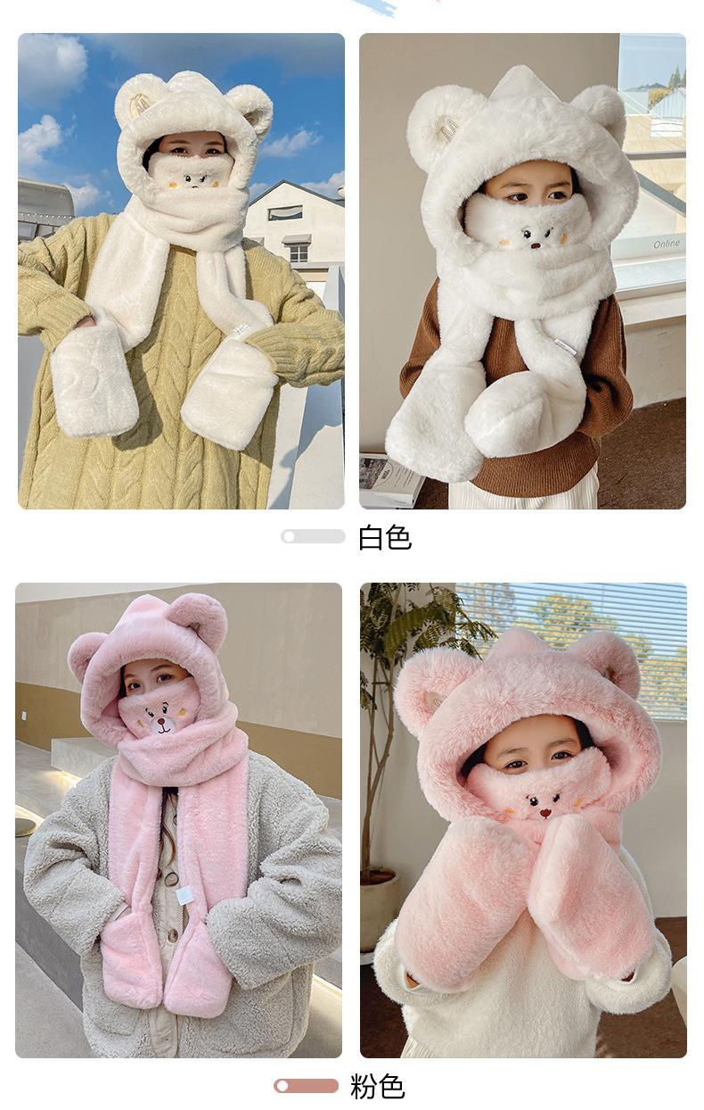 Gorro de oso estilo coreano, bonito gorro para mujer, bufanda para todo tipo de otoño e invierno, guantes cálidos integrados, bufanda, traje de tres piezas de moda