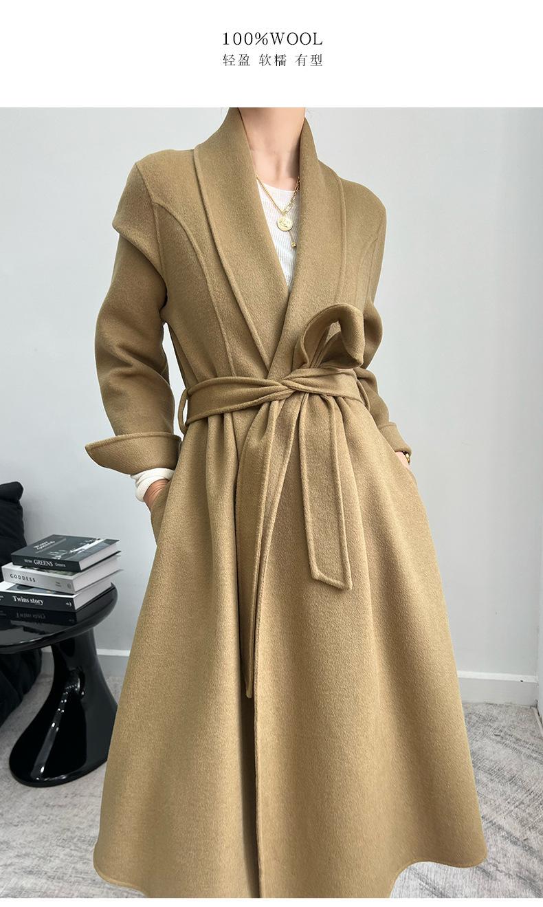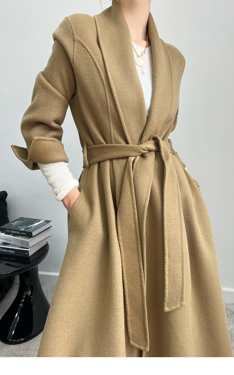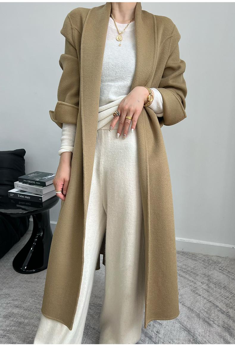 24 nuevos abrigos de cachemira de tweed de doble cara para mujer, forrados, de moda, con un solo cuello, abrigo de lana grueso para otoño e invierno.