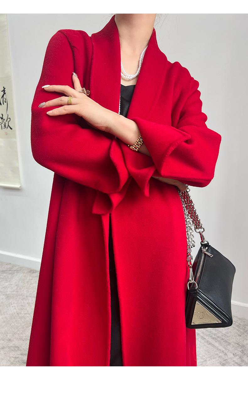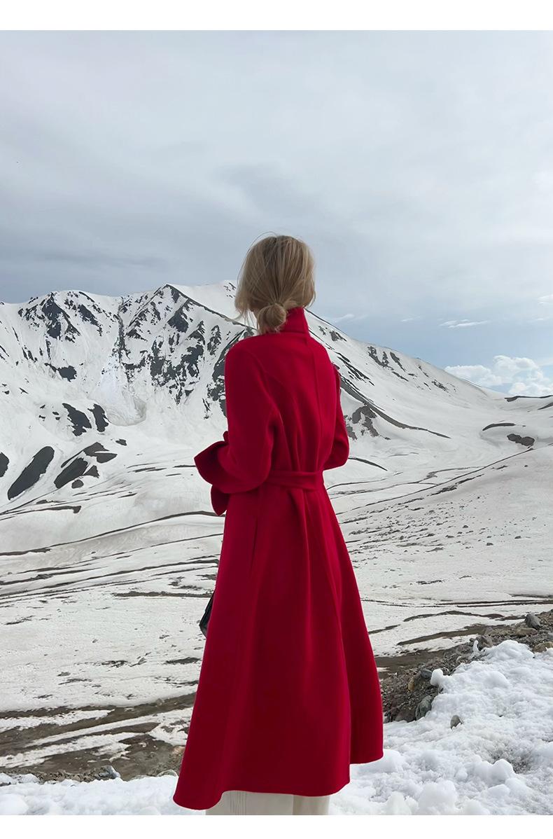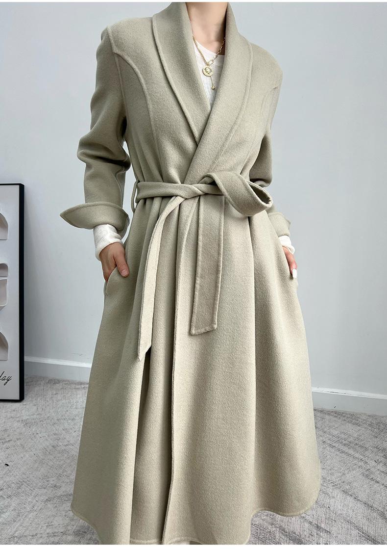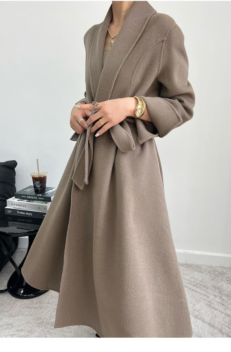 24 nuevos abrigos de cachemira de tweed de doble cara para mujer, forrados, de moda, con un solo cuello, abrigo de lana grueso para otoño e invierno.