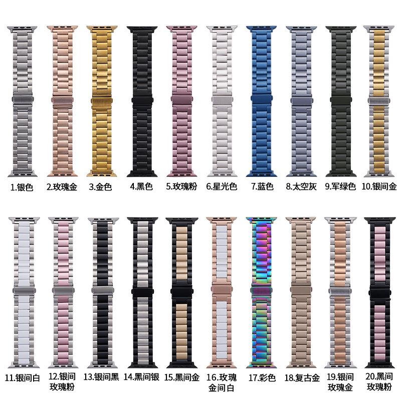 Correa de acero plegable de tres cuentas para Apple Watch, iWatch 10, Samsung y Huawei.