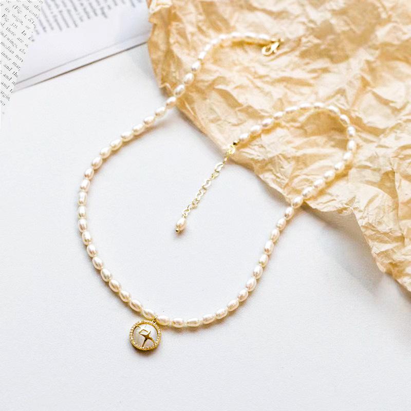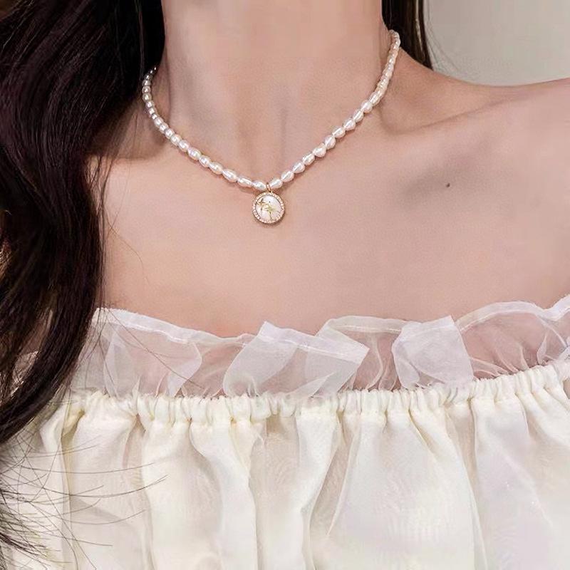 Collar de perlas de arroz de agua dulce naturales, moderno, elegante y versátil, colgante de perlas, lujoso y ligero, collar de clavícula con nicho para mujer.