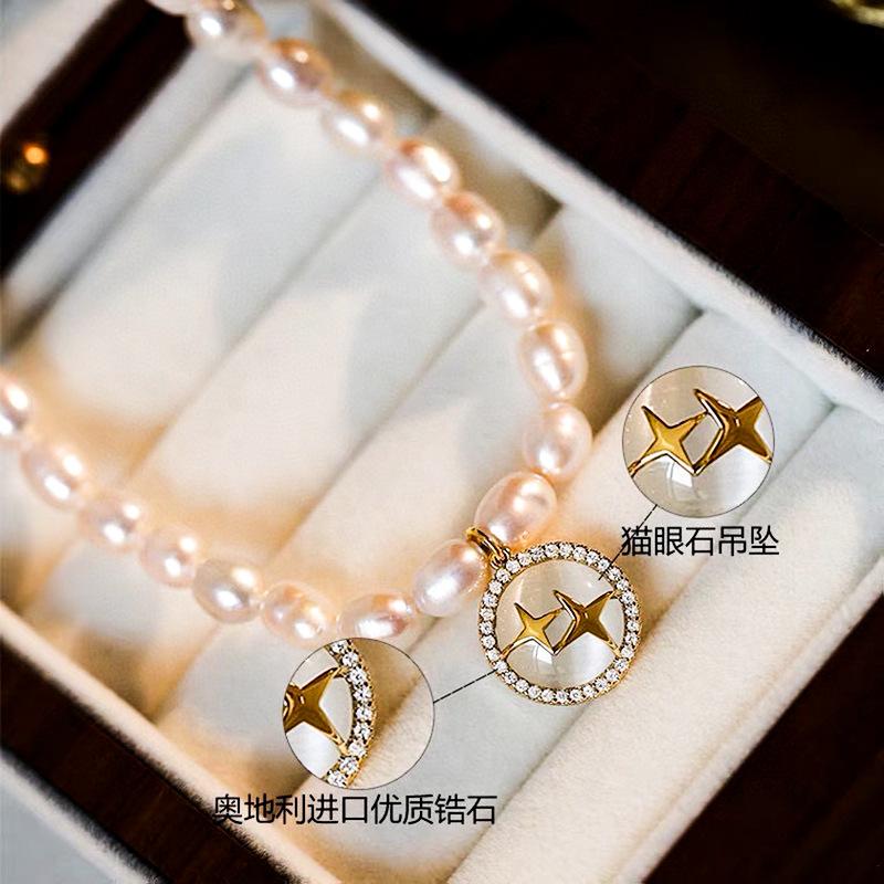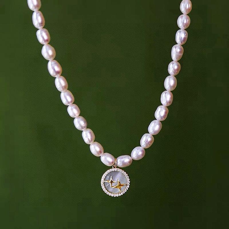Collar de perlas de agua dulce de alta gama, de plata esterlina s925, con luz natural, lujoso nicho, cadena de clavícula con forma de estrella.