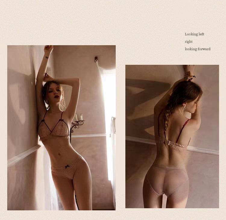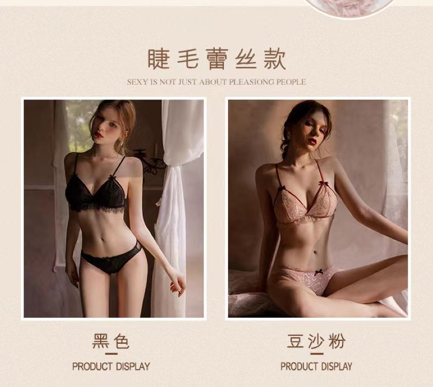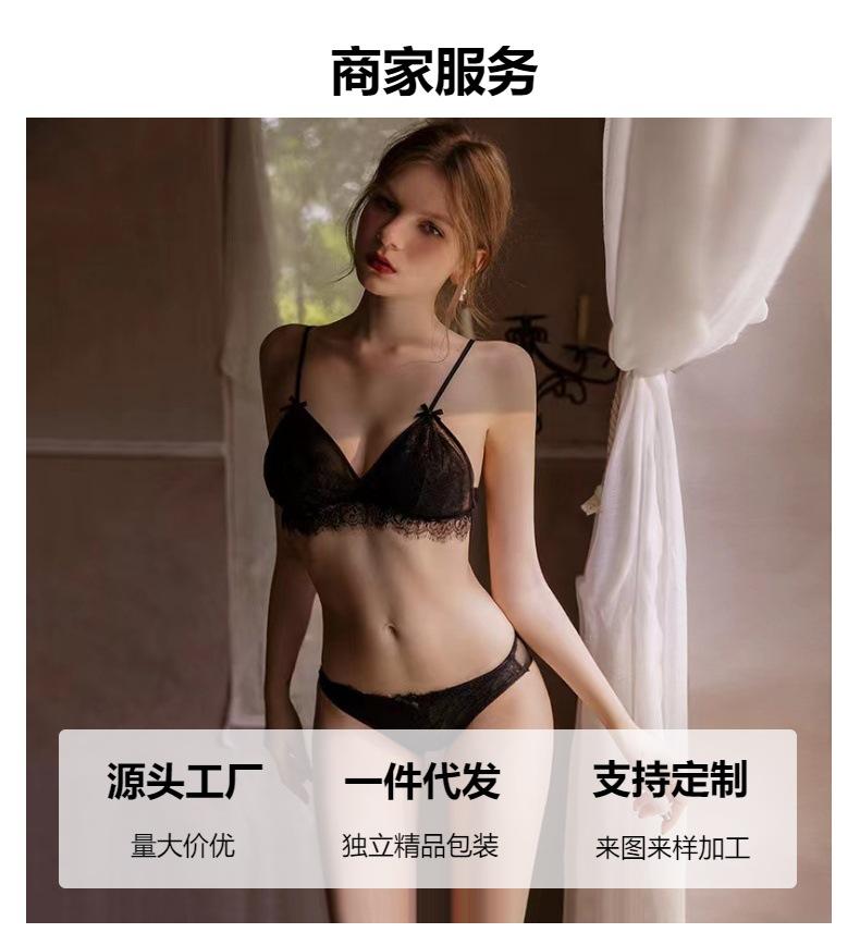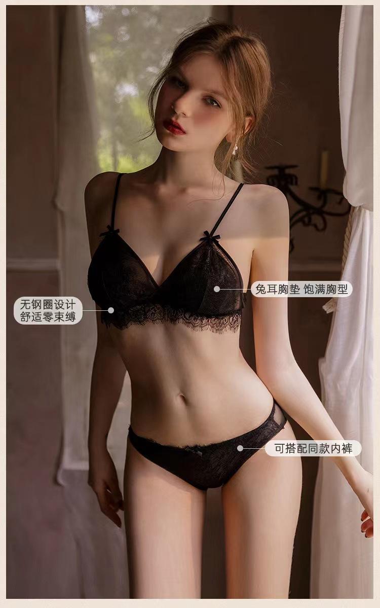 Ropa interior sexy francesa para mujer, de verano, fina, de verano, con pecho pequeño, push up, de encaje francés, sujetador negro inalámbrico.