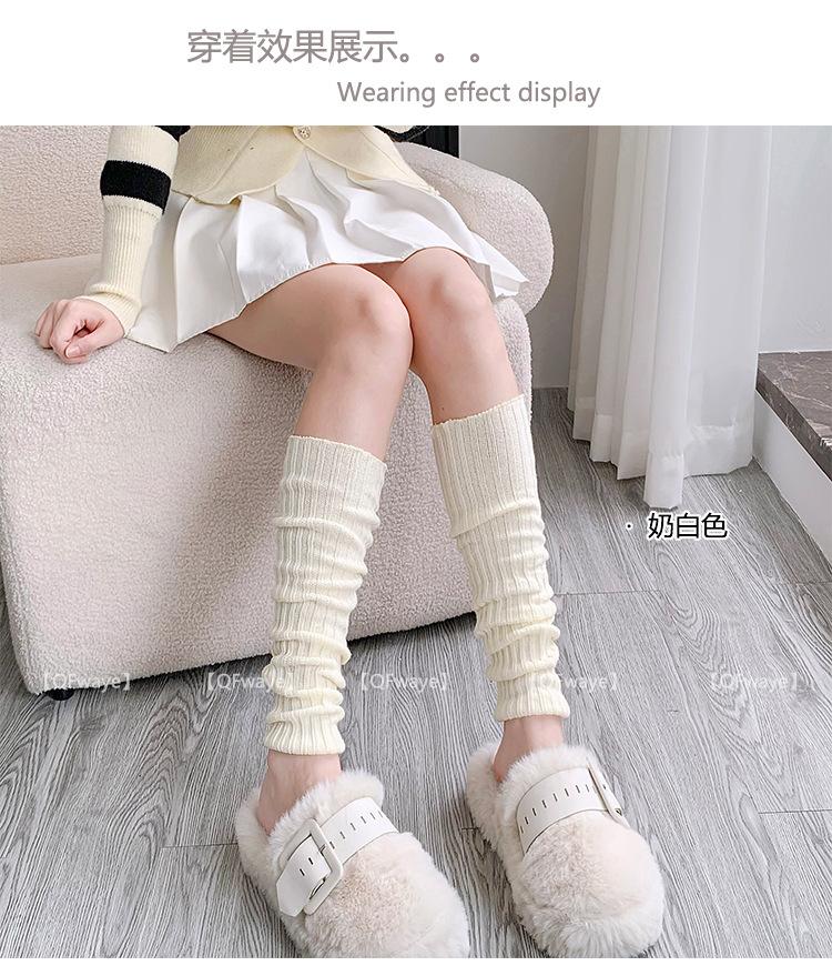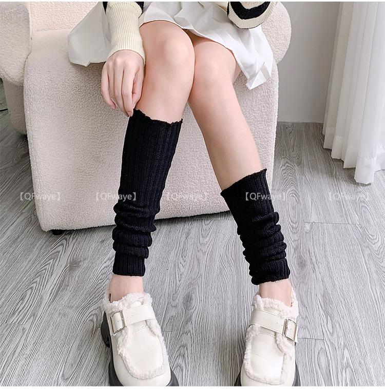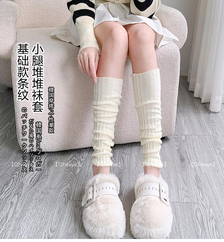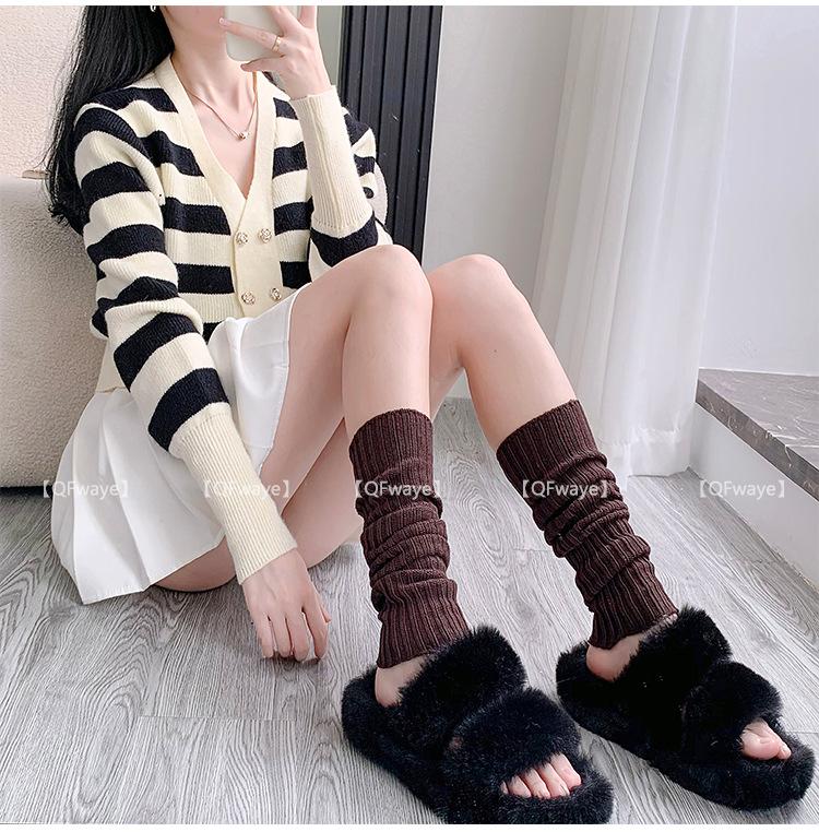 Calcetines de felpa nuevos de otoño e invierno de algodón a rayas verticales blanco negro estilo coreano apilados adelgazantes hasta la pantorrilla calcetines hasta la rodilla cubierta para piernas para mujer