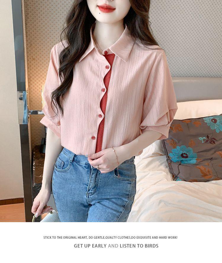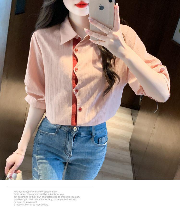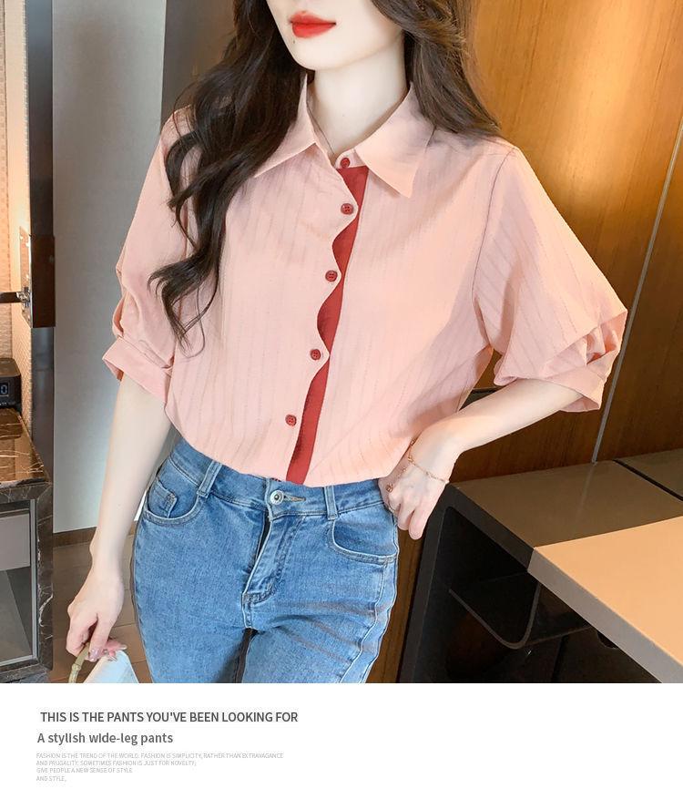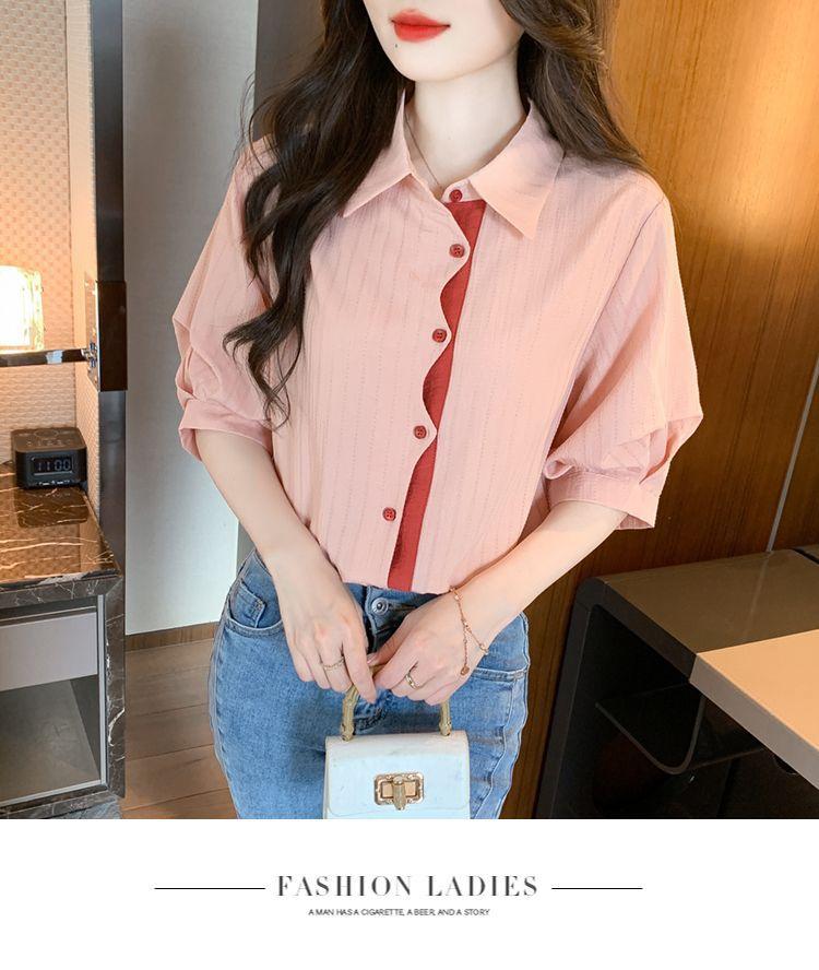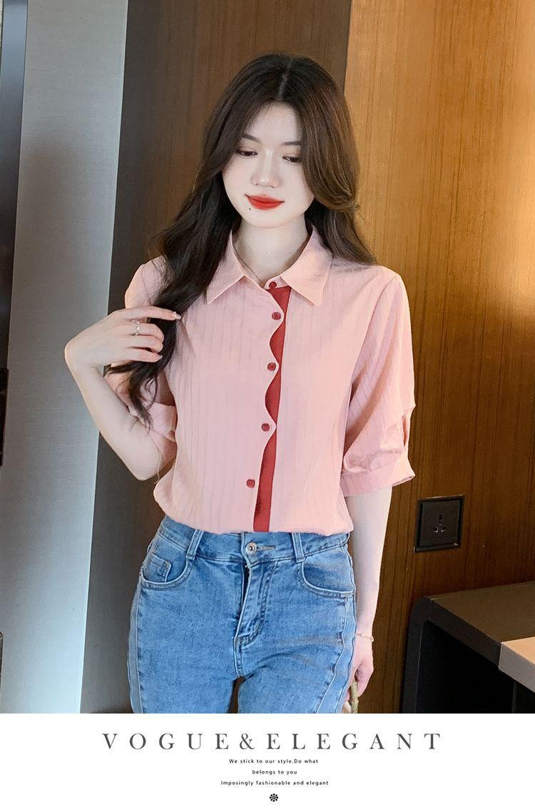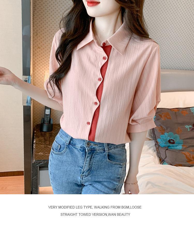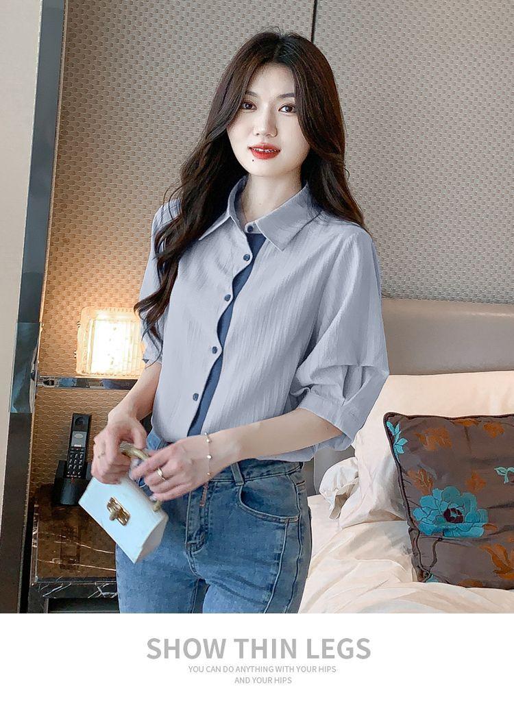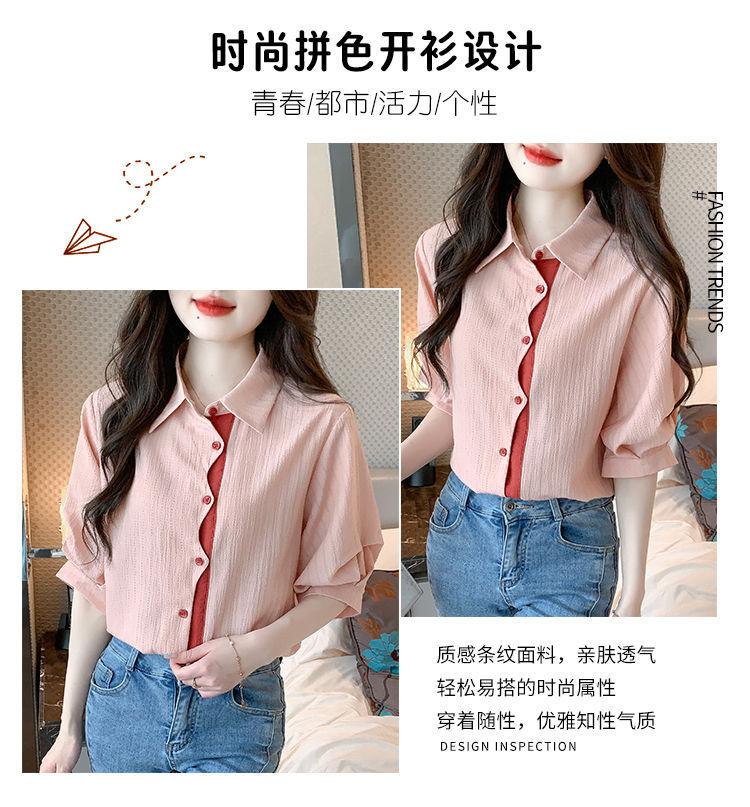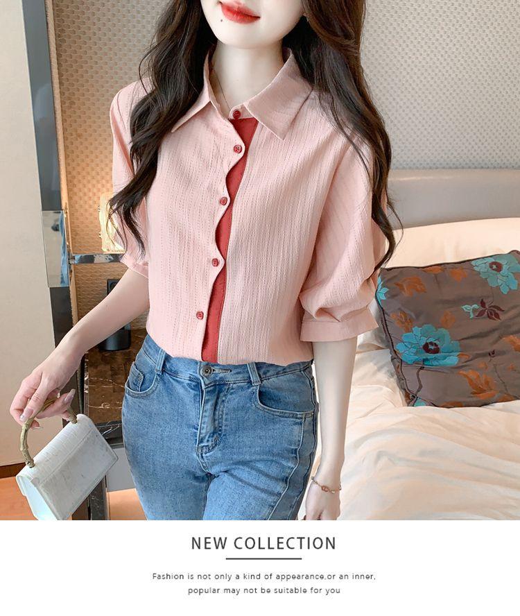Camisa de mujer estilo Hong Kong de verano 2024, camisa de color a juego, blusa holgada de manga media para mujer, estilo occidental, moda de nicho