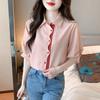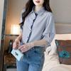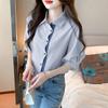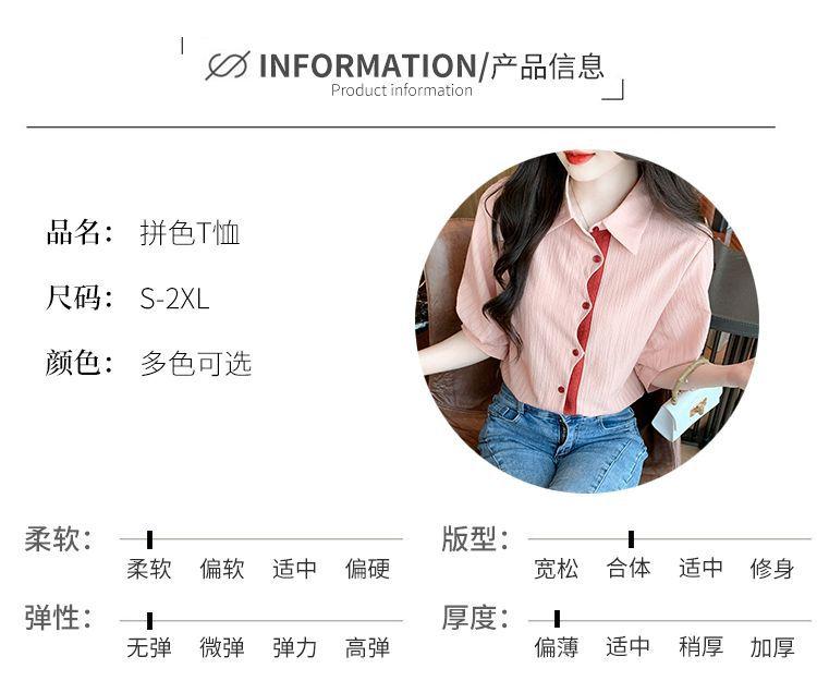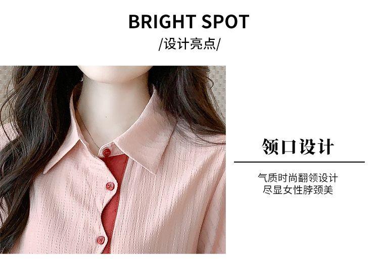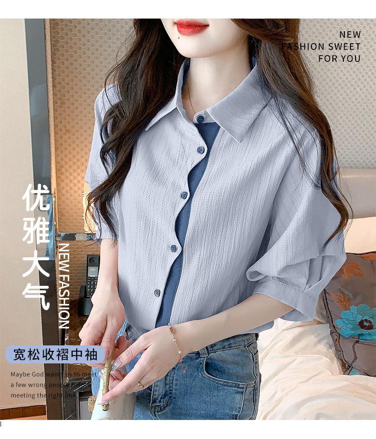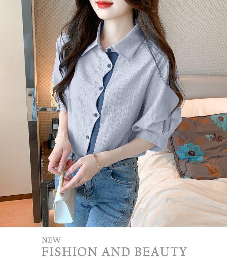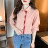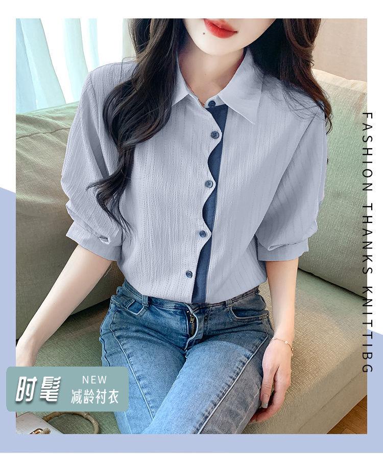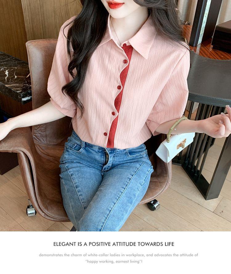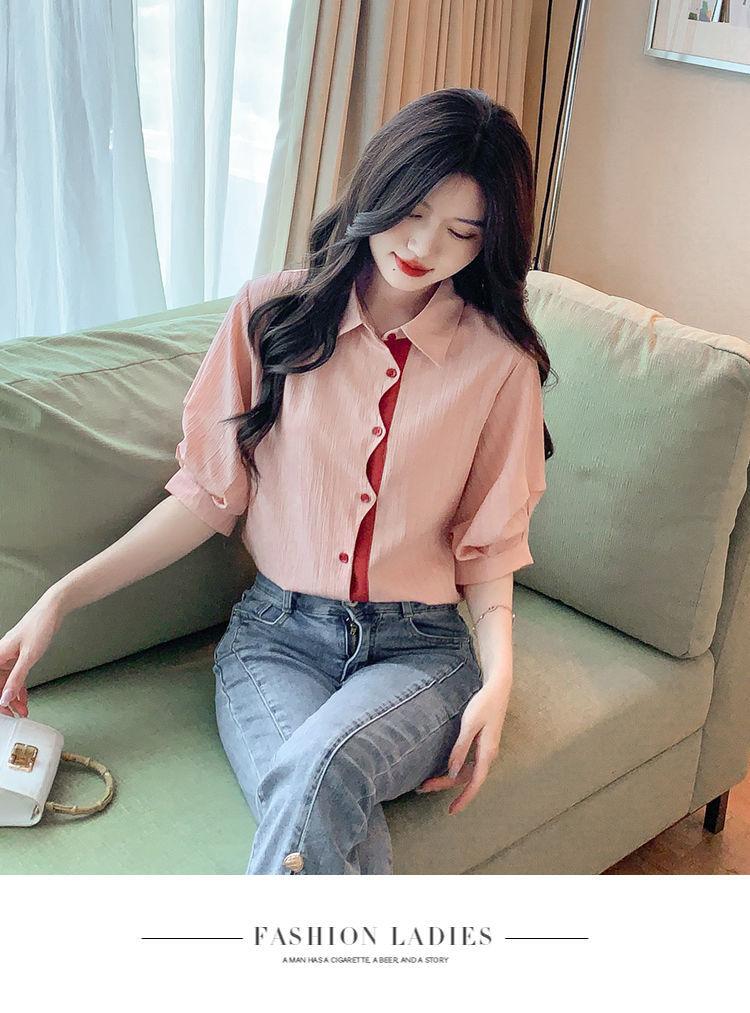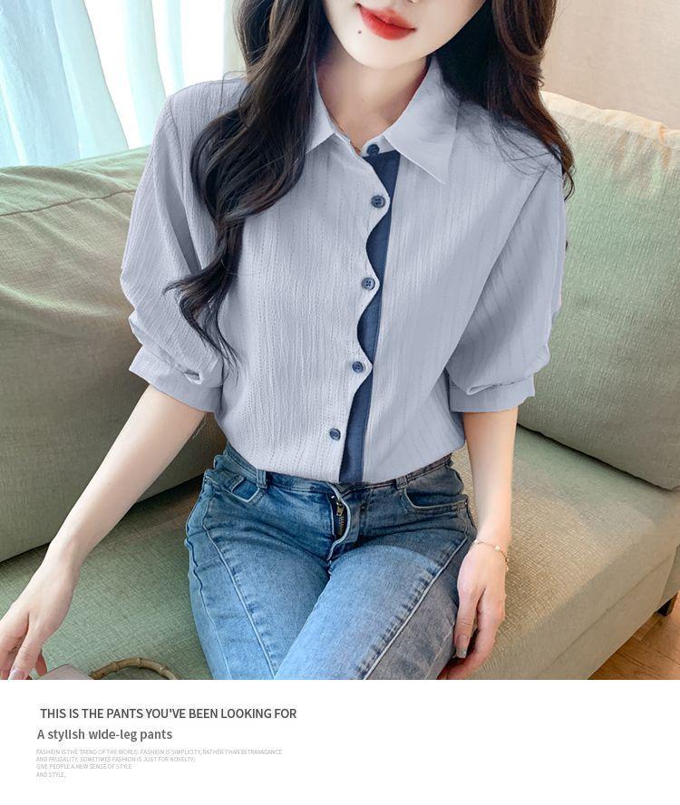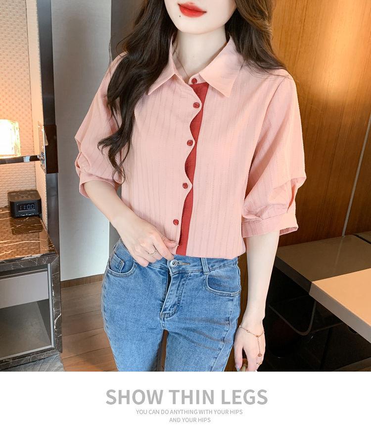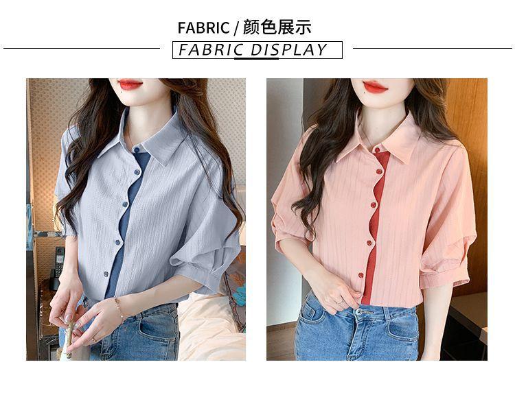 Camisa de mujer estilo Hong Kong de verano 2024, camisa de color a juego, blusa holgada de manga media para mujer, estilo occidental, moda de nicho