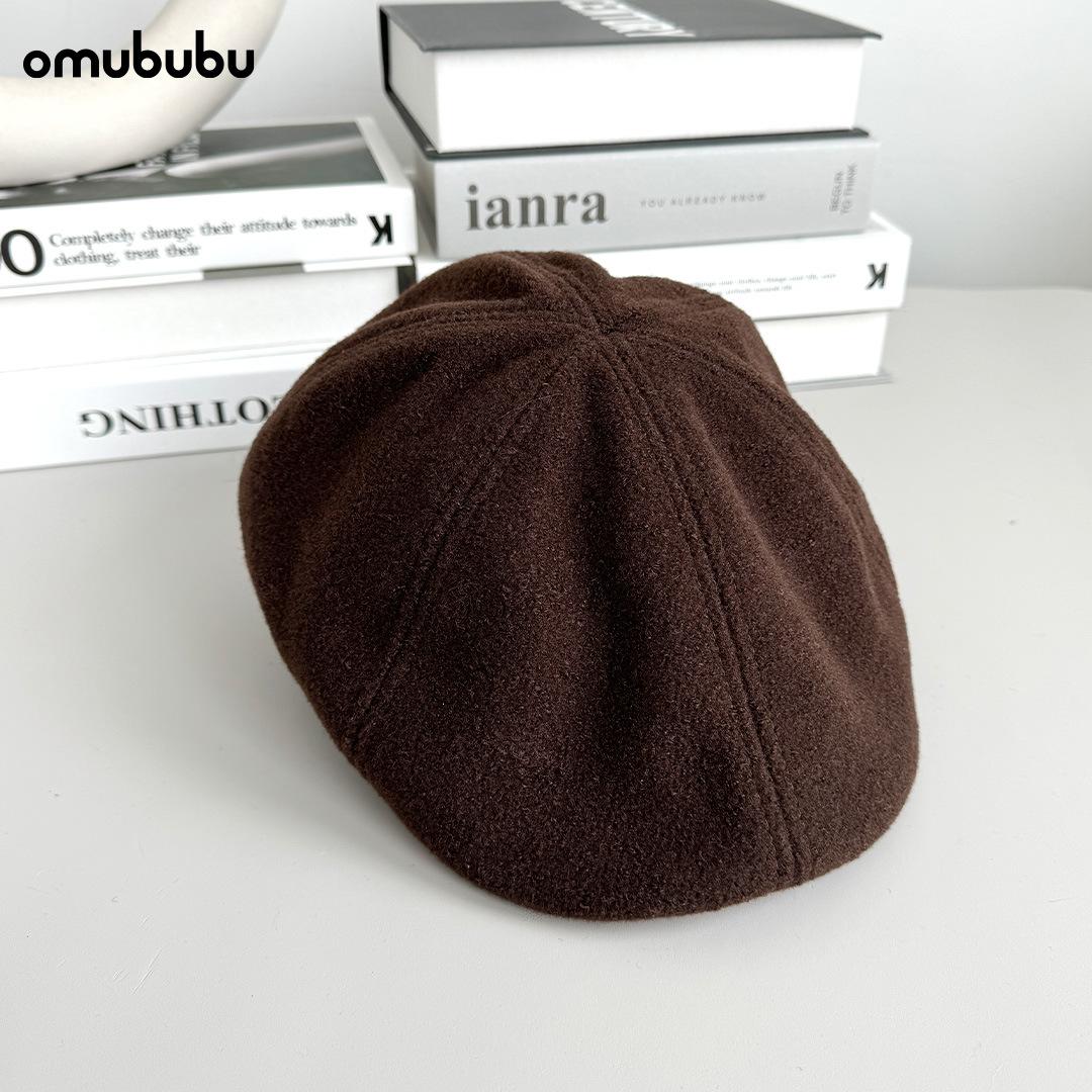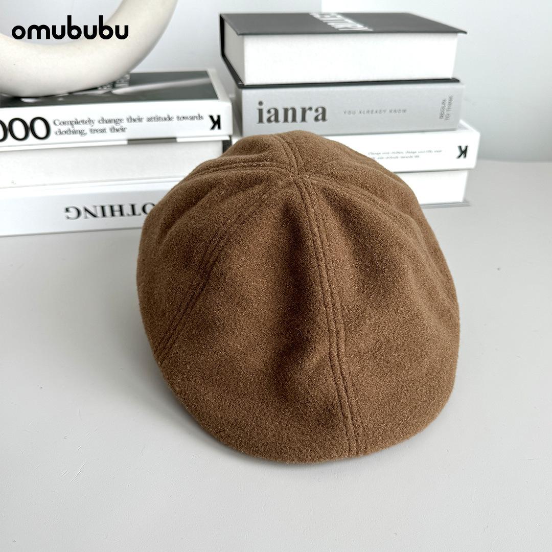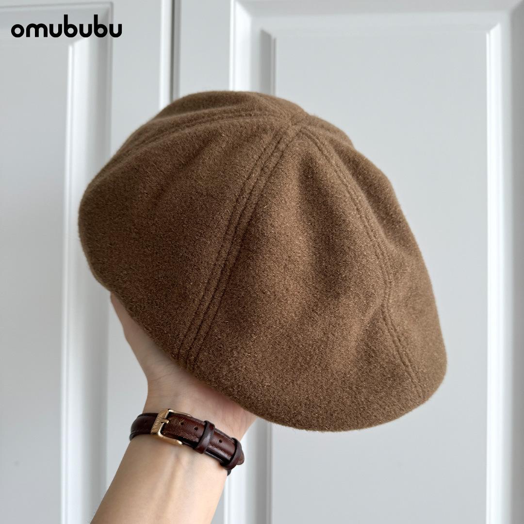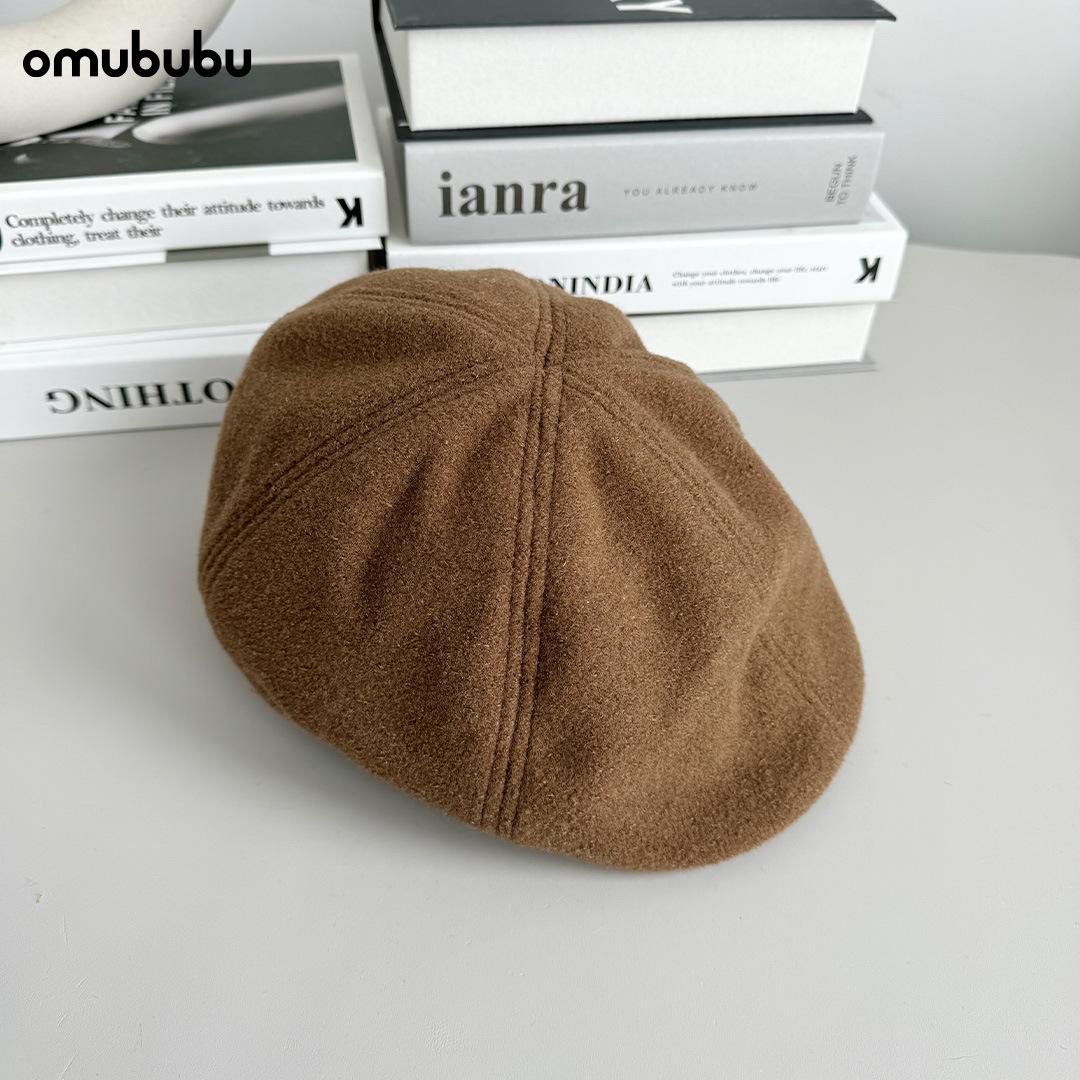 Boina de lana cálida de otoño e invierno para mujer, gorra retro británica, gorra tridimensional, gorra de pintor, gorra octogonal pequeña