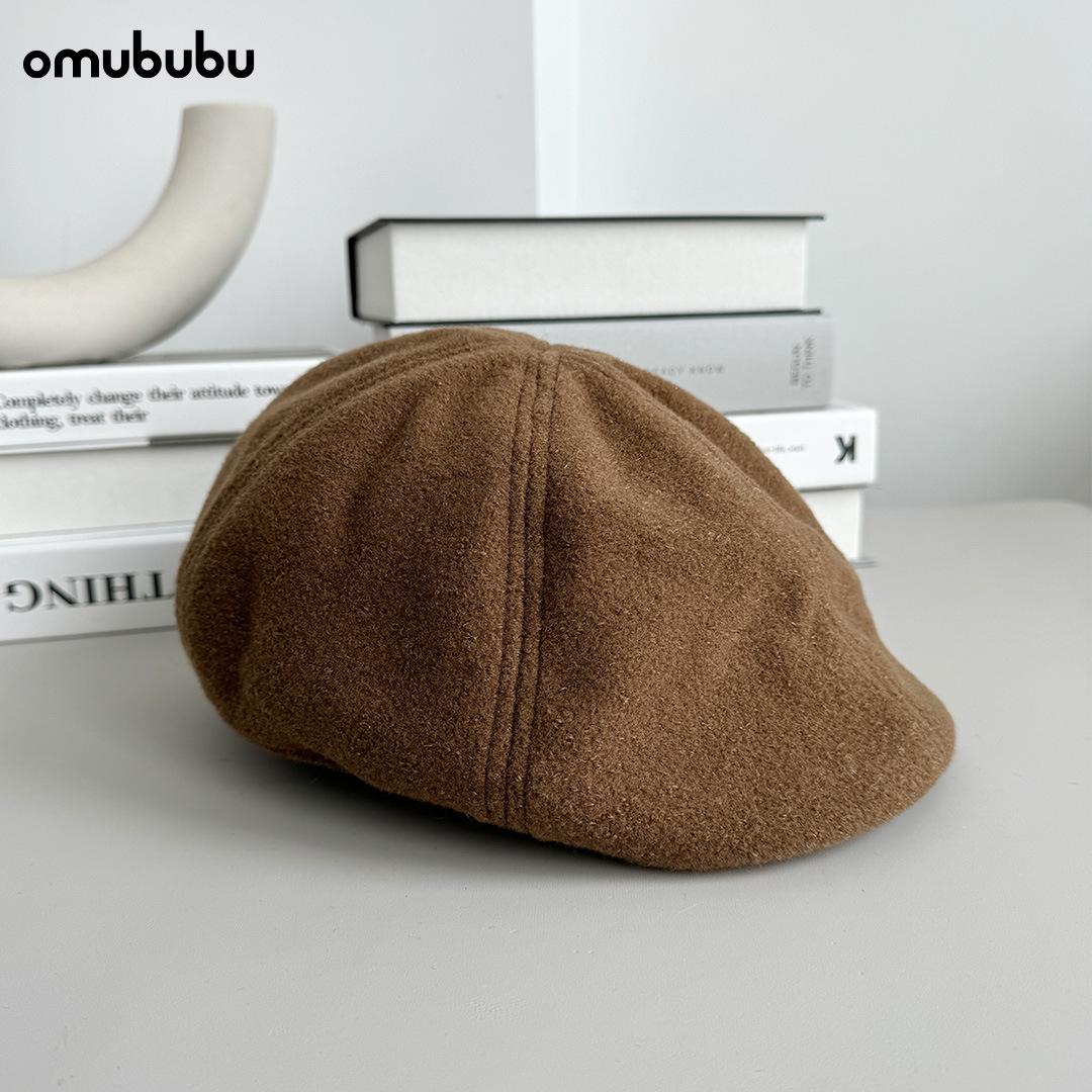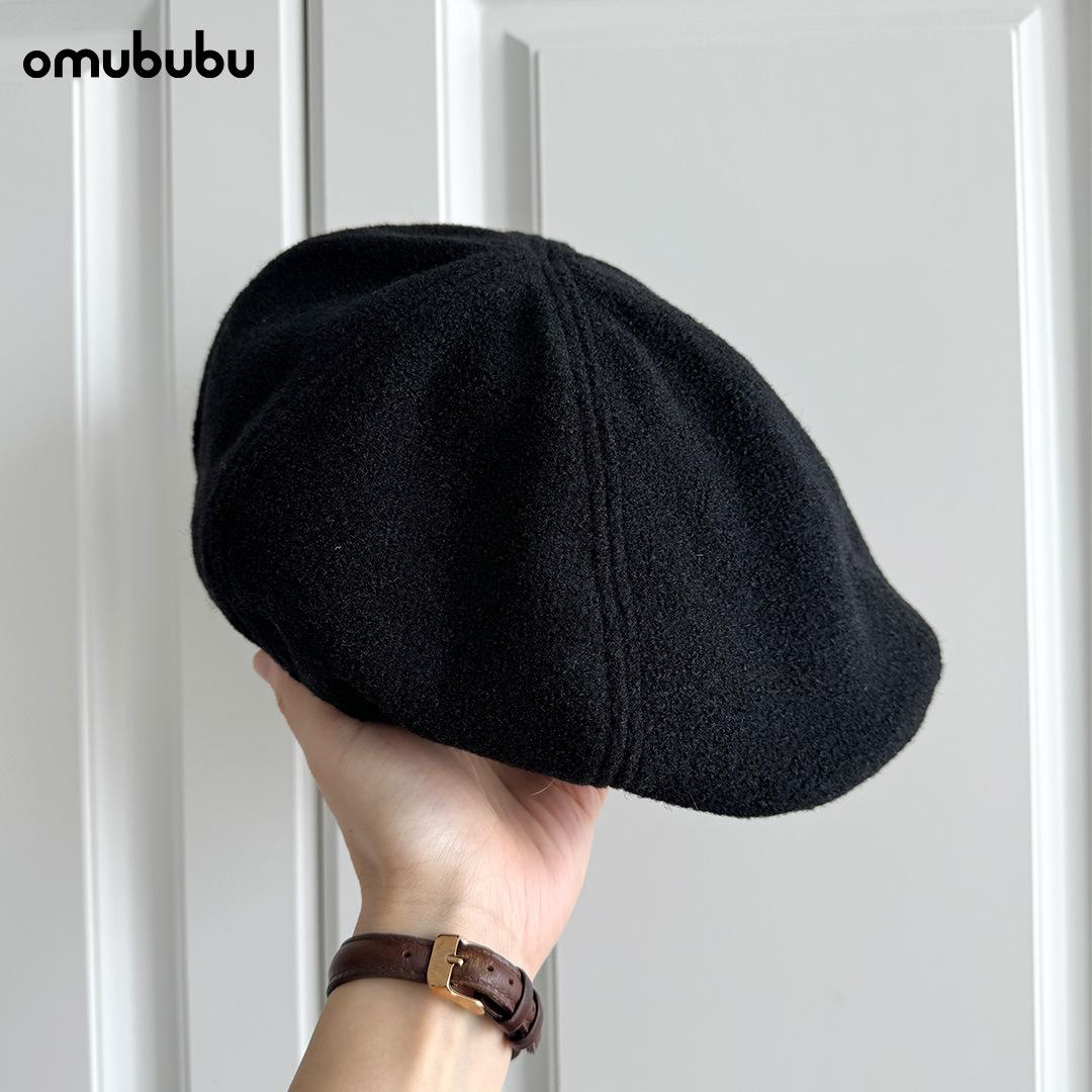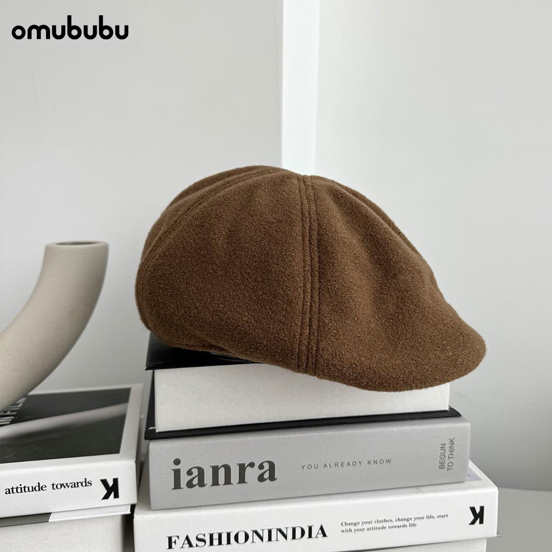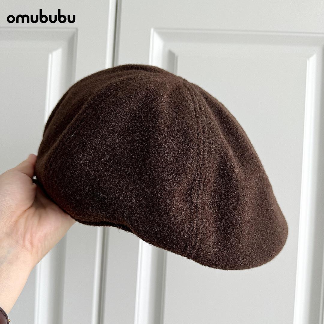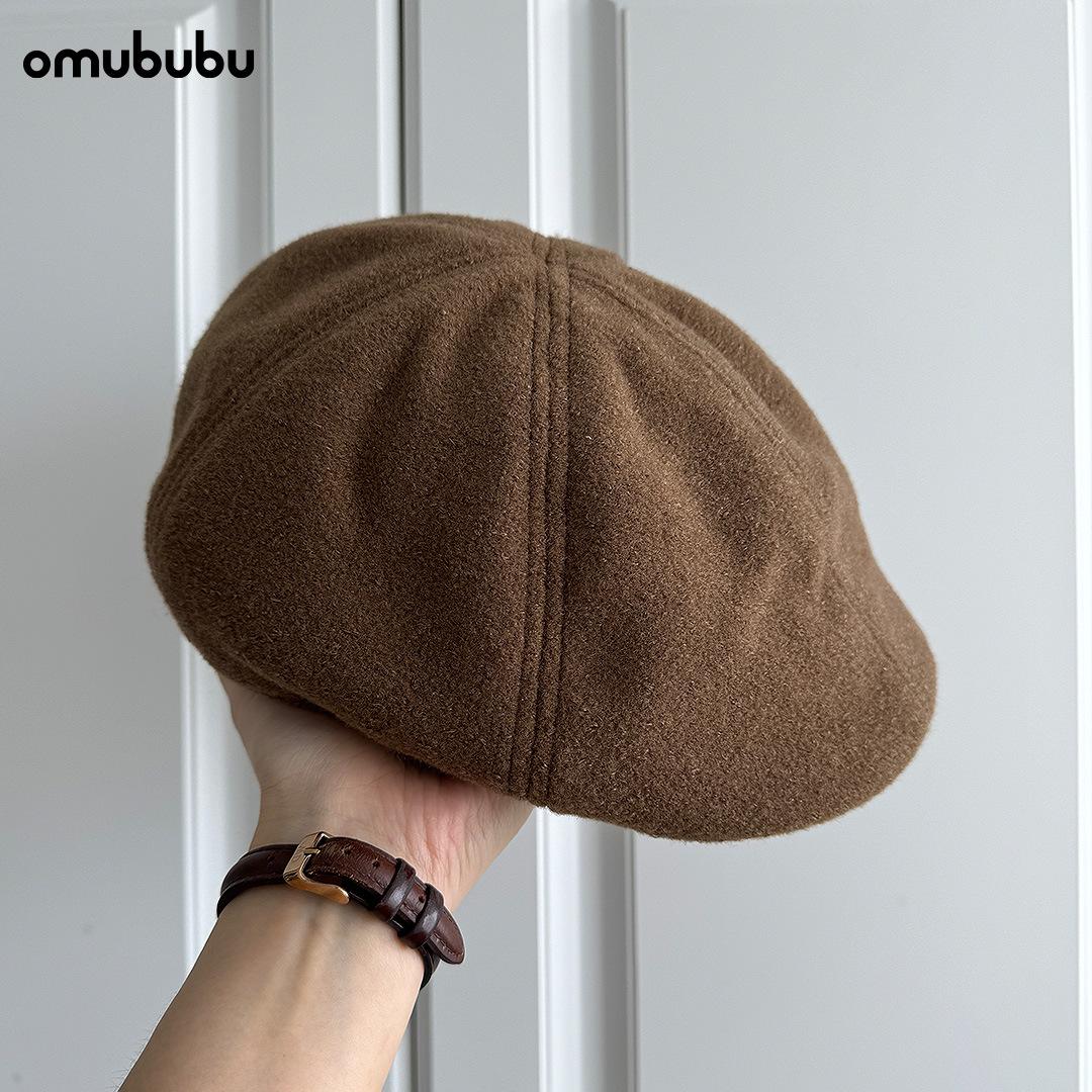 Boina de lana cálida de otoño e invierno para mujer, gorra retro británica, gorra tridimensional, gorra de pintor, gorra octogonal pequeña