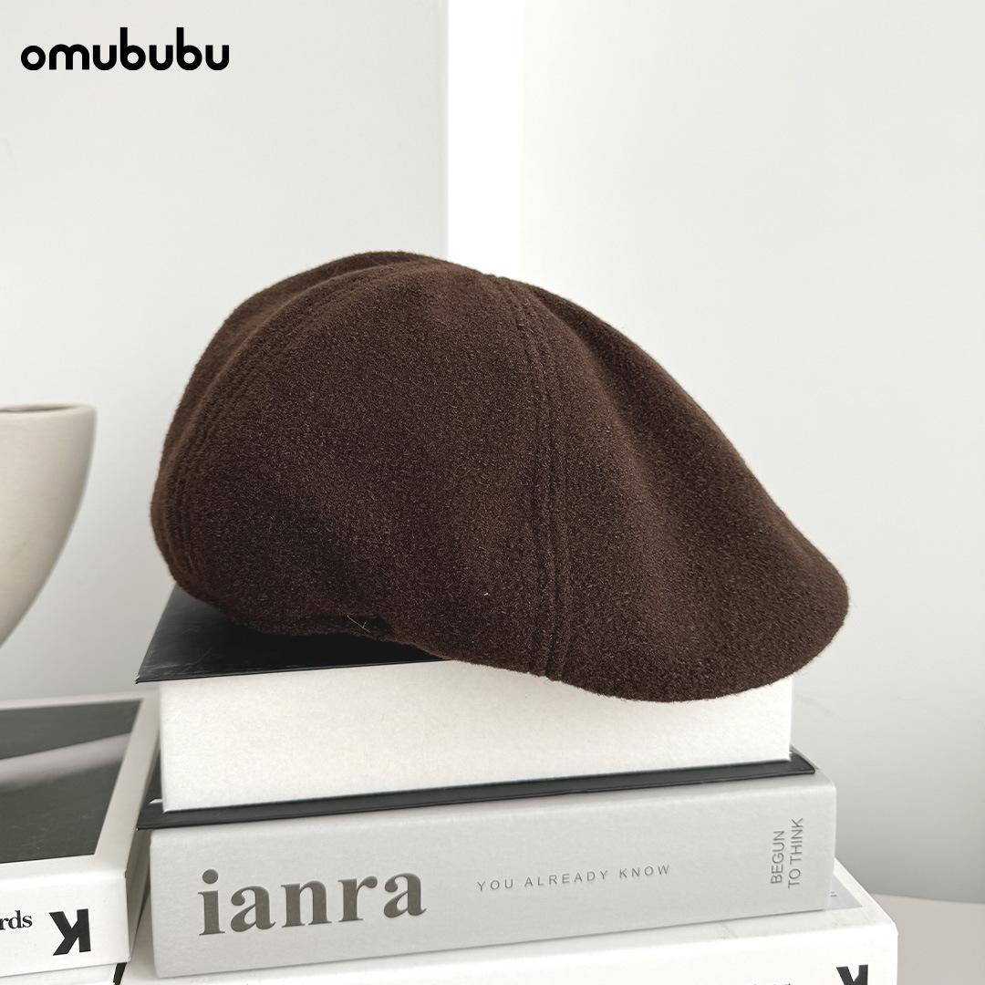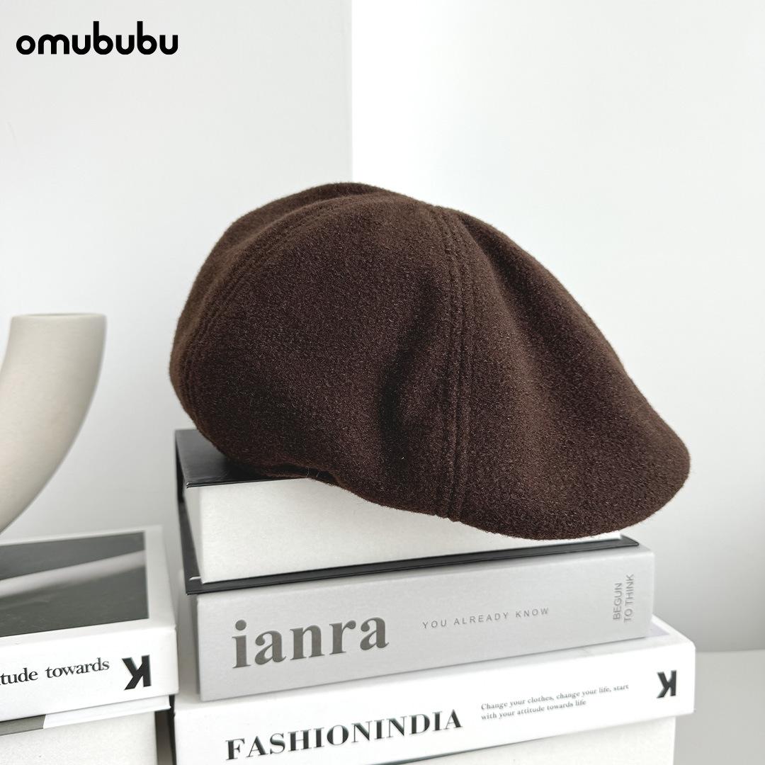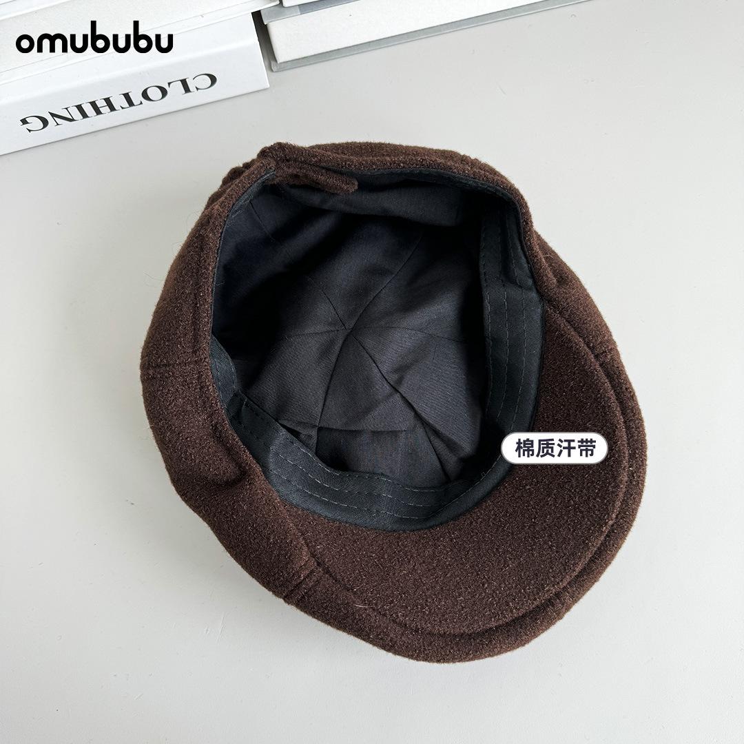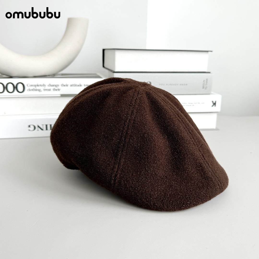 Boina de lana cálida de otoño e invierno para mujer, gorra retro británica, gorra tridimensional, gorra de pintor, gorra octogonal pequeña